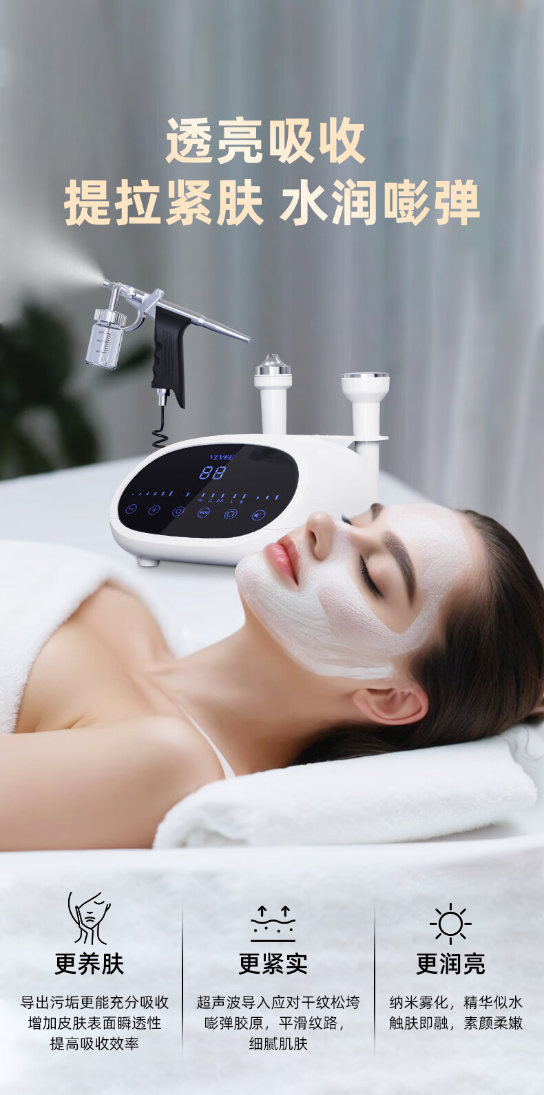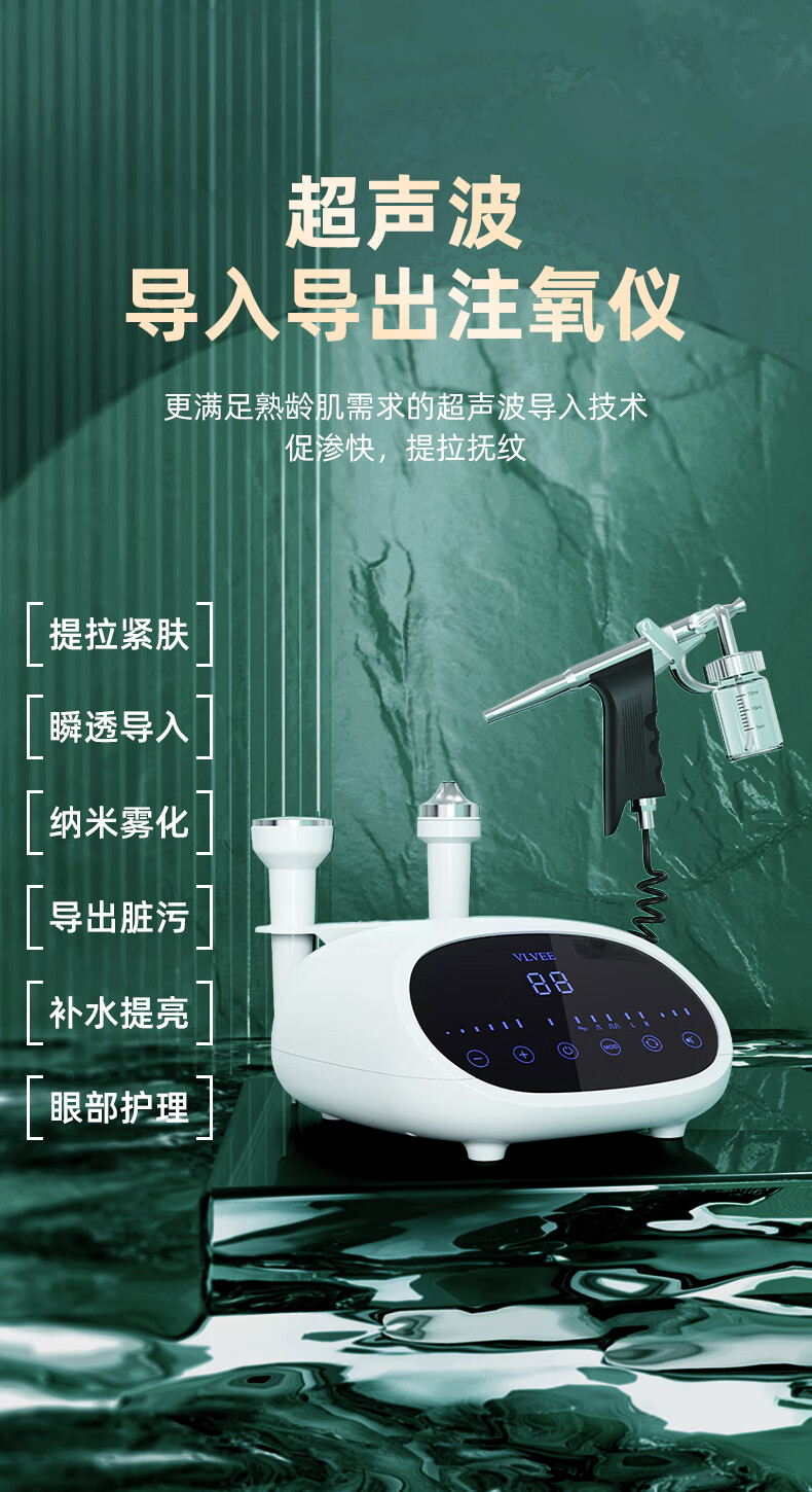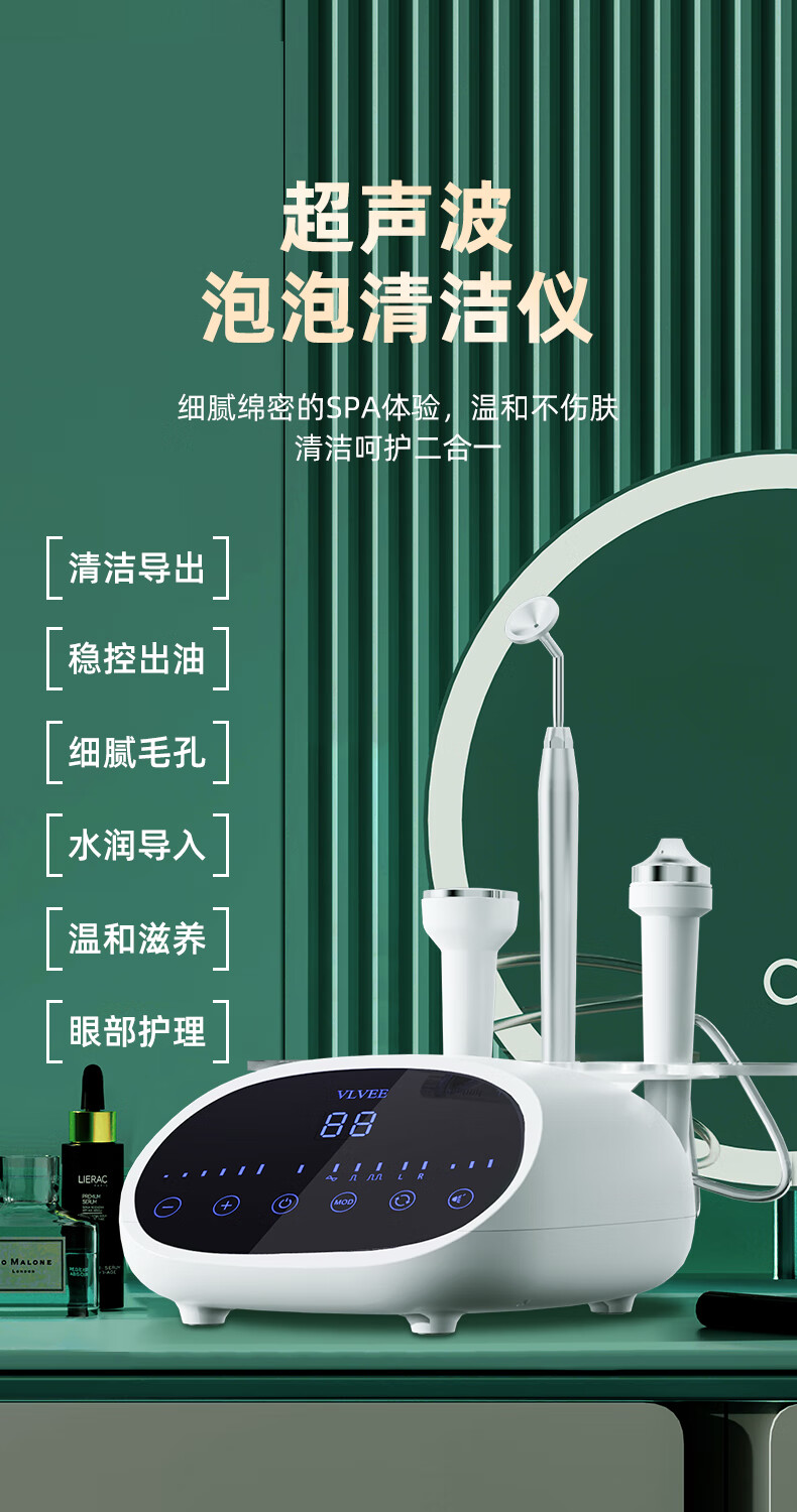 VLVEE超声波美容仪导出导入仪美容院专用仪器面部提拉紧致脸部按摩注氧补水仪毛孔清洁家用 【优雅白/美容院豪华款】收纳支架+清肌胶囊