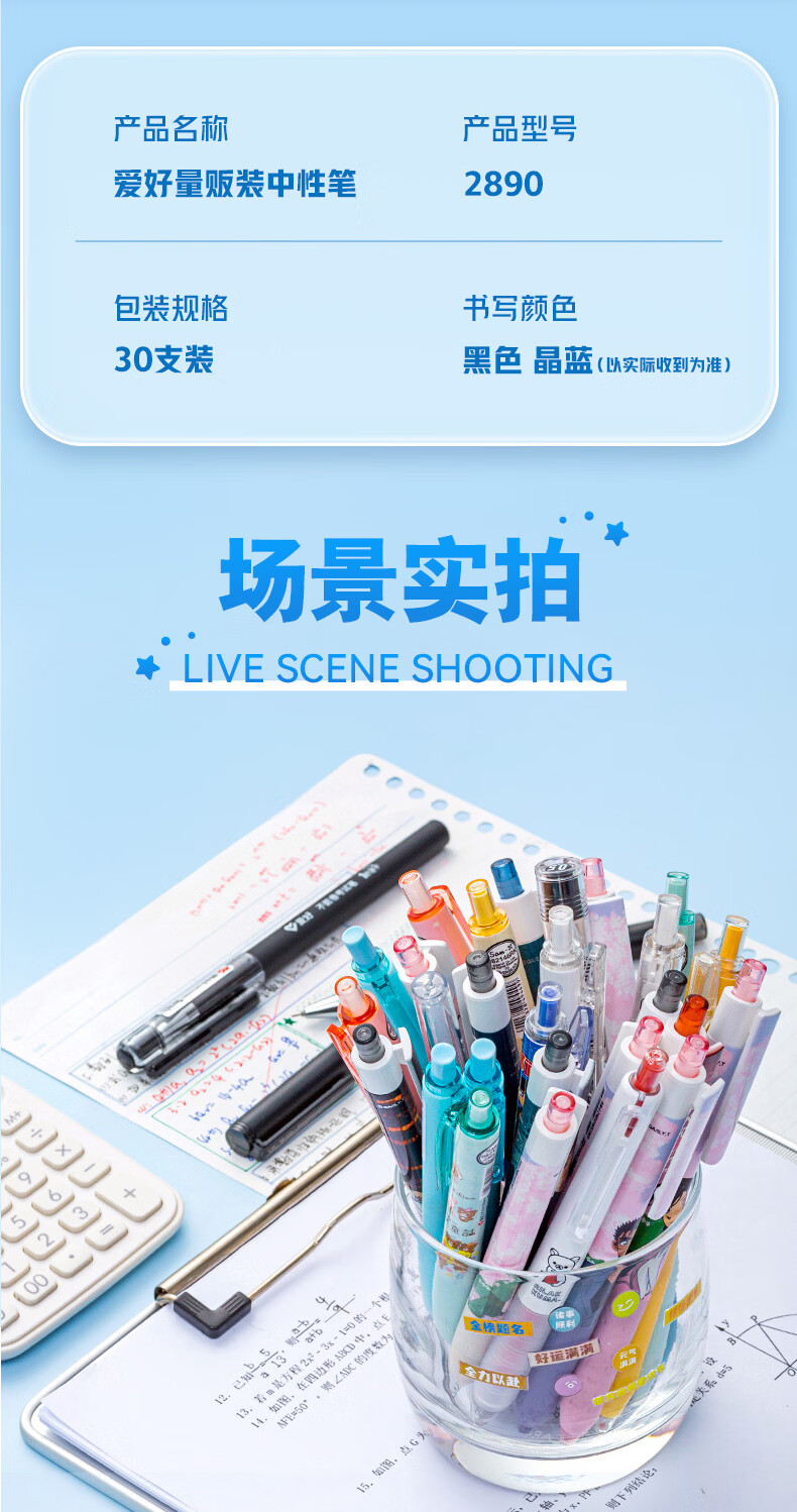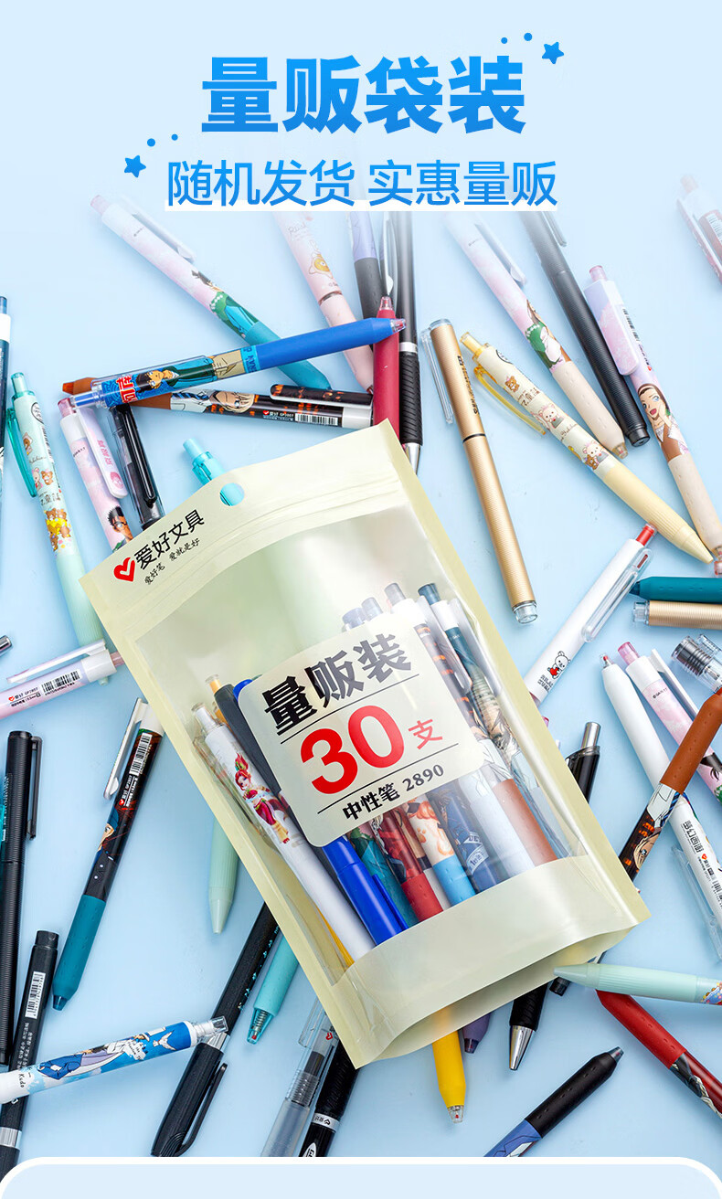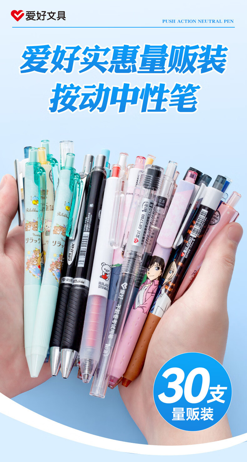 爱好(AIHAO)中性笔0.5mm子弹头碳素黑笔办公用签字笔0.35学生高颜值考试刷题笔水性直液式签字笔 【新配比】随机30支