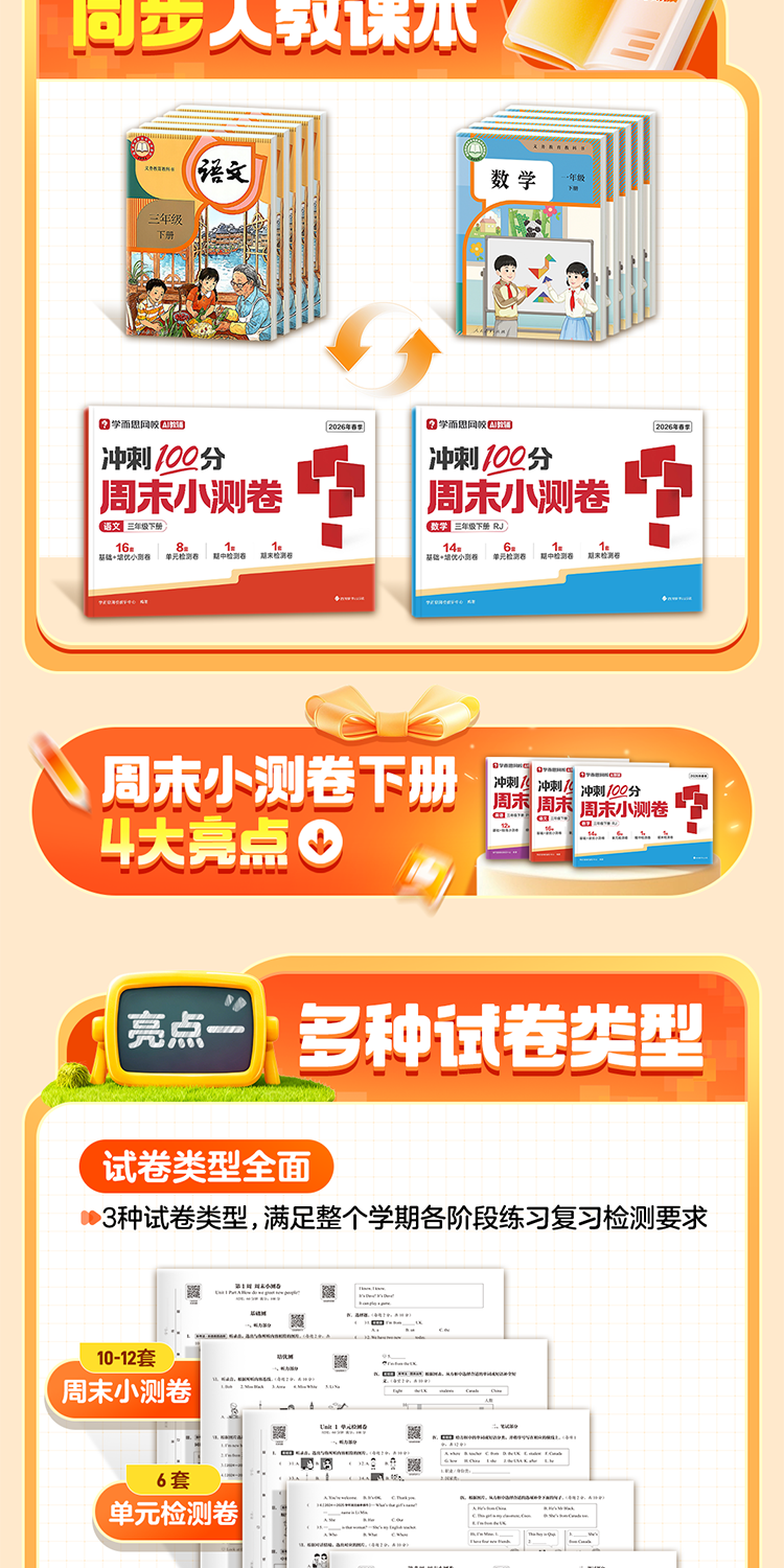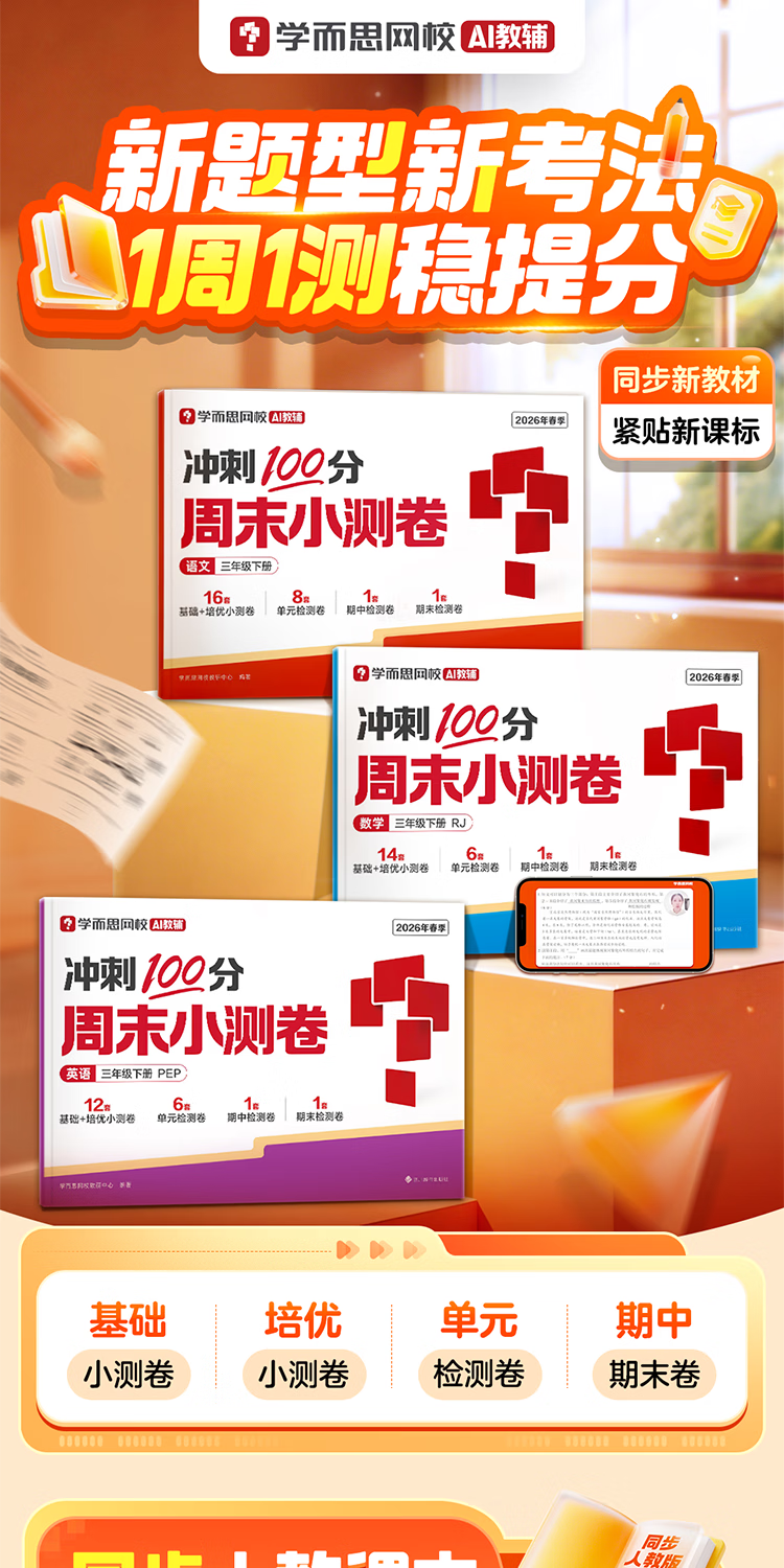 学而思【2026新版】周末小测卷冲刺100分下册 小学1-6年级 数学语文英语 一周一测跟进度 周末冲刺 同步课本 同步训练 知识复习-WX 二年级下 数学RJ(单本)