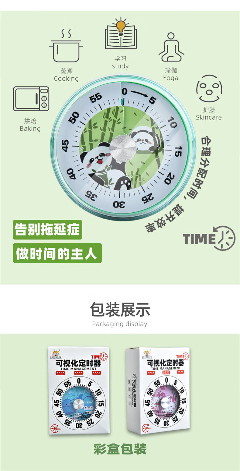 猫太子计时器机械可视化学习专用儿童自律时间管理器倒计时提醒器考试定时器闹钟学生起床神器磁吸款 计时器