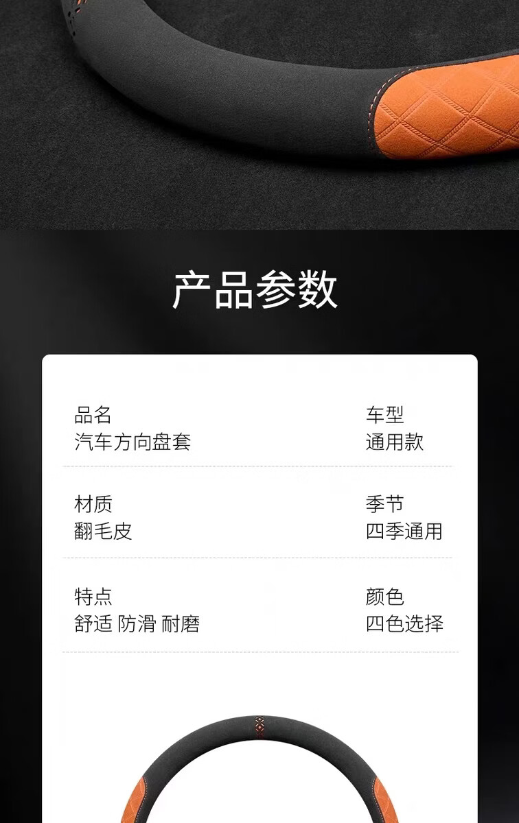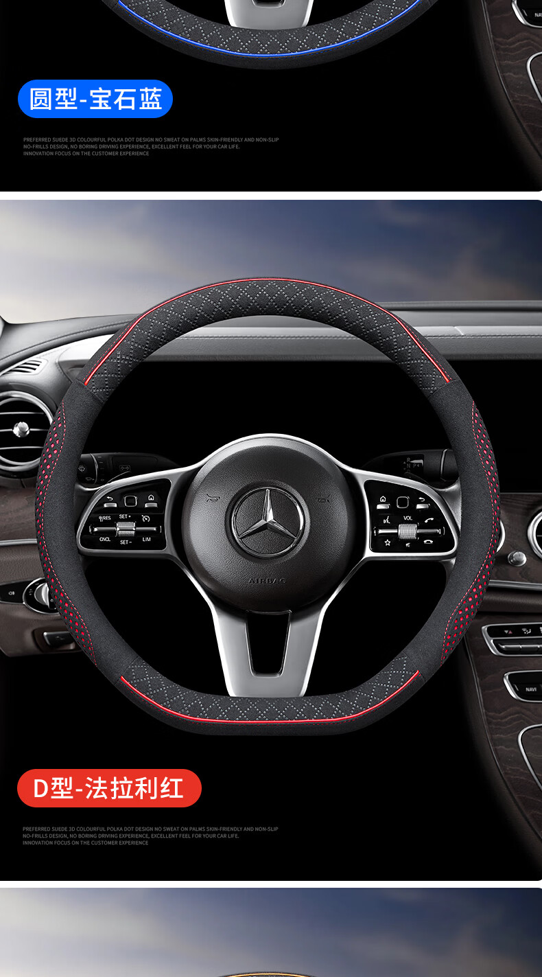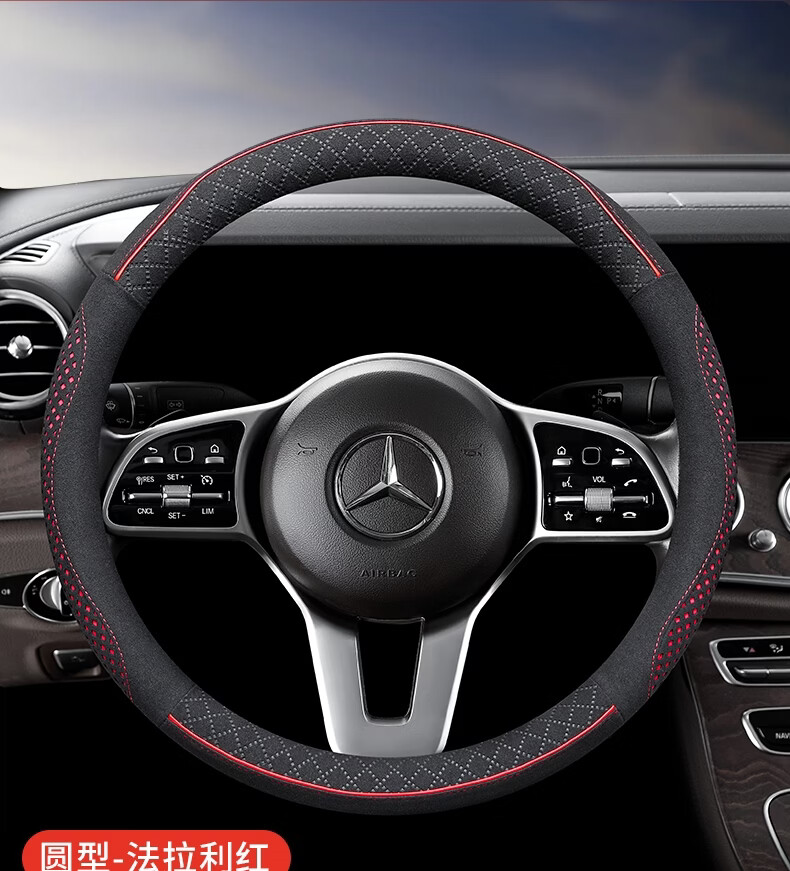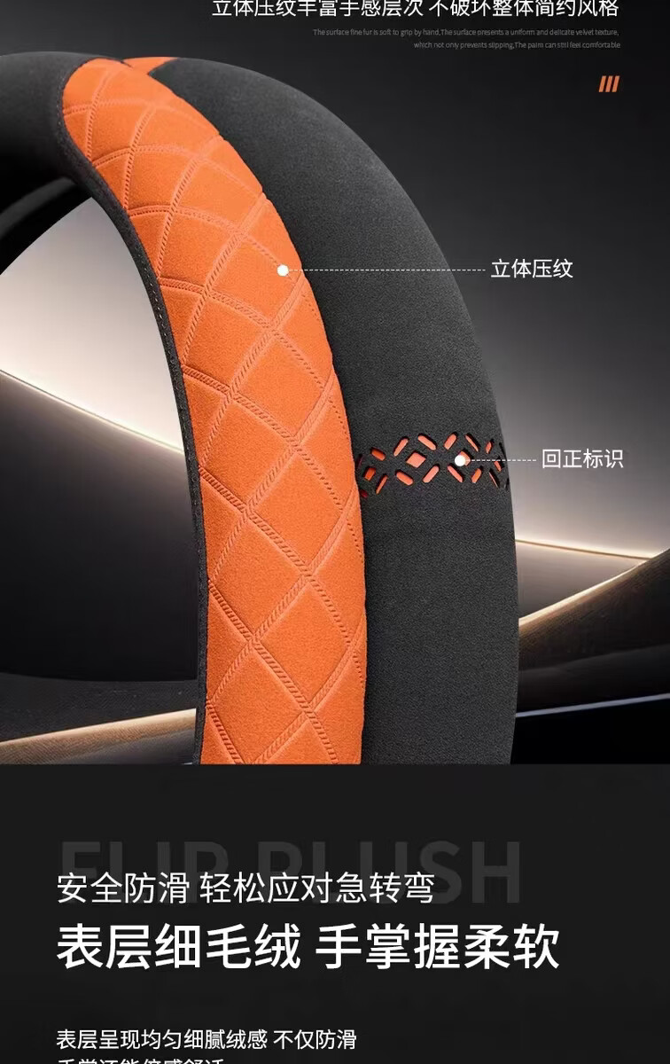 超薄翻毛皮方向盘套四季通用汽车用品改装配件汽车把套四季型冬季 【运动款】法拉红-圆形