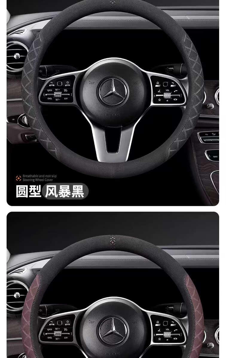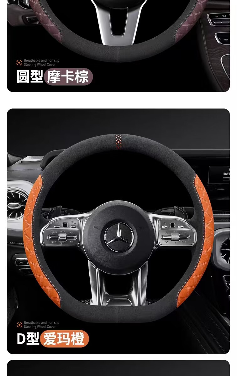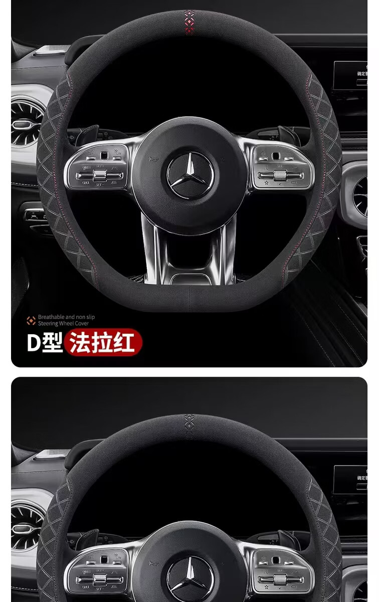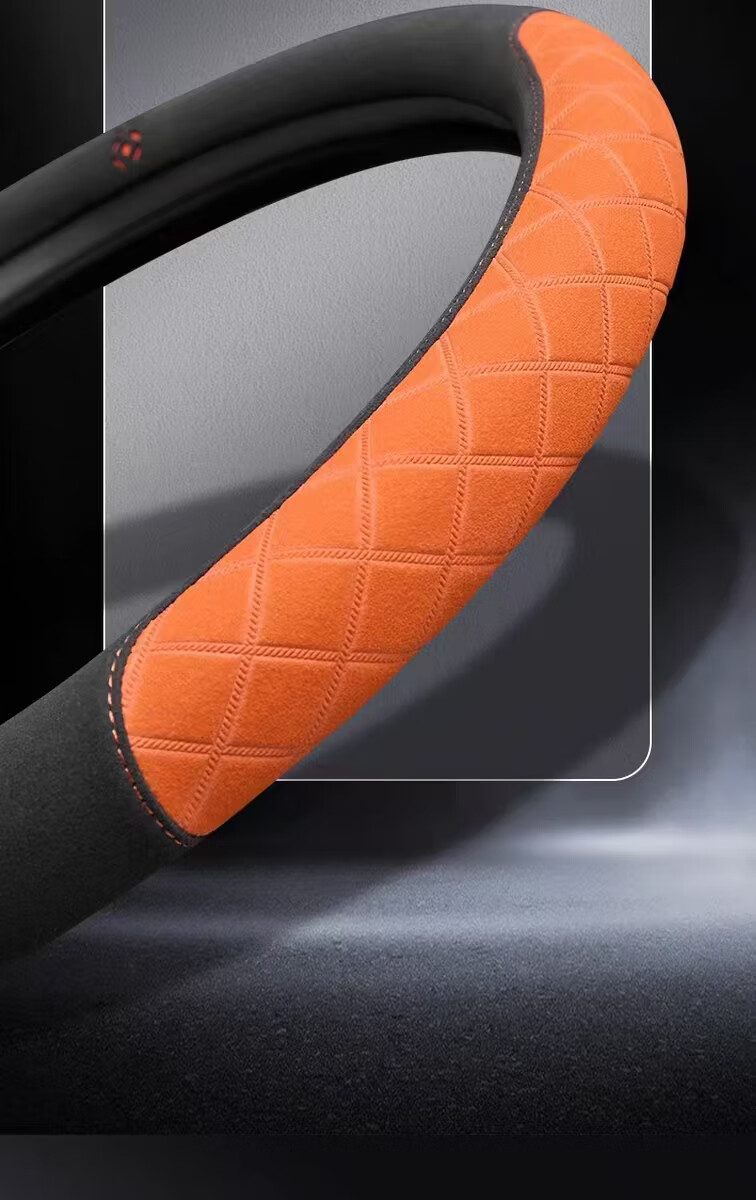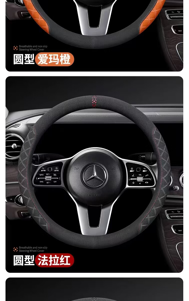 超薄翻毛皮方向盘套四季通用汽车用品改装配件汽车把套四季型冬季 【运动款】法拉红-圆形