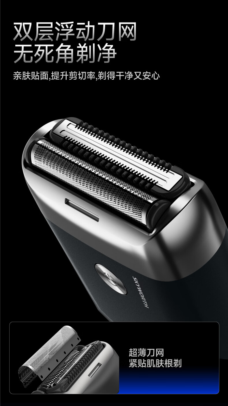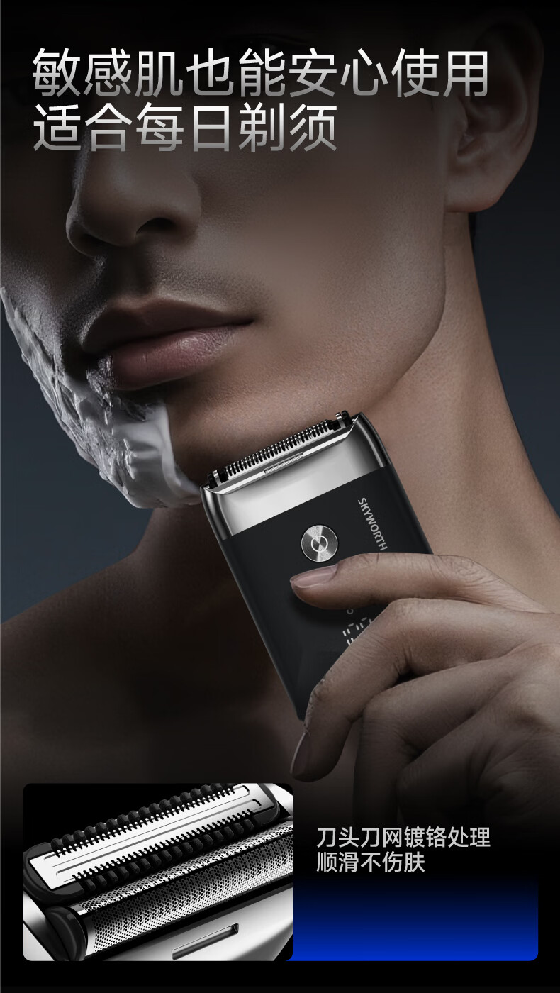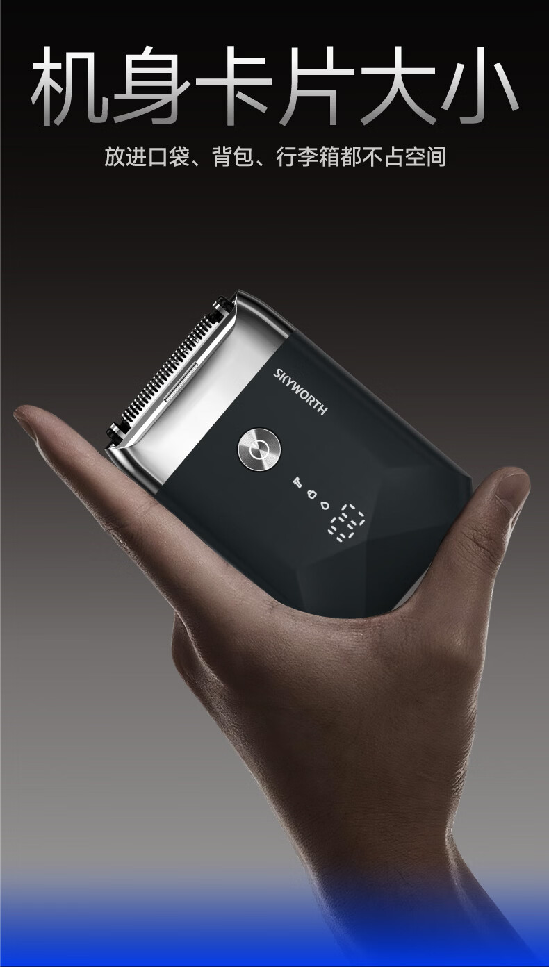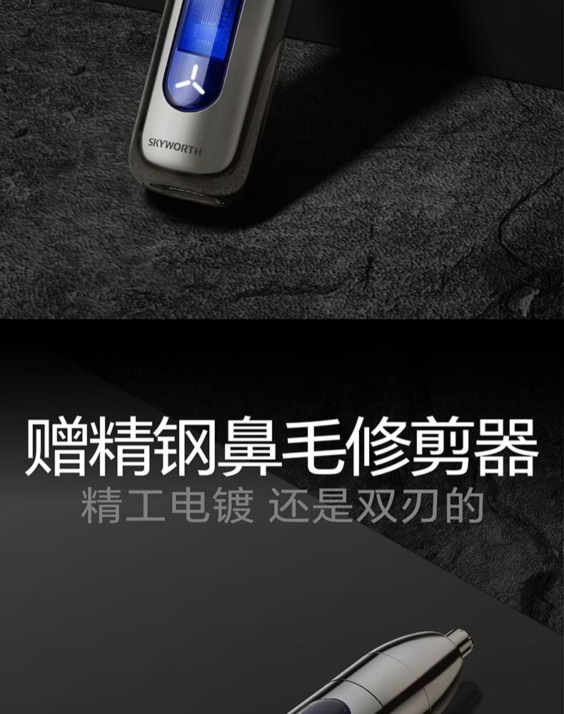 创维元石mini剃须刀黑卡往复式电动剃须刀旋转式刮胡刀干湿两剃男士剃胡须刀生日情人节礼物送男友父亲 镜湖蓝【爆款便携】元石nimi双头