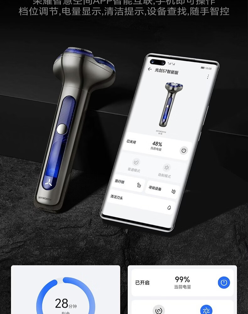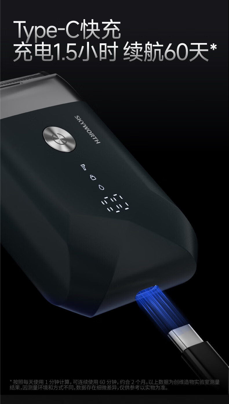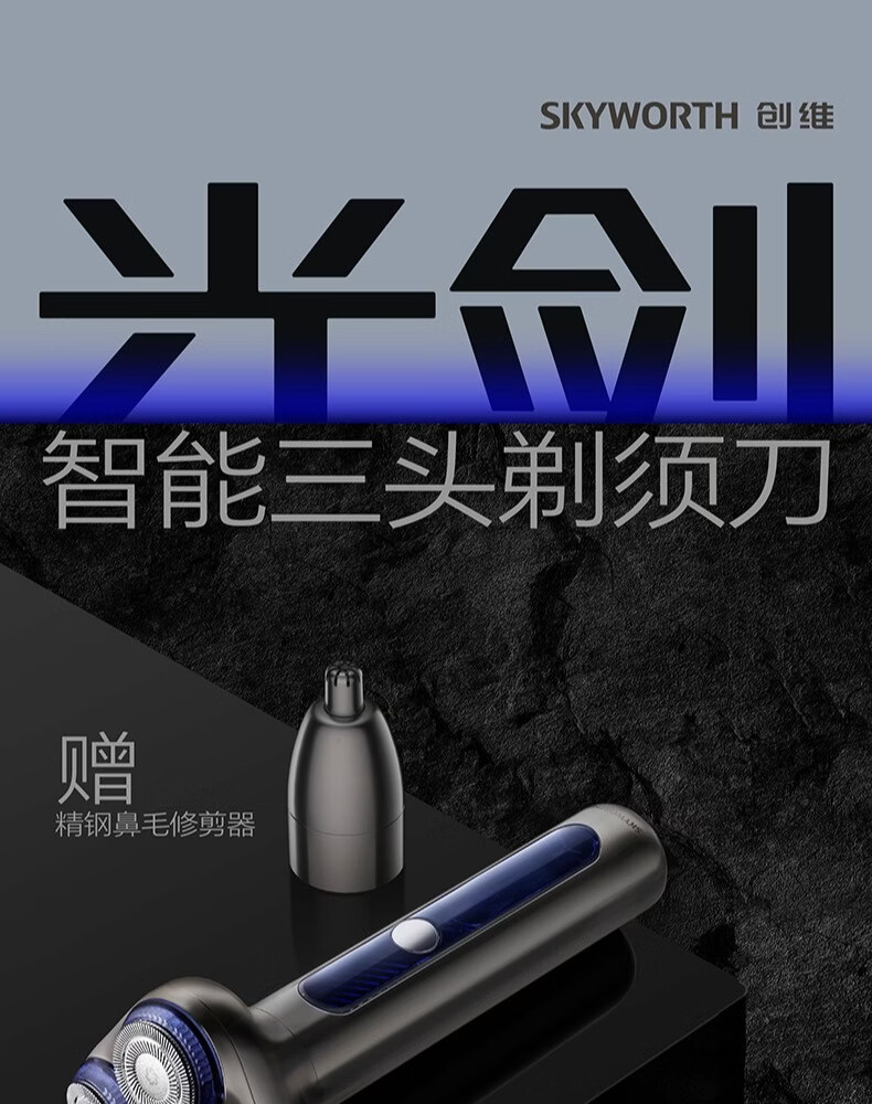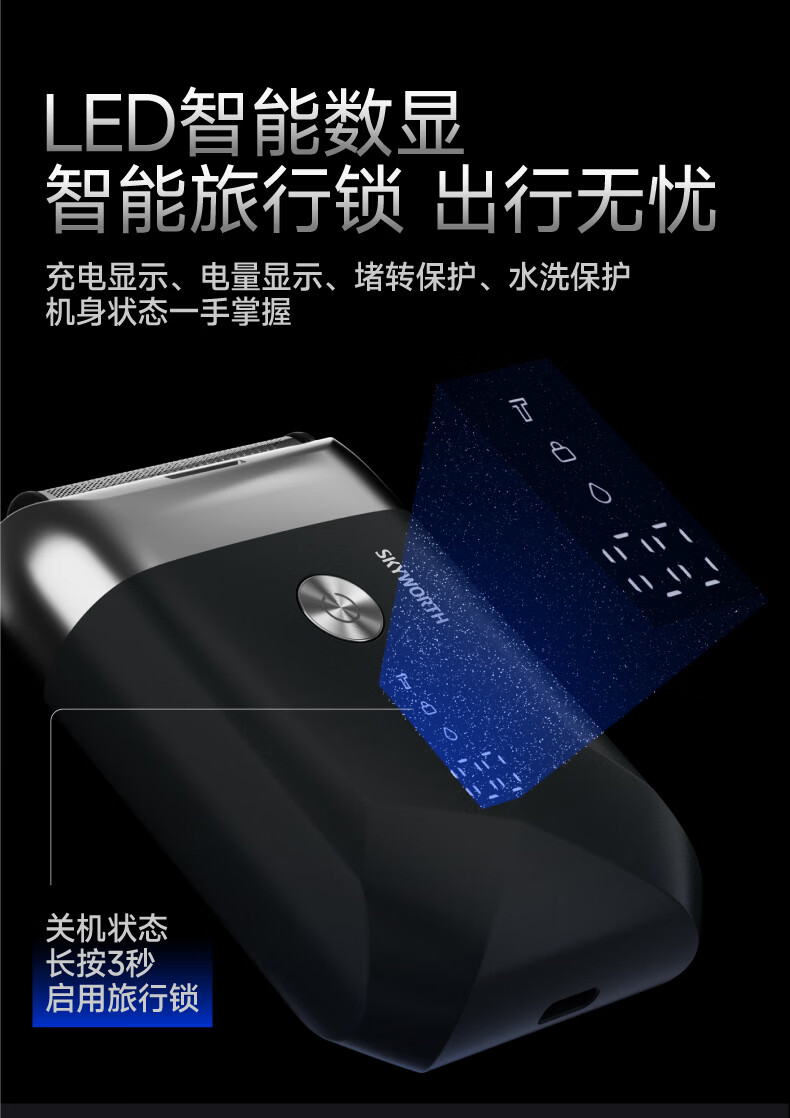 创维元石mini剃须刀黑卡往复式电动剃须刀旋转式刮胡刀干湿两剃男士剃胡须刀生日情人节礼物送男友父亲 镜湖蓝【爆款便携】元石nimi双头