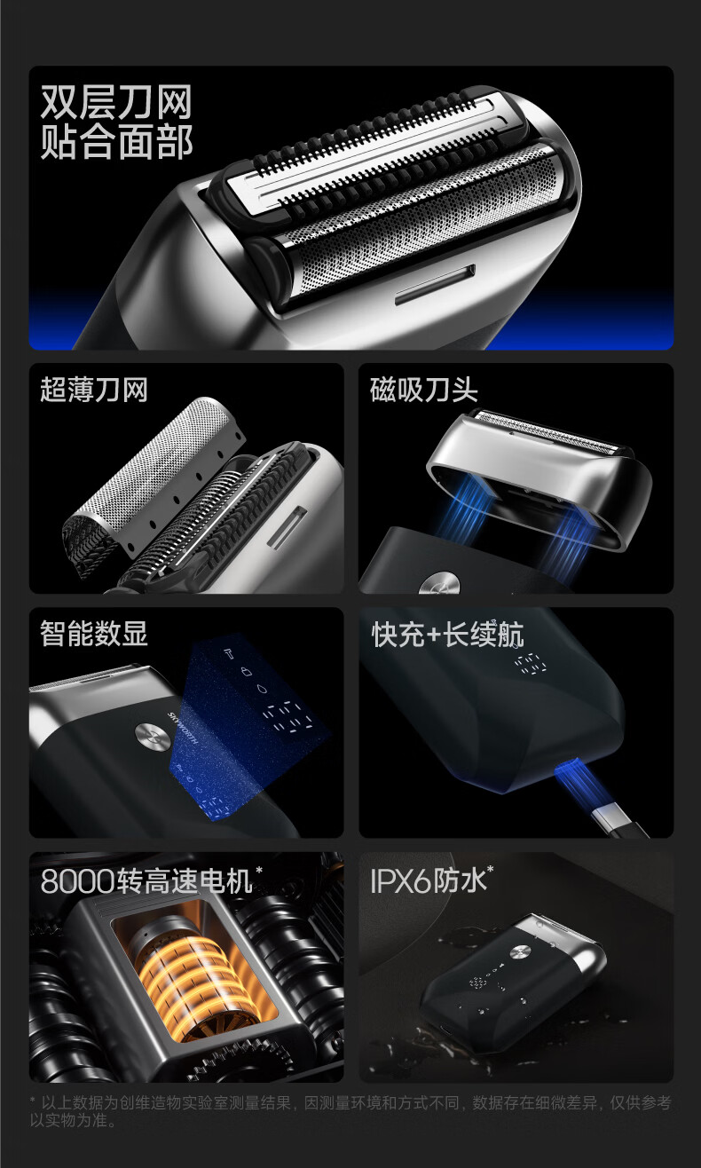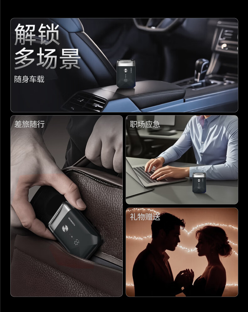 飒望【德国】2026新款小钢炮剃须刀数显电动防水男士刮胡刀智能便携剃须刀 深空灰旗舰版