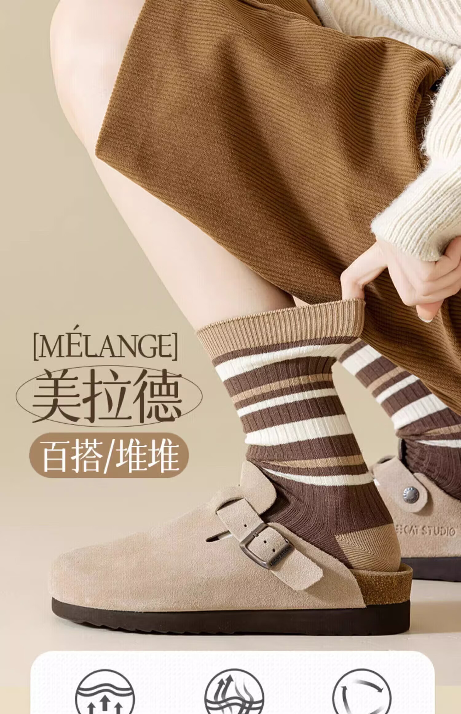 纯色中筒袜