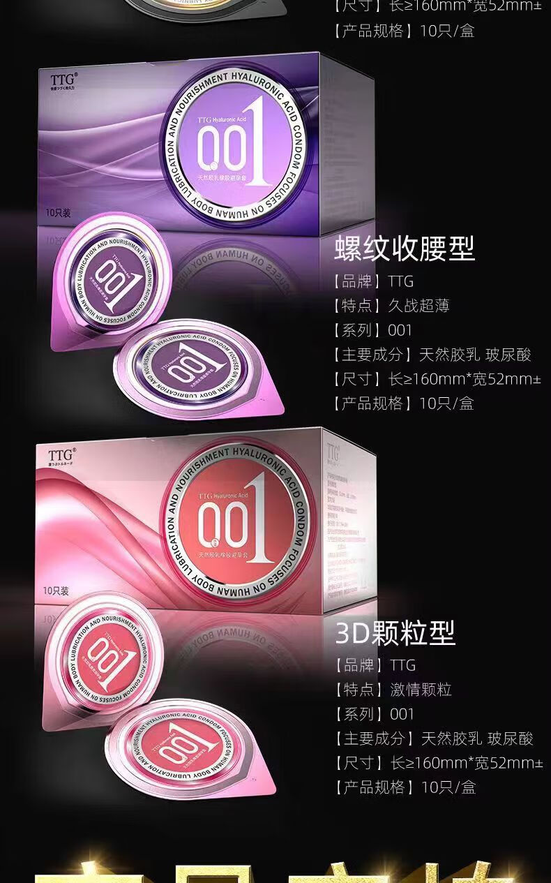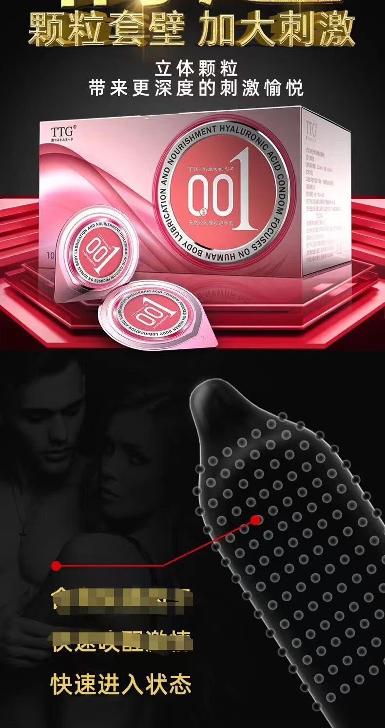 TTG果冻盒玻尿酸001避孕套男用情趣颗粒安全套成人夫妻房事情趣用品 6盒【水润+颗粒+螺纹】共60只
