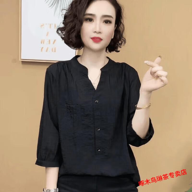 啄木鸟时尚中老年妈妈装夏装衬衫气质棉麻短袖t恤女夏季新款七分袖上衣 姜黄色 XL (建议135-150斤)