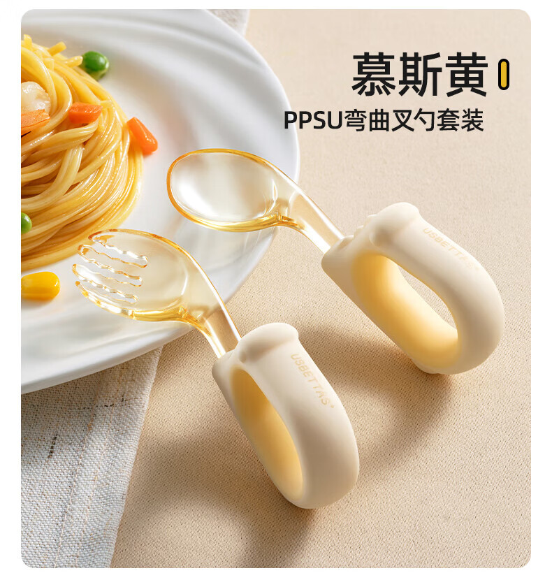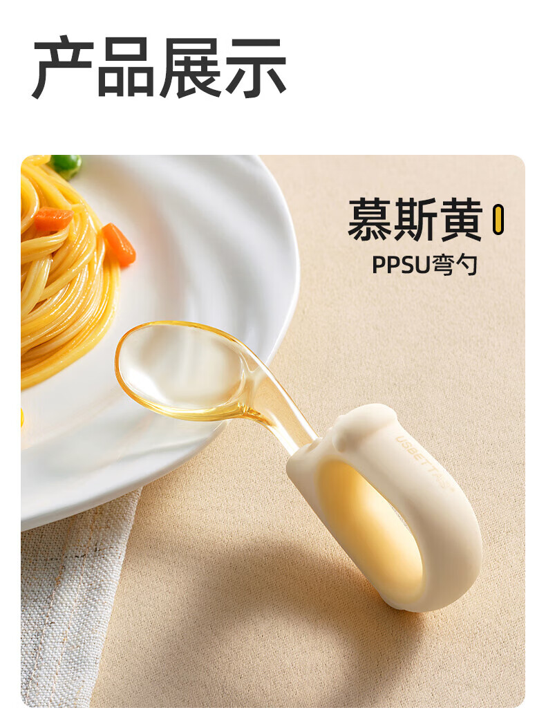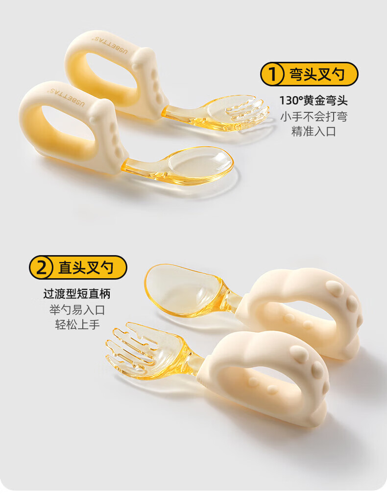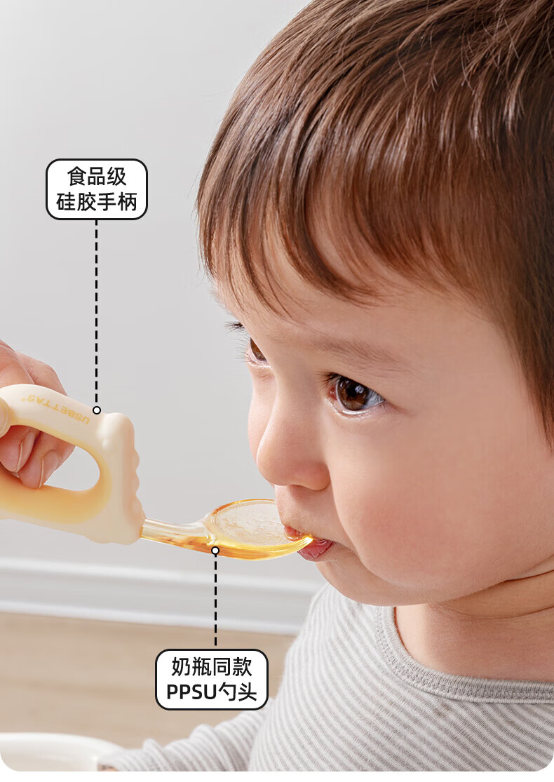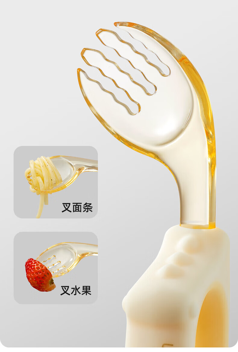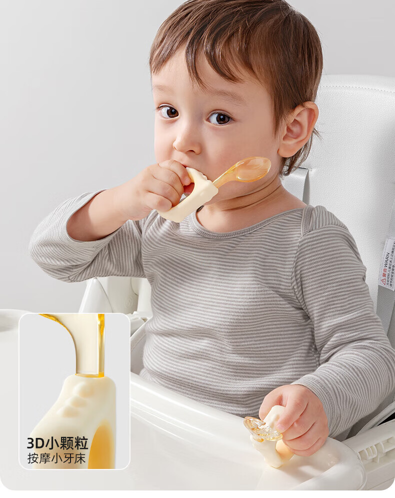 贝肽斯宝宝勺子婴儿学吃饭训练叉勺自主进食辅食勺子儿童餐具套装 芝士白-单勺【赠收纳盒】