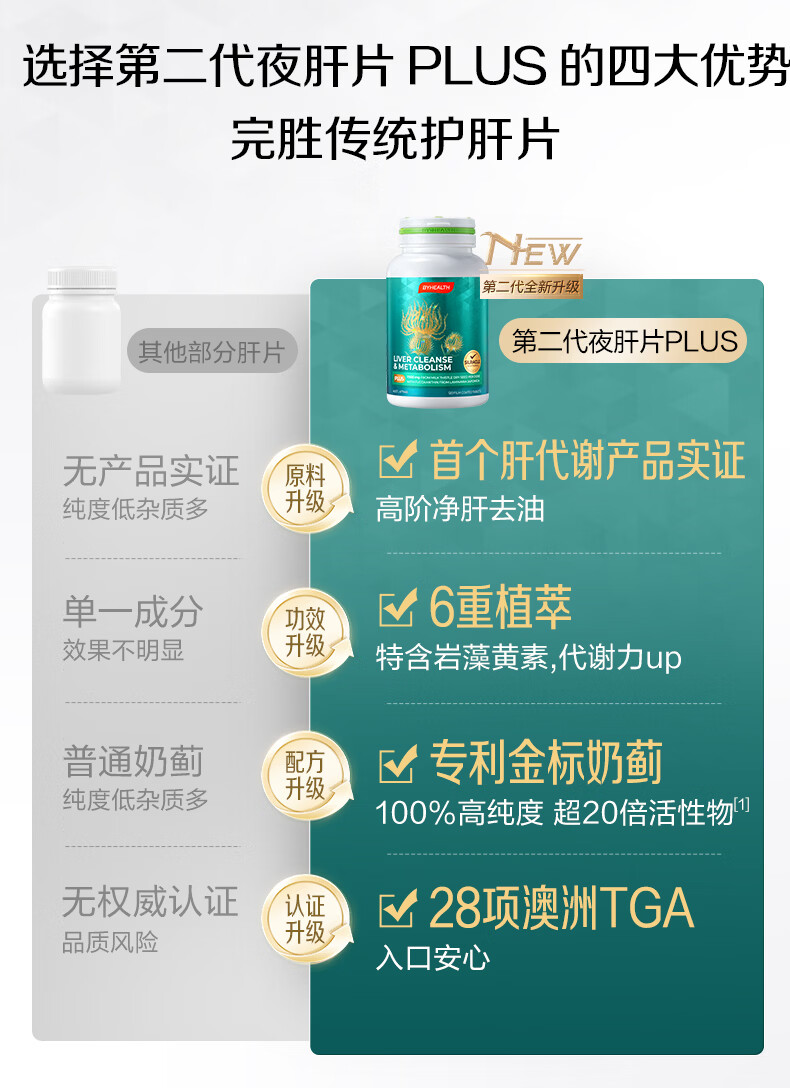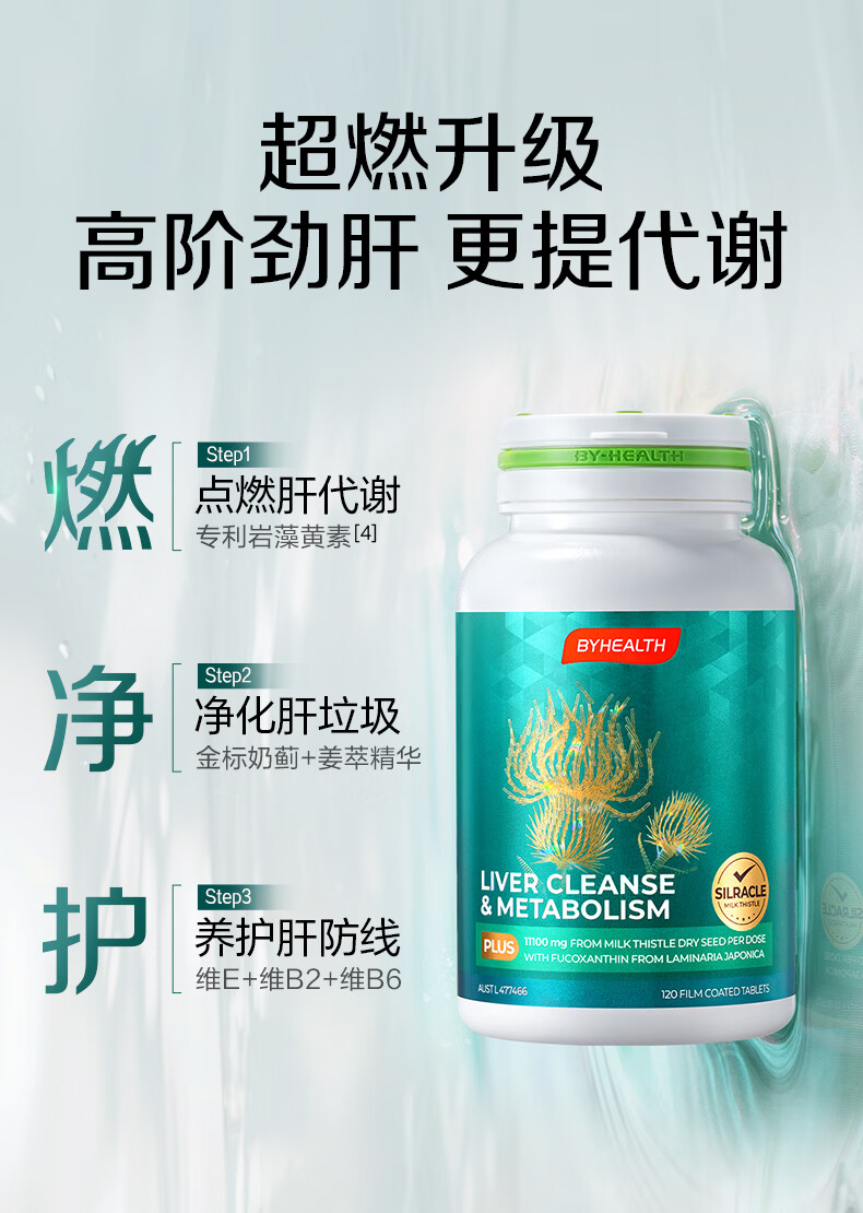 BYHEALTH奶蓟草护肝片PLUS2.0升级版男女加班熬夜脂肪肝水飞蓟进口养肝 【加量不加价】护肝PLUS2.0升级*2+送40粒