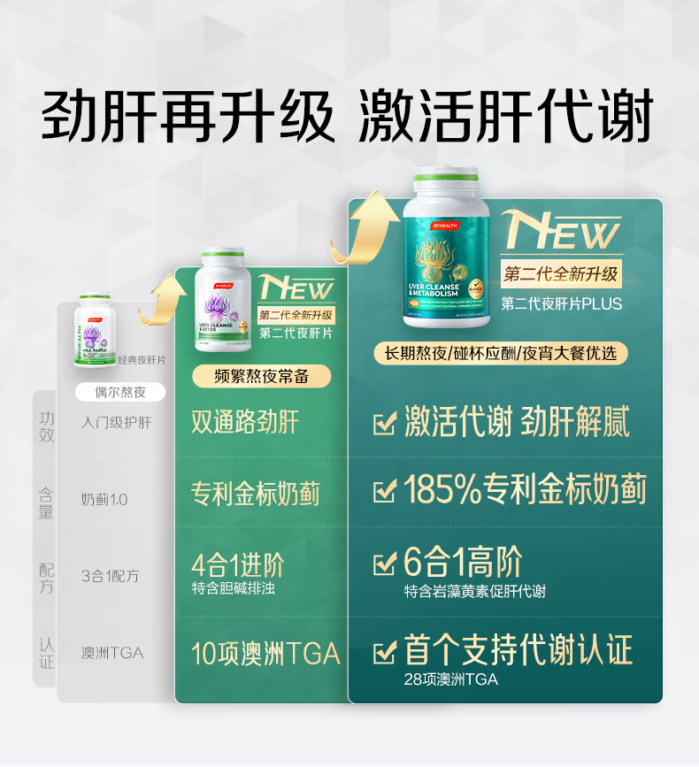 汤臣倍健(BYHEALTH)护肝片二代升级版奶蓟草水飞蓟净肝解酒护肝熬夜烟酒脂肪肝保健品 【改善指标】护肝PLUS升级版120粒*2
