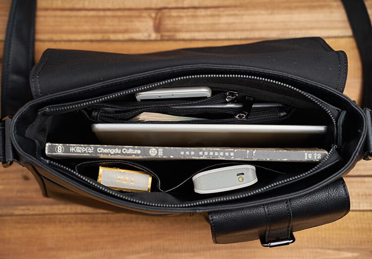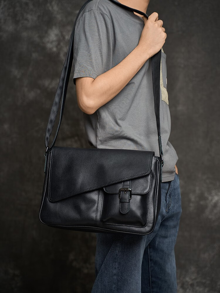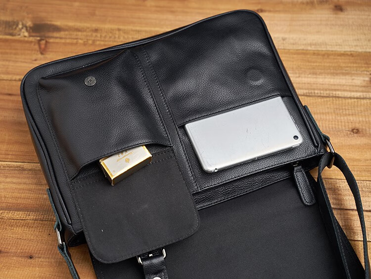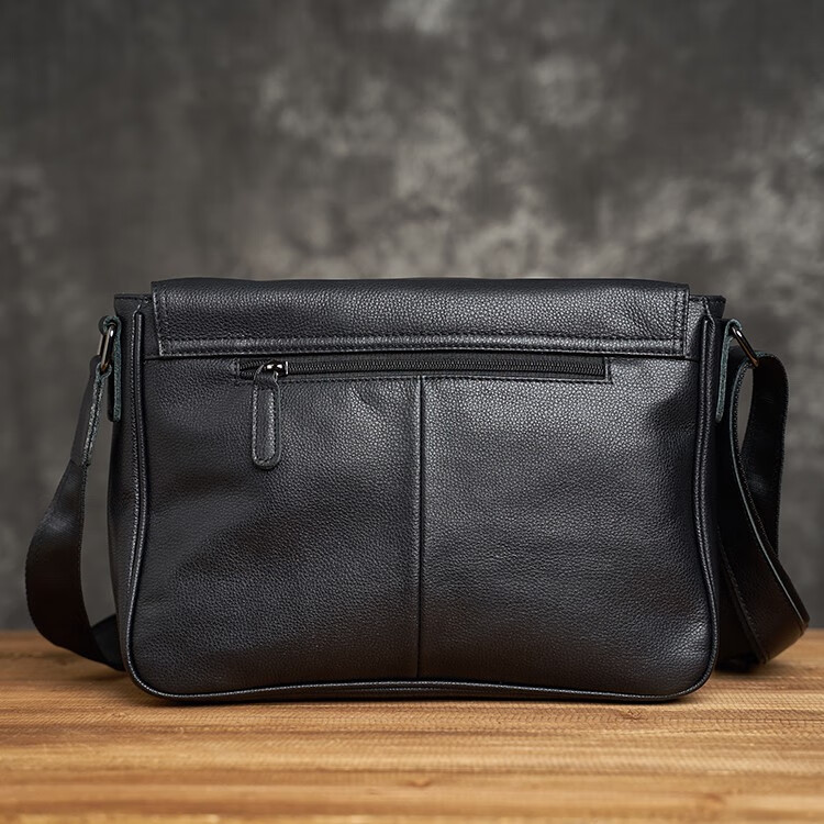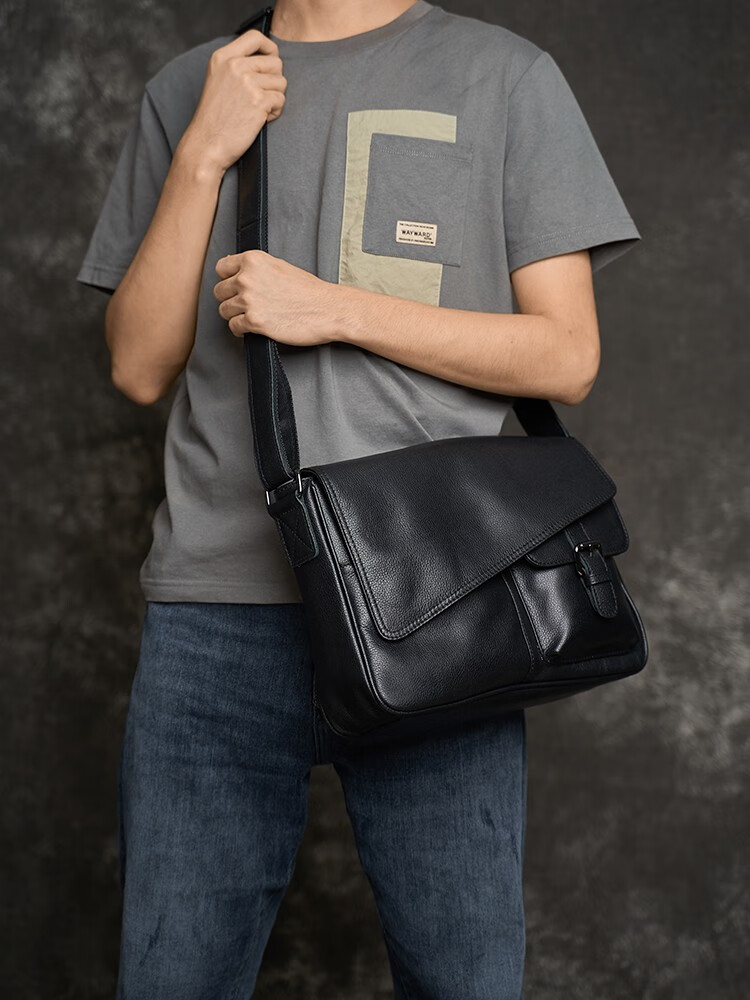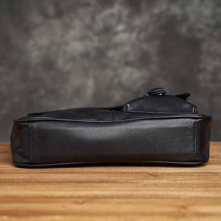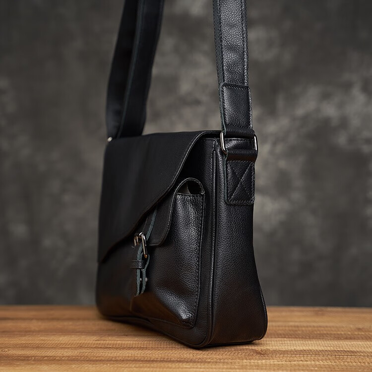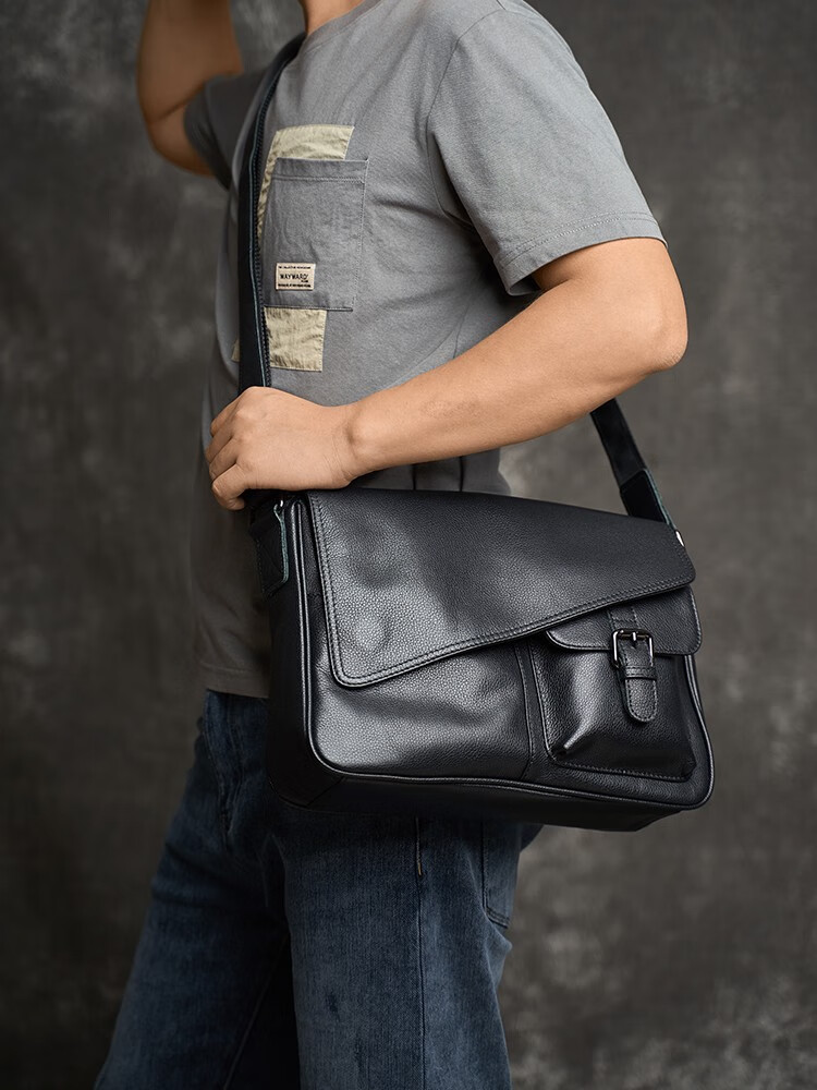 Colrtn Kwecr男士单肩包时尚休闲斜挎包大容量商务文件包真牛皮邮差包奢侈品 CK黑色33*24*7.5(14英寸)