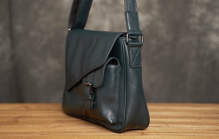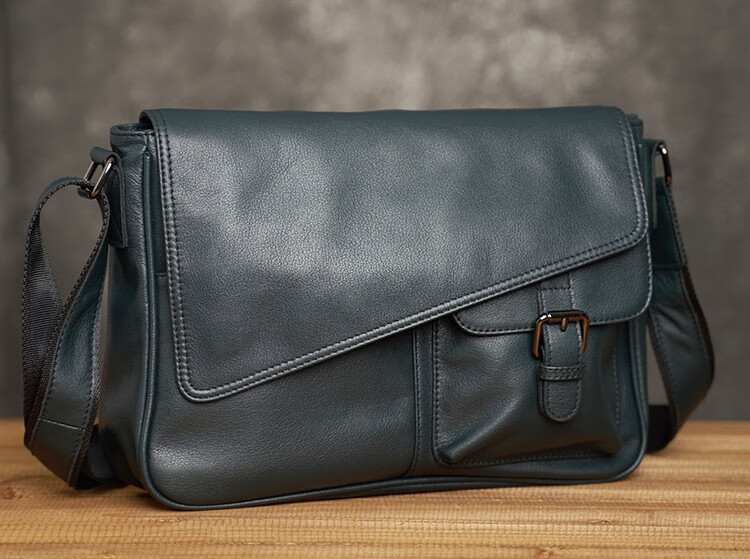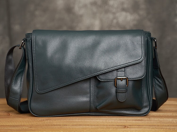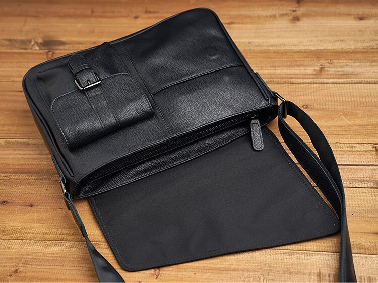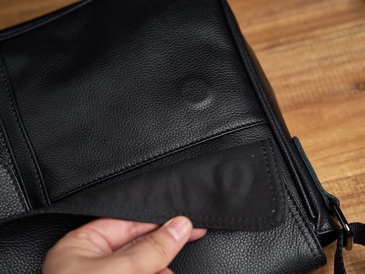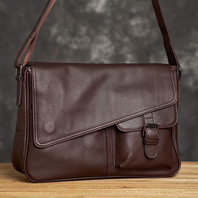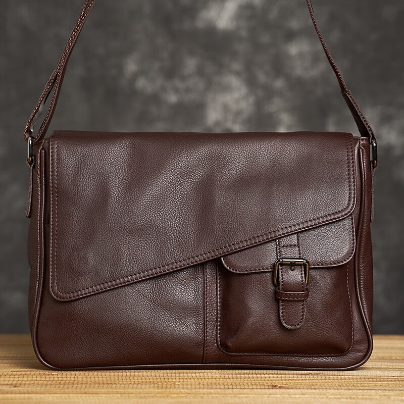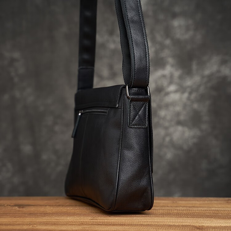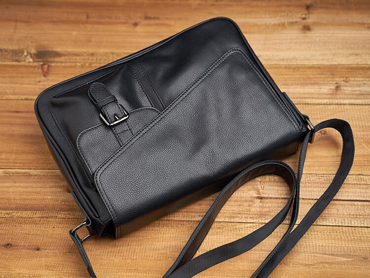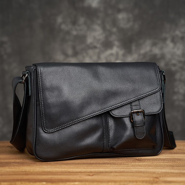 Colrtn Kwecr男士单肩包时尚休闲斜挎包大容量商务文件包真牛皮邮差包奢侈品 CK黑色33*24*7.5(14英寸)