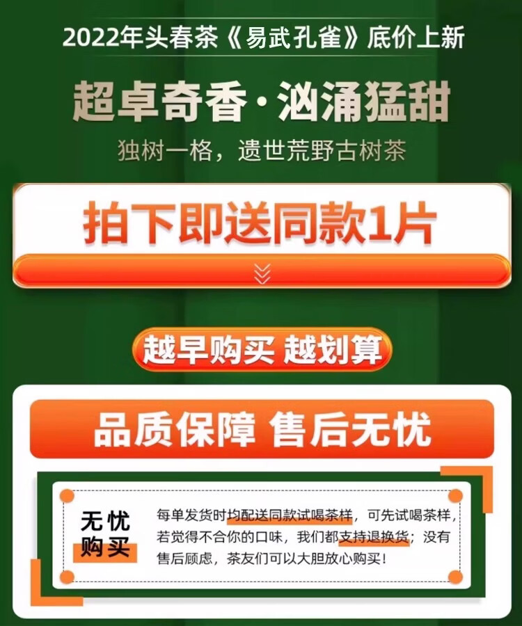 金孔雀2022易武孔雀古树普洱茶生茶云南七子饼茶叶自己喝生普茶饼 2499克