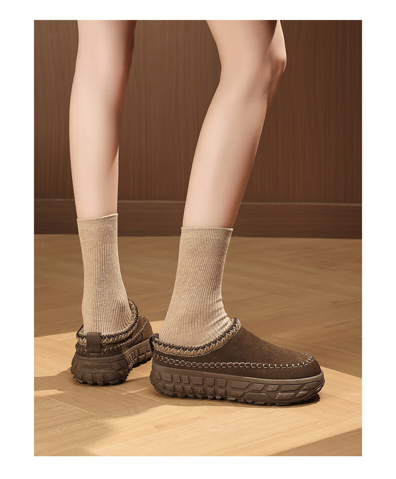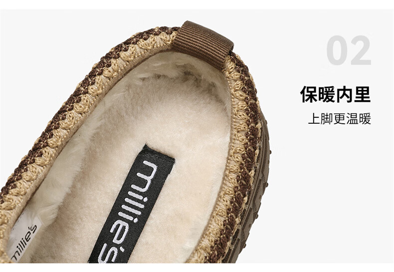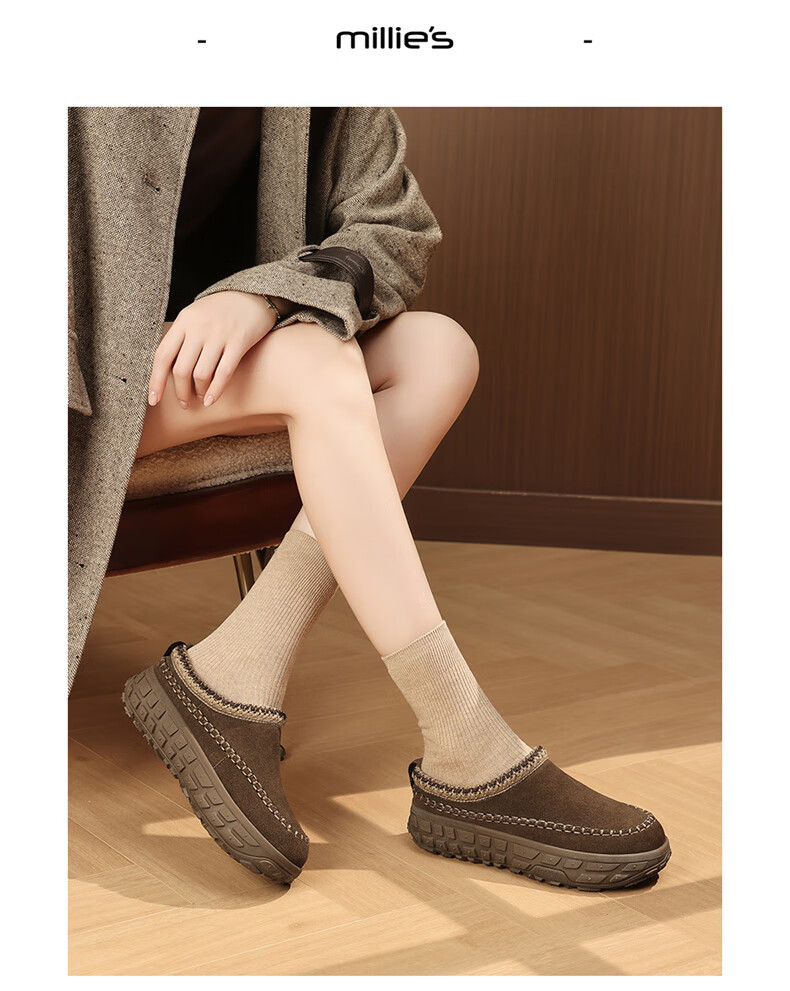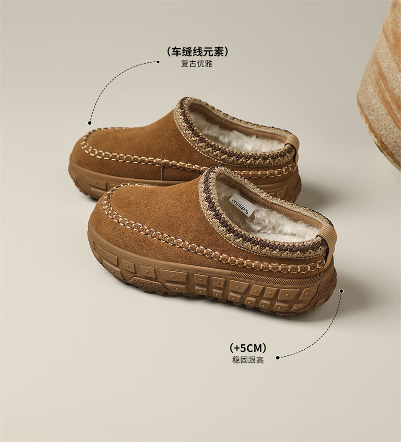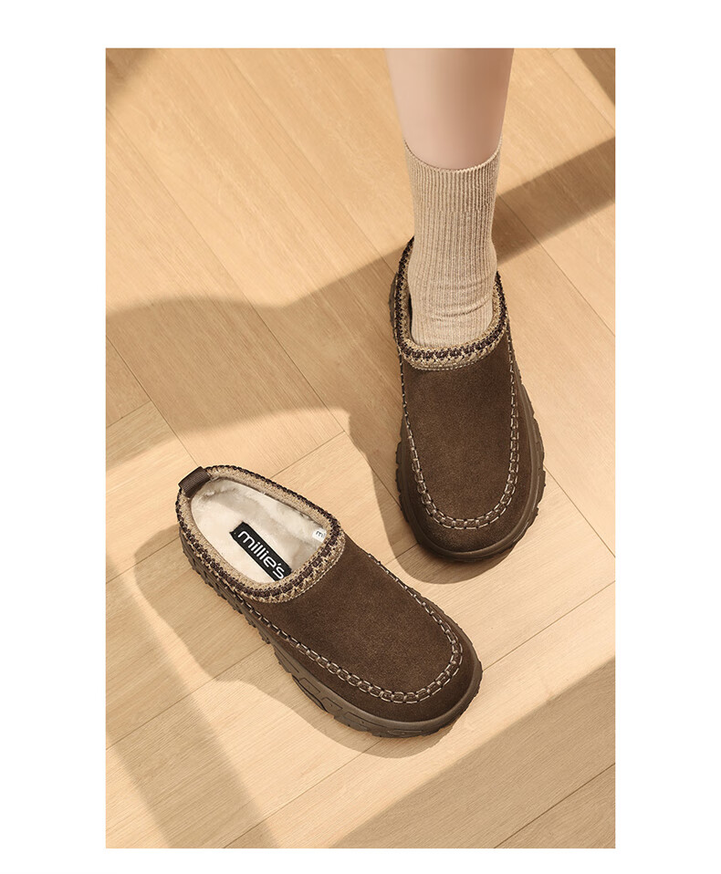 妙丽(Millies)勃肯鞋女厚底加绒复古时尚一脚蹬2025冬季新款百搭包头半拖鞋 咖色 36 (230mm) 标准码