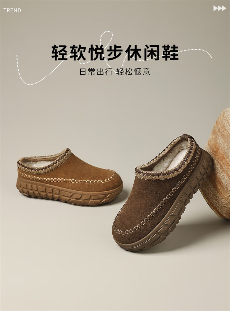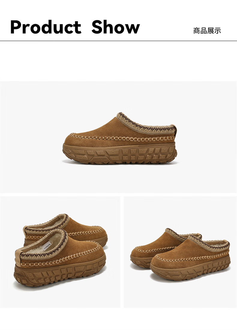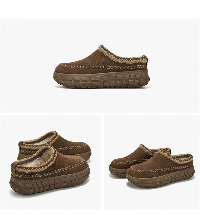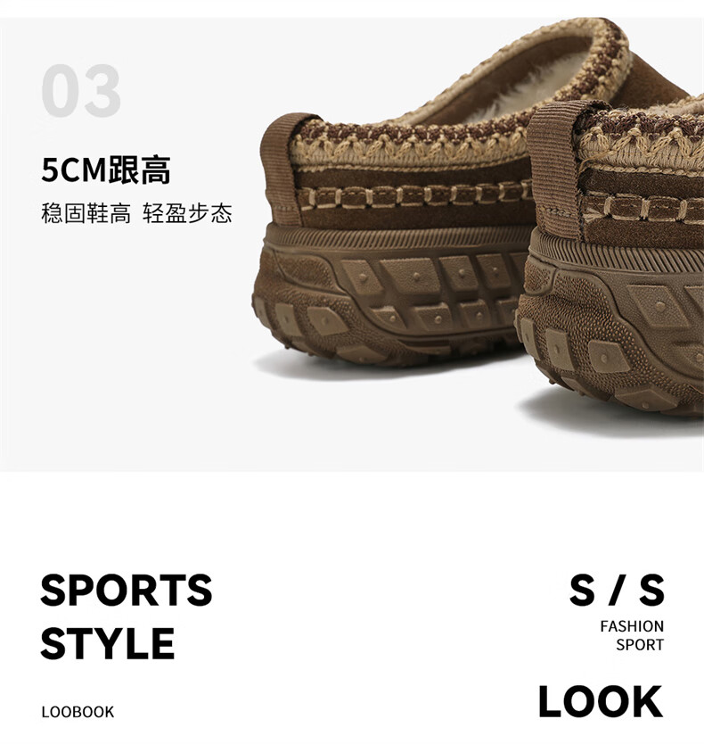 妙丽(Millies)勃肯鞋女厚底加绒复古时尚一脚蹬2025冬季新款百搭包头半拖鞋 咖色 36 (230mm) 标准码