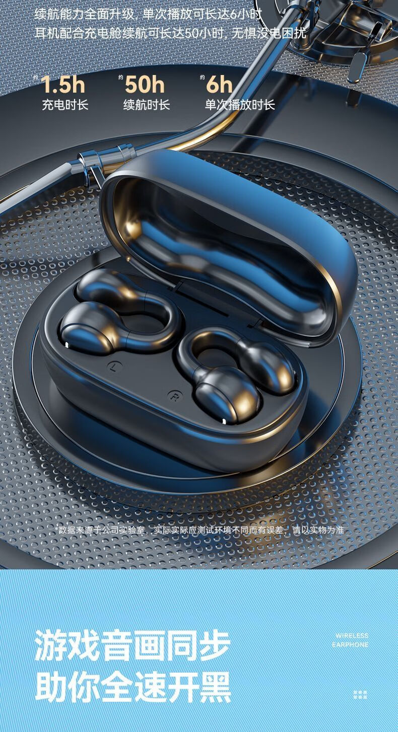 褚酷蓝牙耳机耳夹式骨传导概念运动跑步无线开放式不入耳超长续航挂耳式 镜曜黑