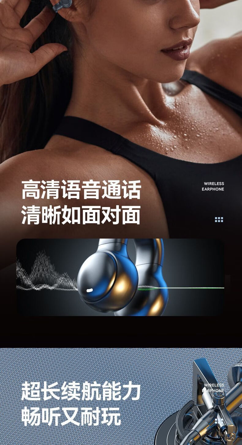 莅莱【100%好评丨顶配大喇叭】耳夹式蓝牙耳机开放耳机不入耳高音质长续航运动跑步金榜排行前十 清晰高音质 | 好评热销2W+ 60H续航+蓝牙5.4+苹果安卓通用