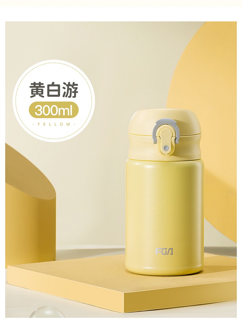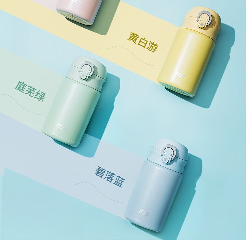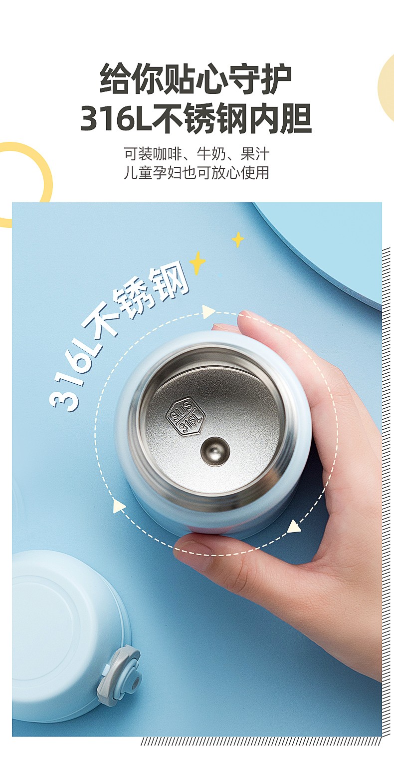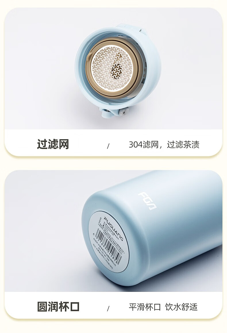 富光保温杯男女高颜值学生316不锈钢水杯保温儿童弹盖小巧便携杯子 碧落蓝【直饮盖+滤网】300ml