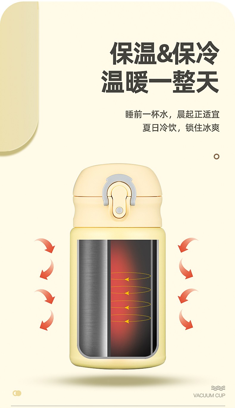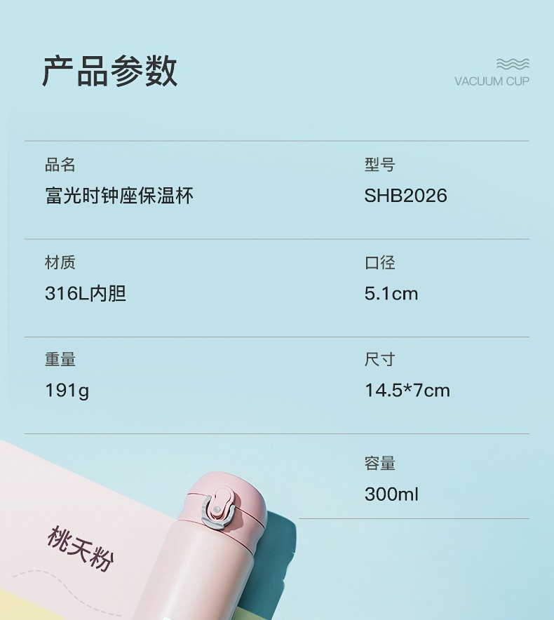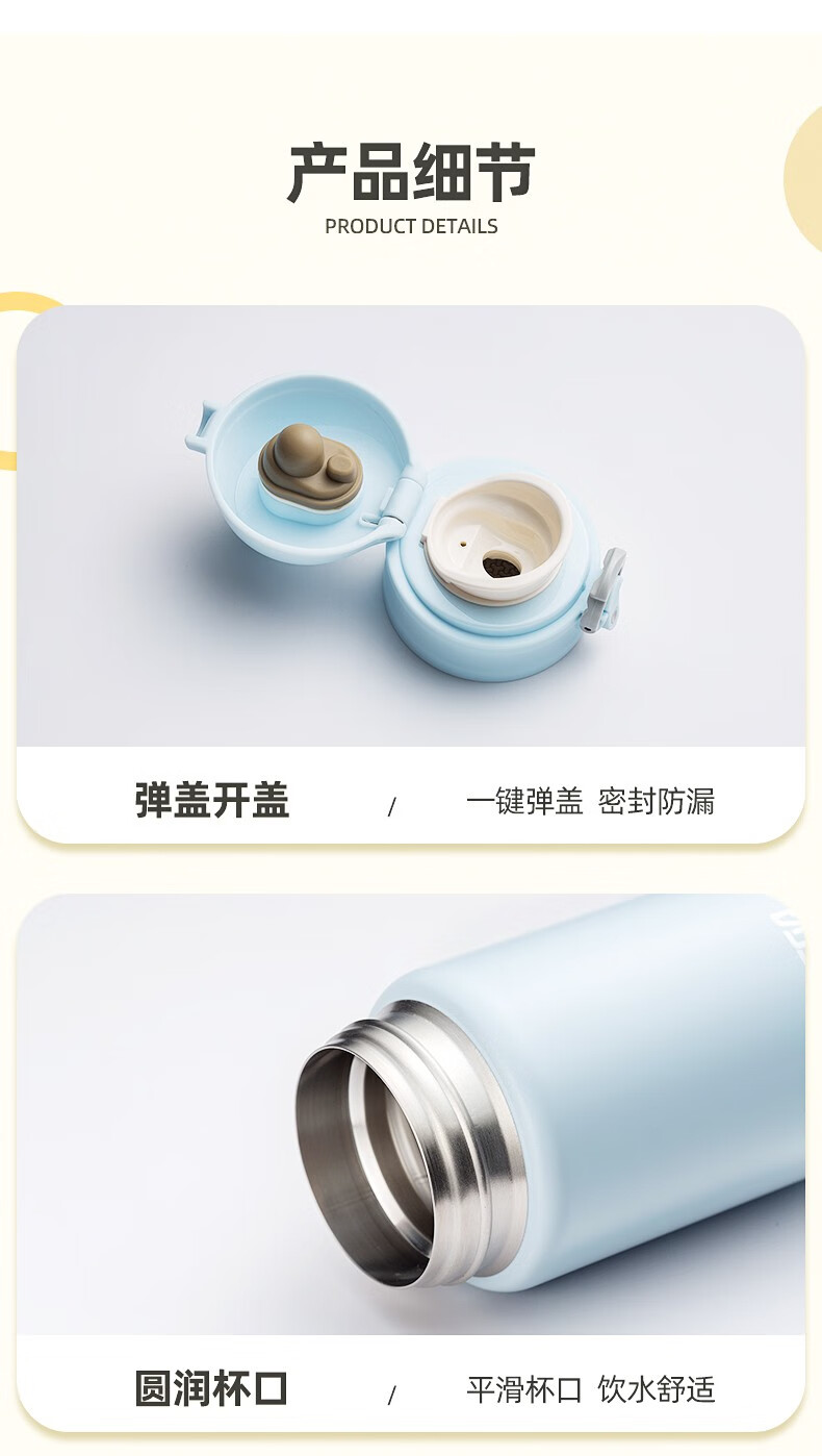 富光保温杯男女高颜值学生316不锈钢水杯保温儿童弹盖小巧便携杯子 碧落蓝【直饮盖+滤网】300ml