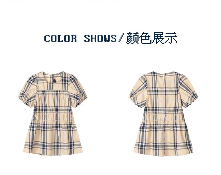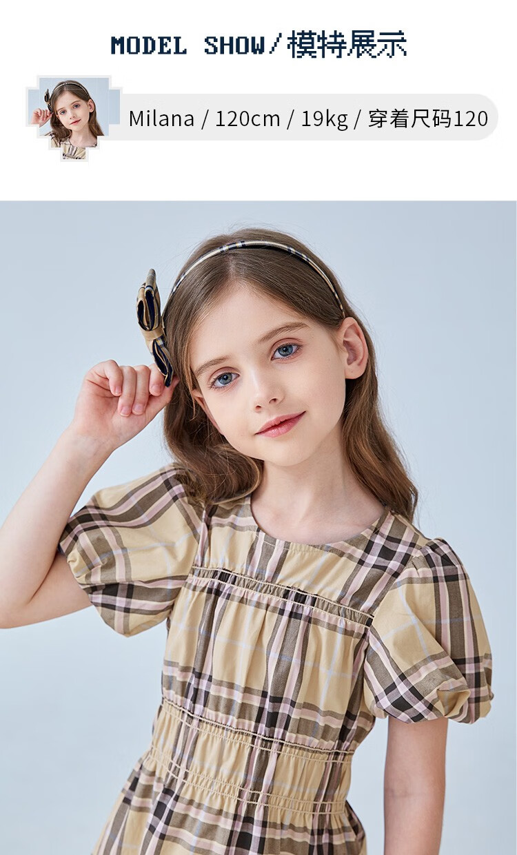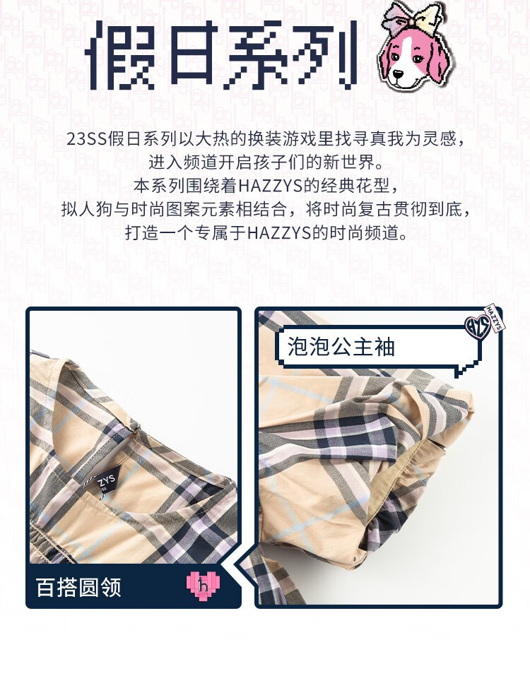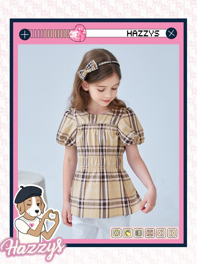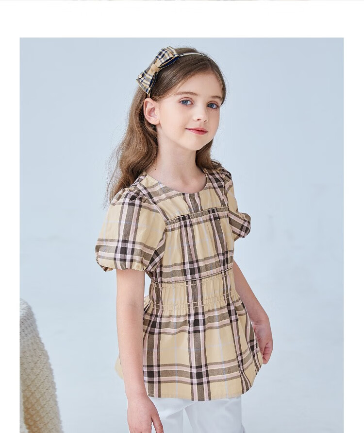 哈吉斯(HAZZYS)童装女童上衣夏新品舒适百搭简约圆领显瘦裙式上衣 格 160