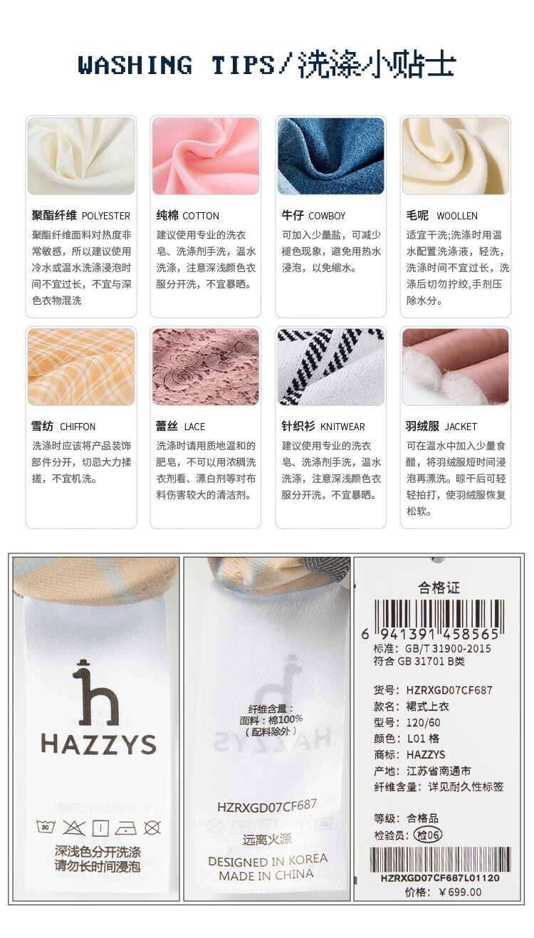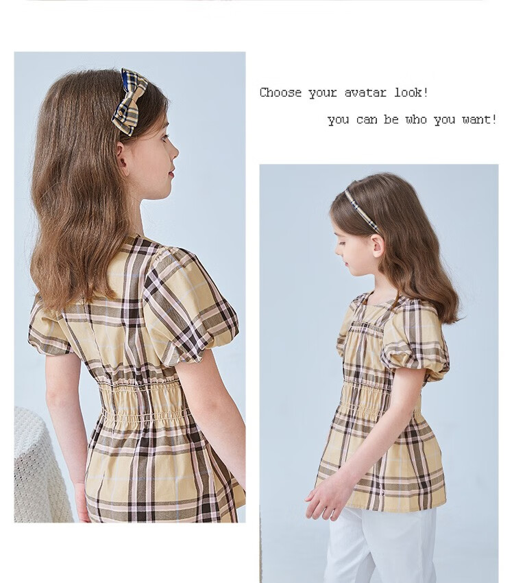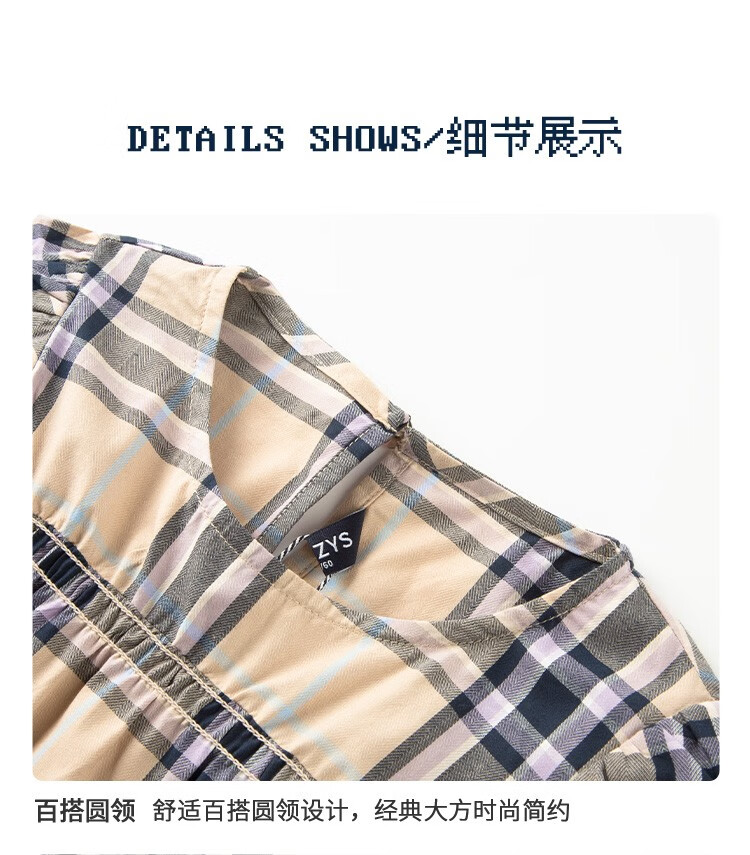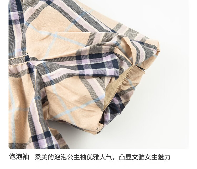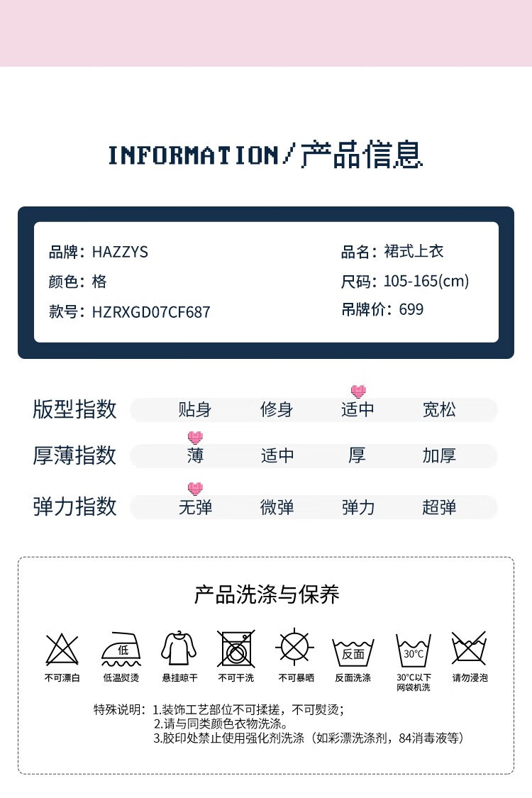 哈吉斯(HAZZYS)童装女童上衣夏新品舒适百搭简约圆领显瘦裙式上衣 格 160