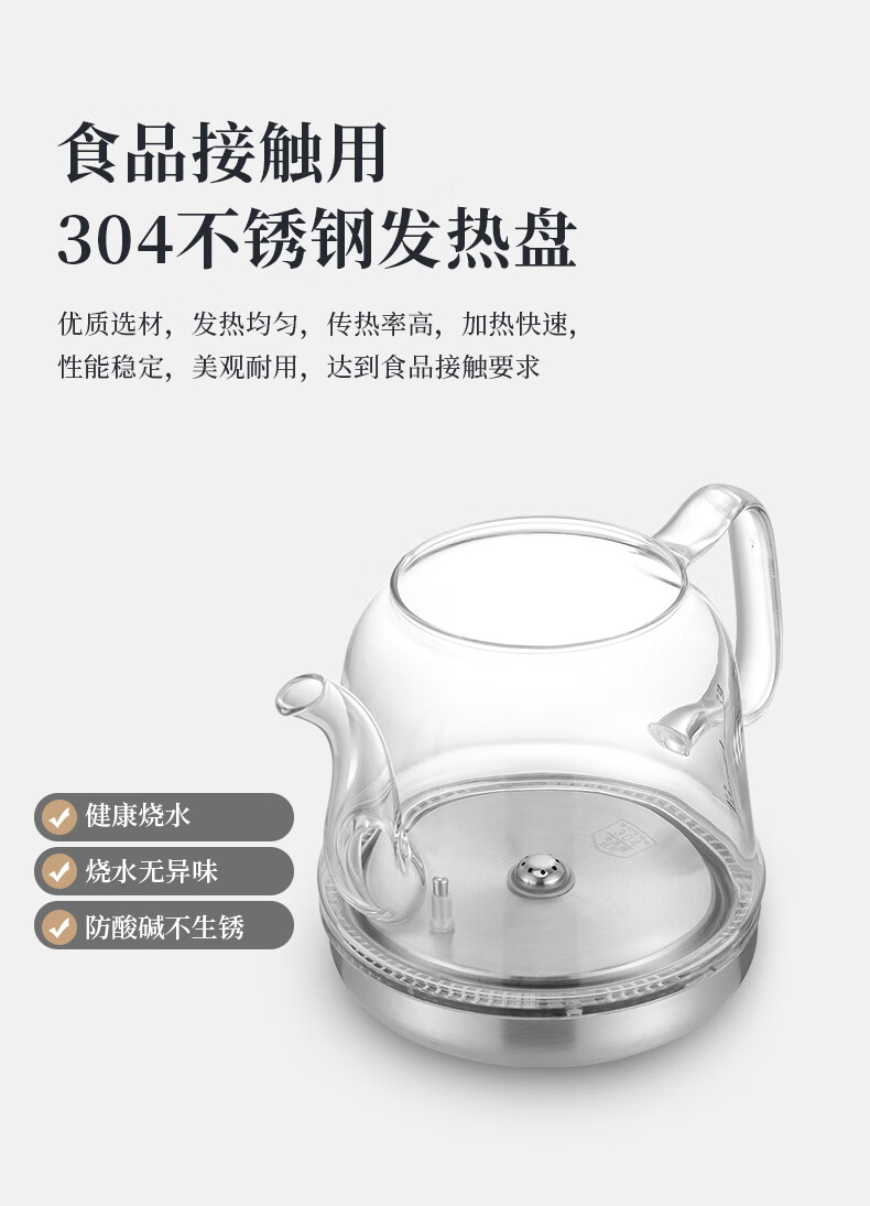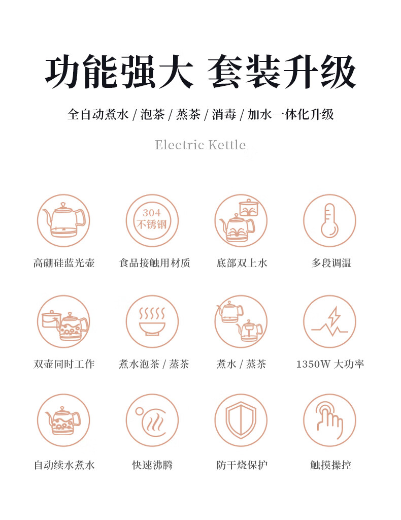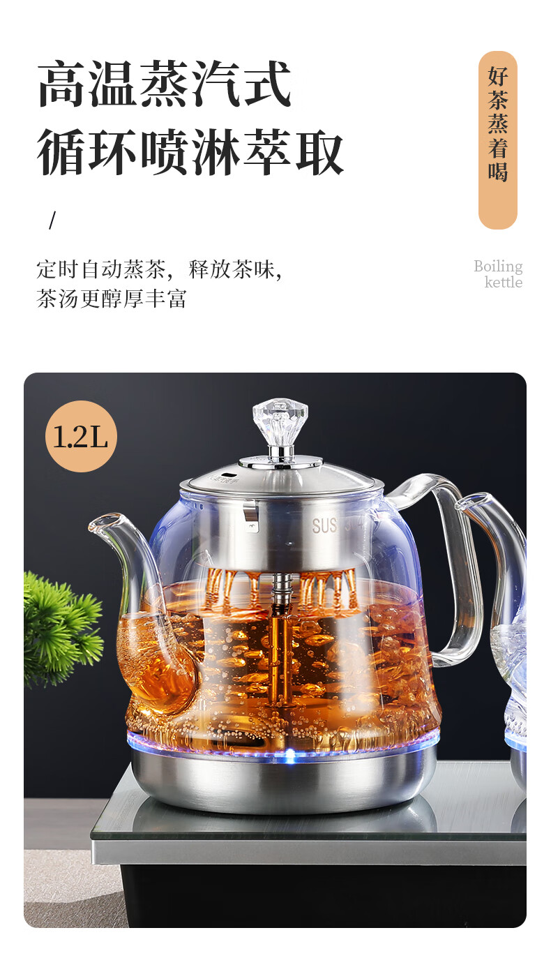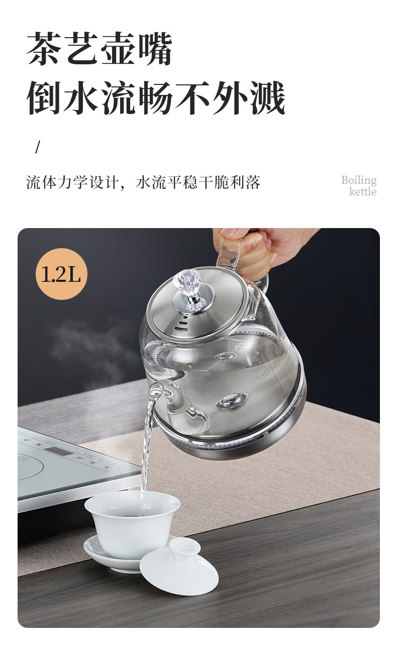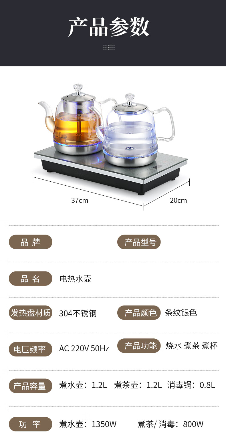金格仕(KinGaz)自动上水电热水壶 双炉可同时加热功夫茶套装 底部加水自动烧水壶 家用玻璃电茶炉嵌入式茶台一体 1.2L 双上水 (拉丝银色) 三件套 23X37cm