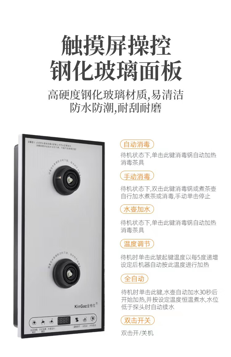 金格仕(KinGaz)自动上水茶台嵌入式烧水壶 37X23大理石纹路玻璃面板底部上水电热水壶家用玻璃茶台一体电茶炉 1L 大理石纹【23X37】白色-蒸茶款