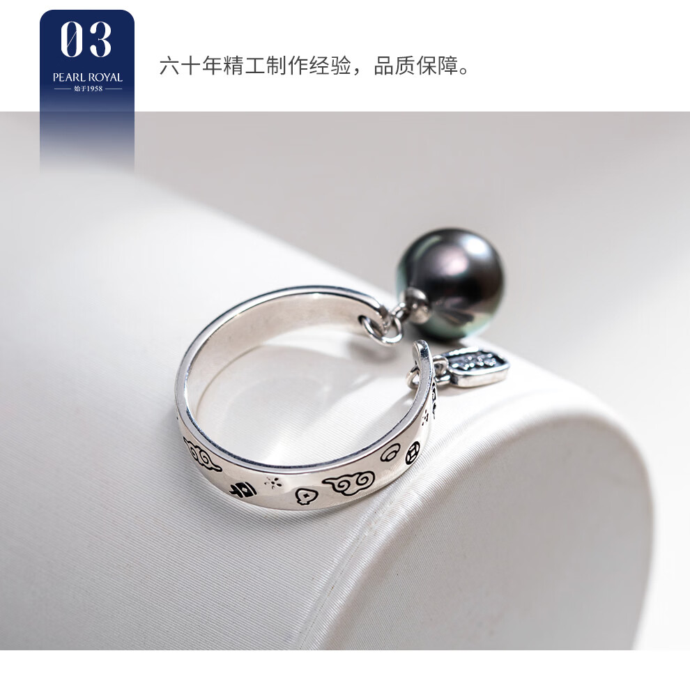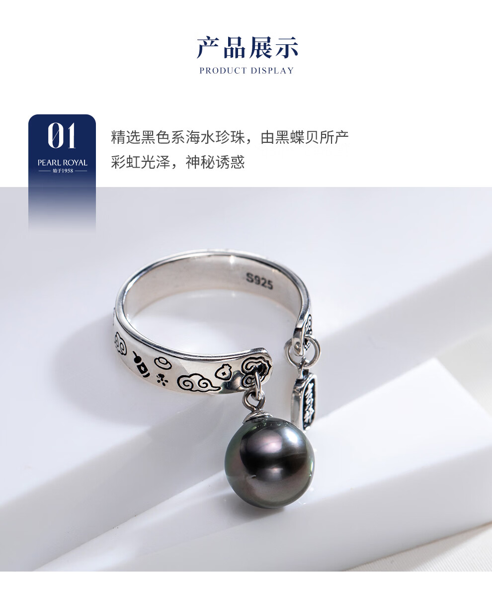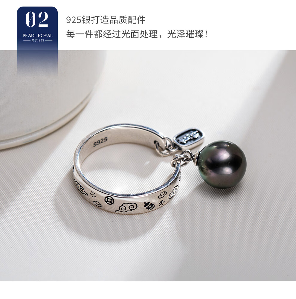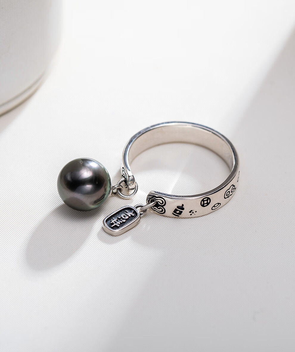 南珠宫吉星925银大溪地海水珍珠戒指祥云寓意新年礼物送老公 8.0-9.0mm 戒圈13-15号