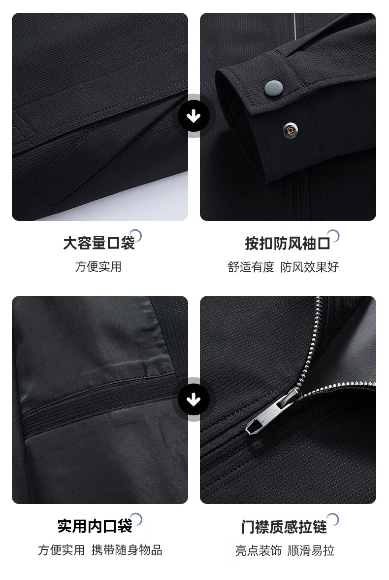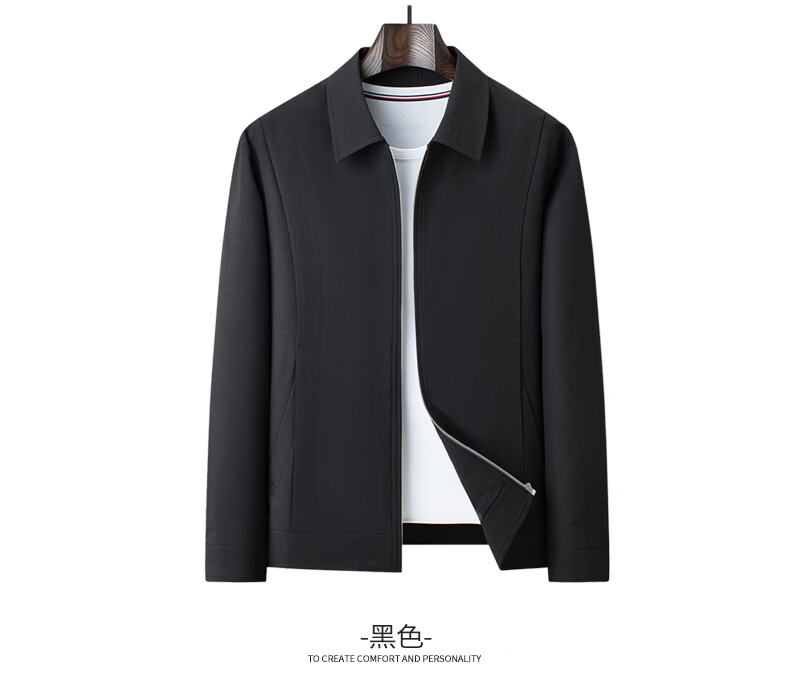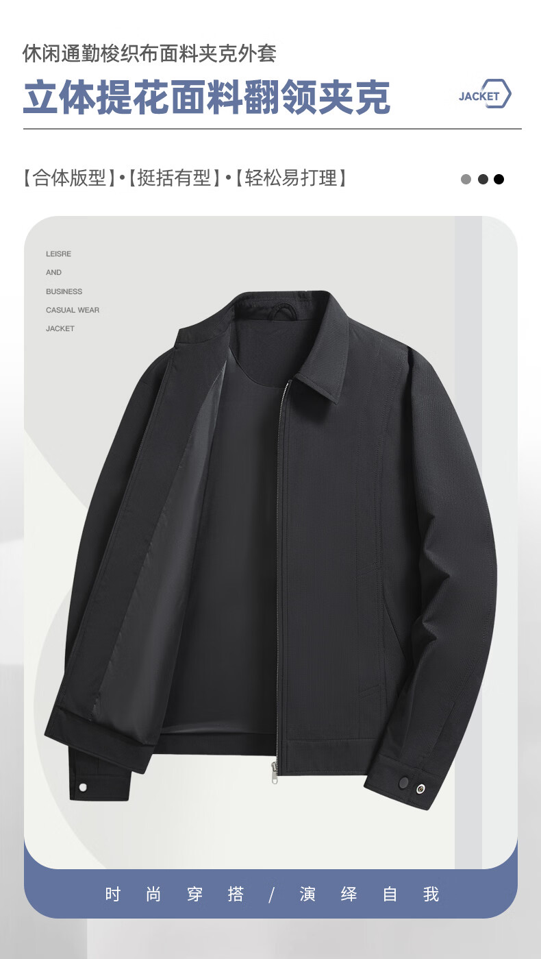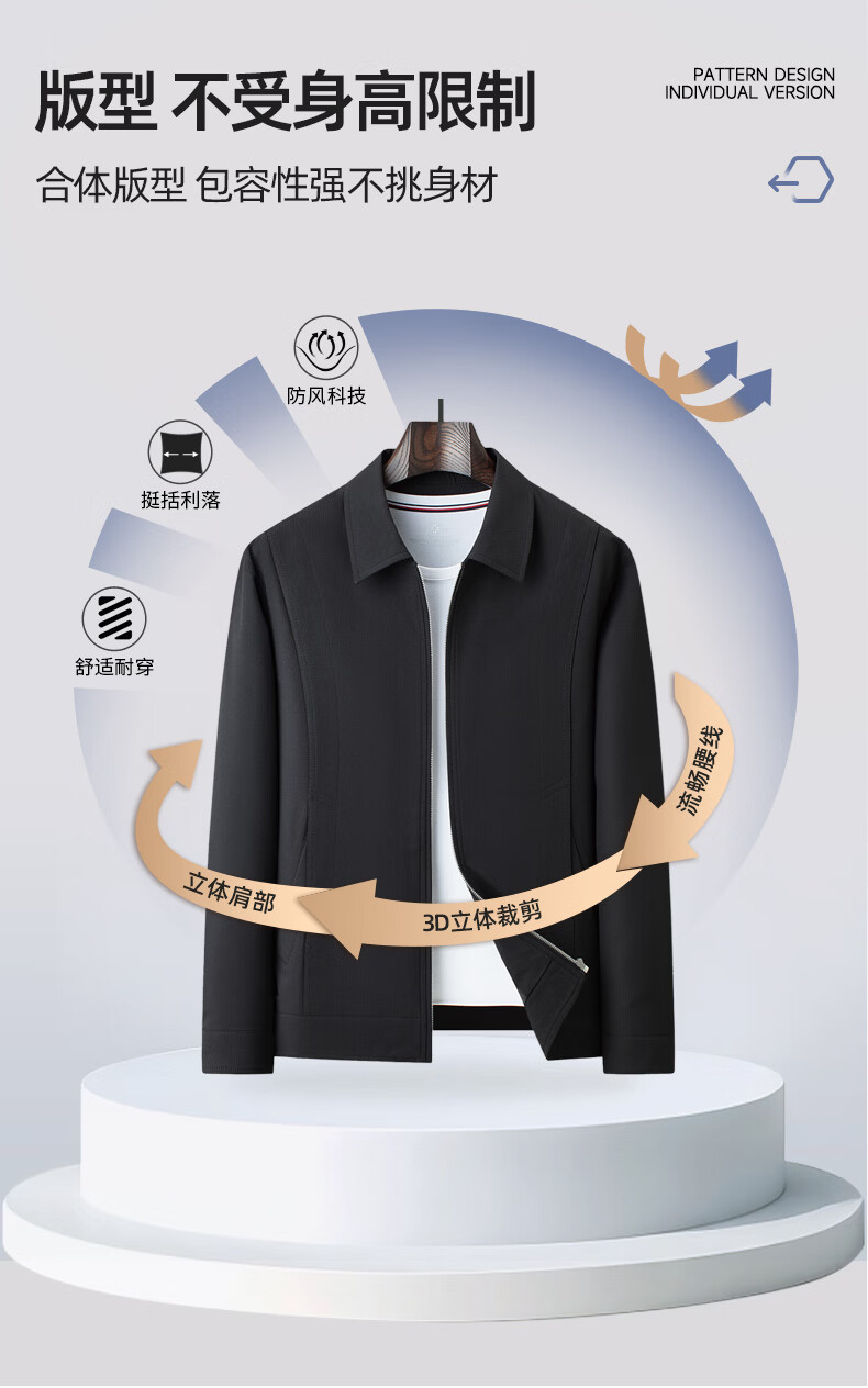 SHANSHAN杉杉男士翻领夹克2026春季新款百搭休闲时尚上衣长袖防风立体外套 黑色 L /175