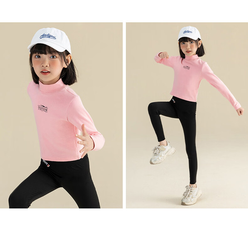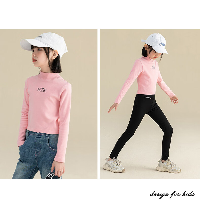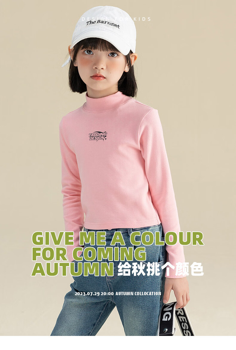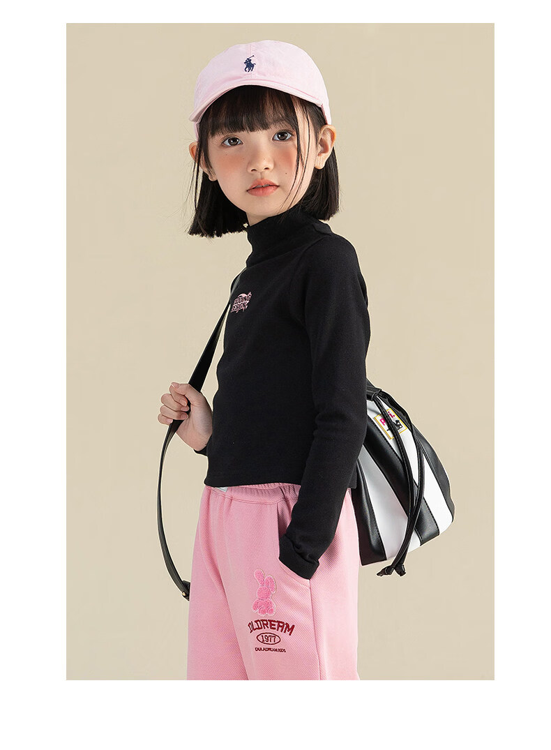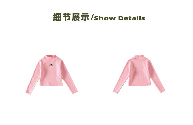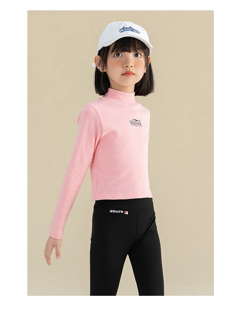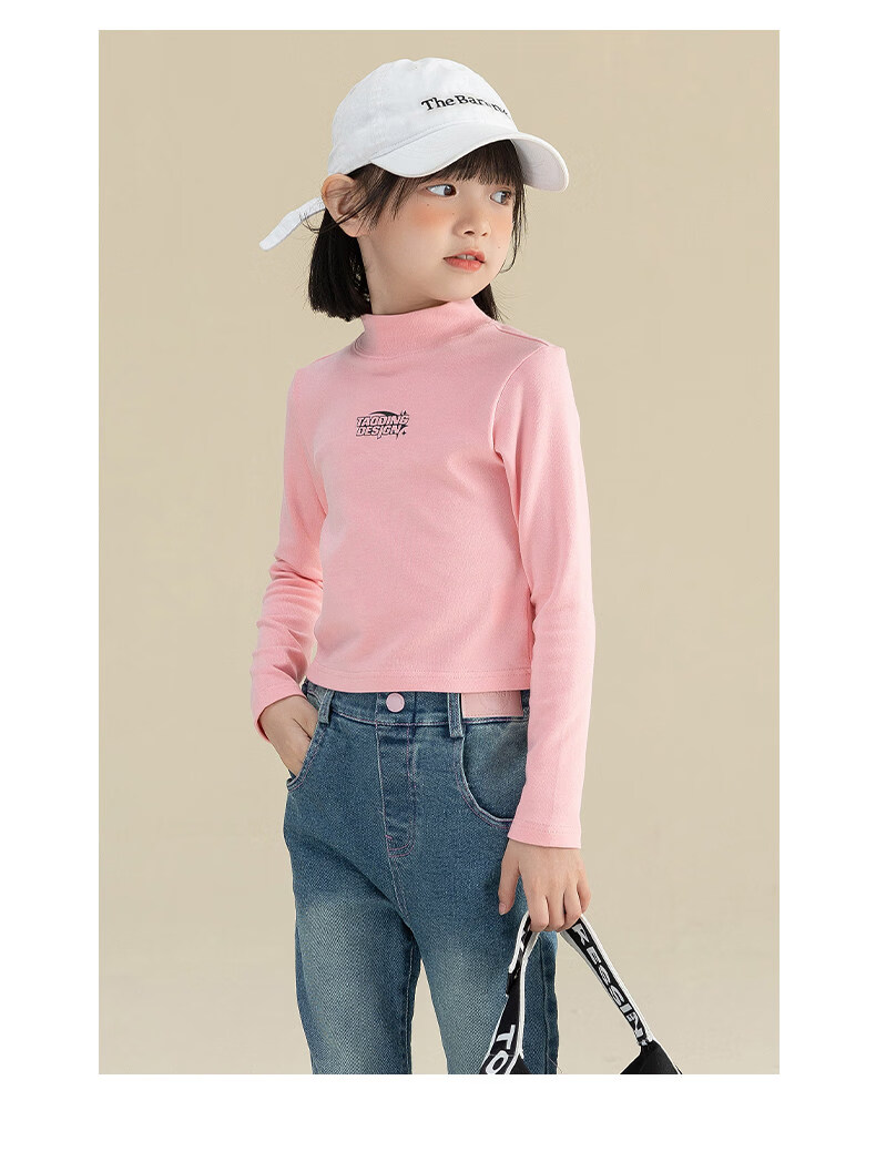 淘町淘町女童长袖t恤春秋季新款中大童复古百搭高领韩版休闲打底衫 粉色 170