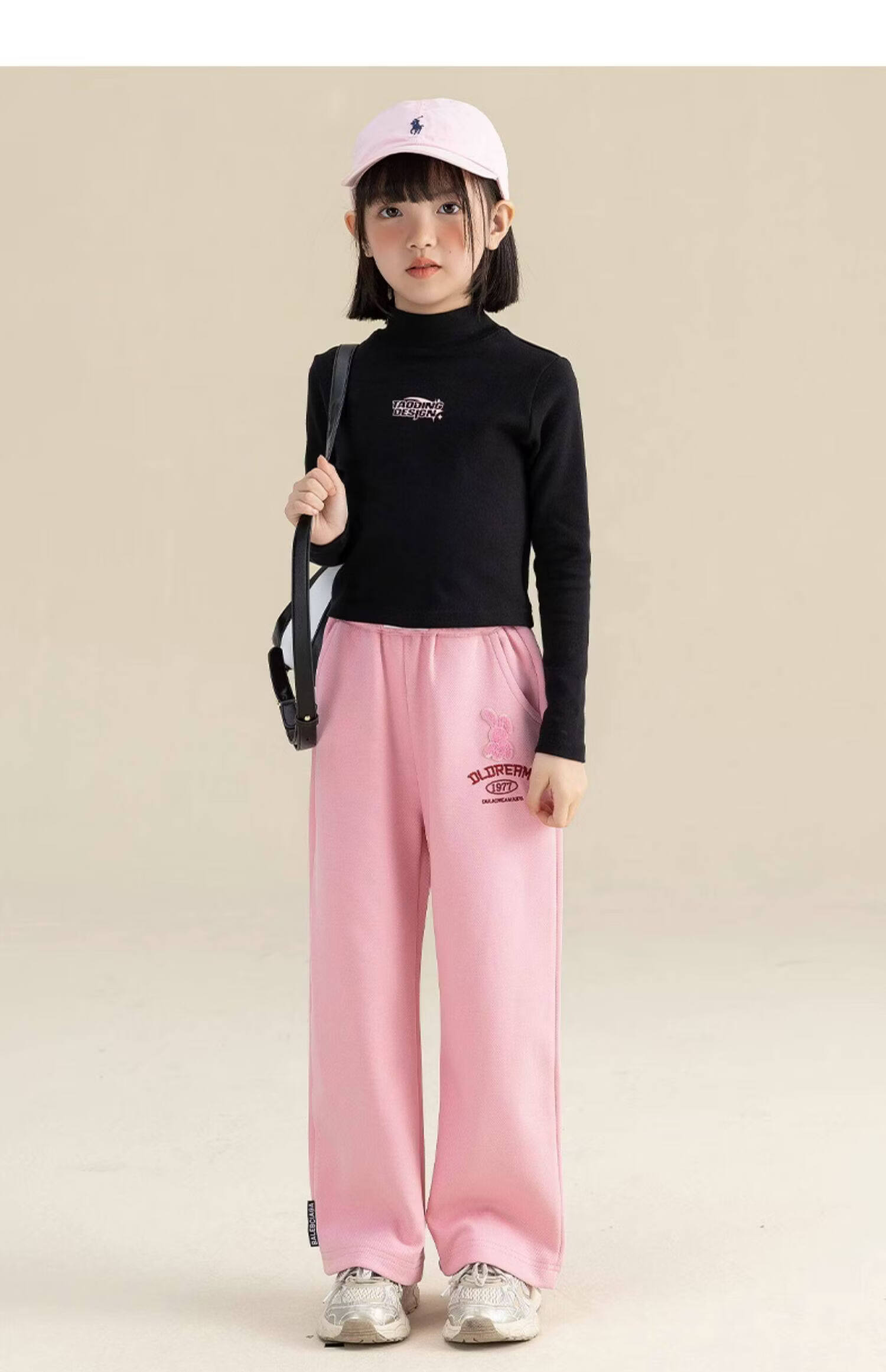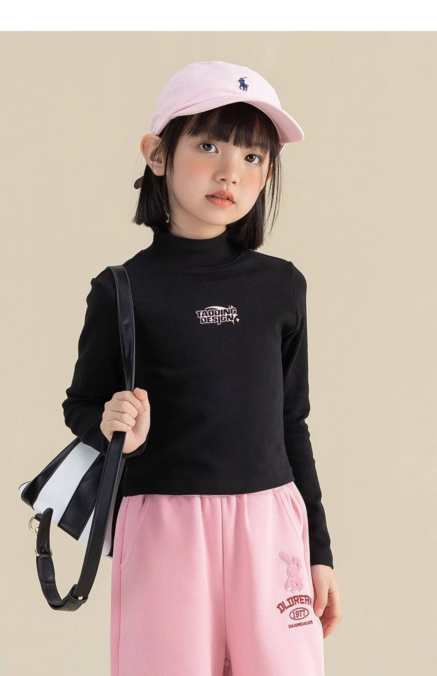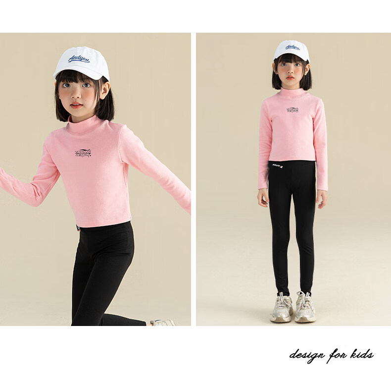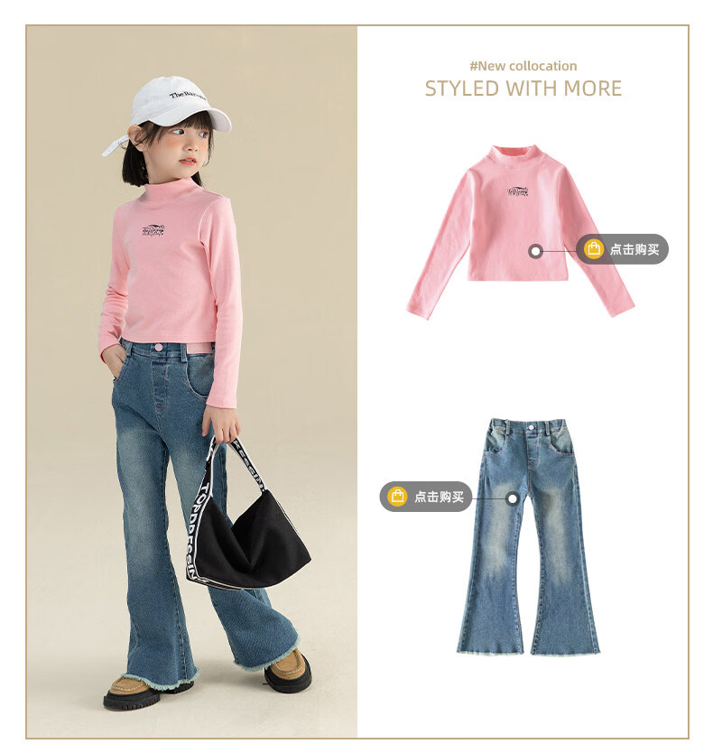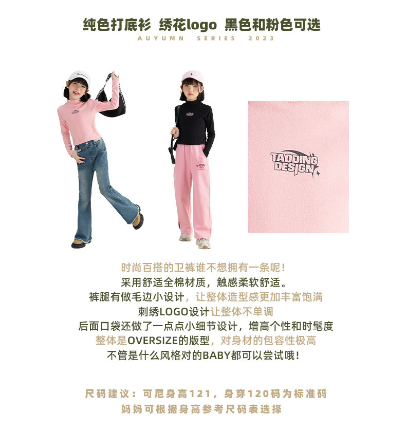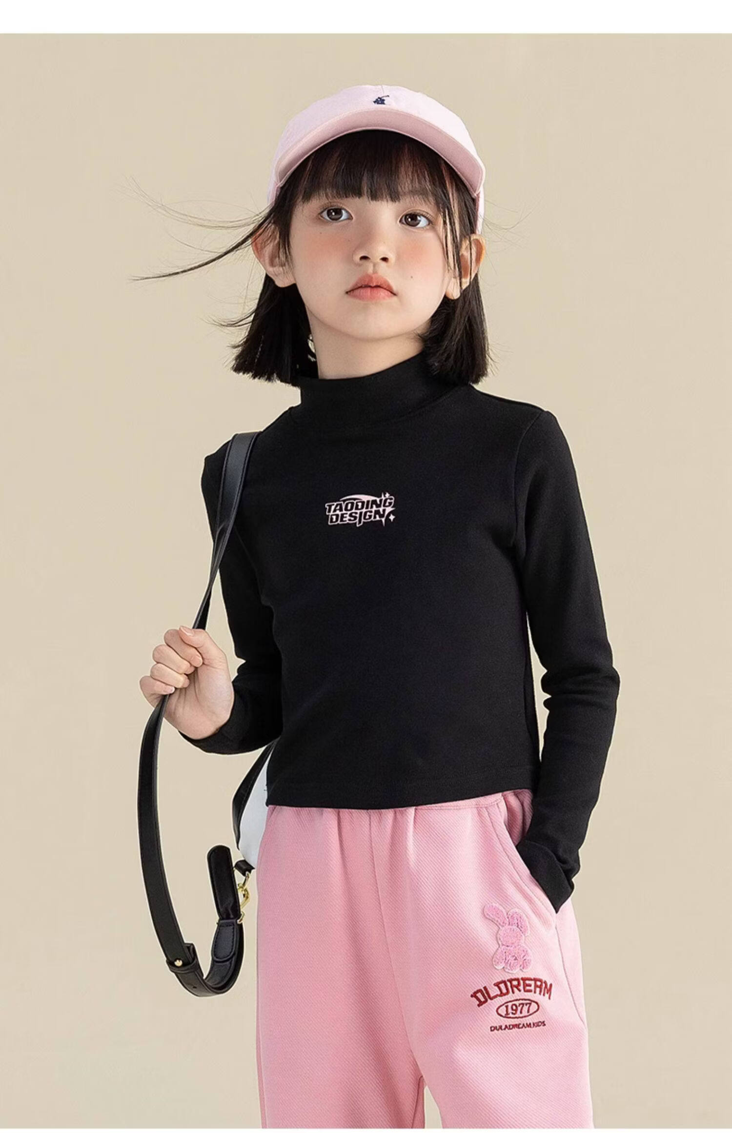 淘町淘町女童长袖t恤春秋季新款中大童复古百搭高领韩版休闲打底衫 粉色 170