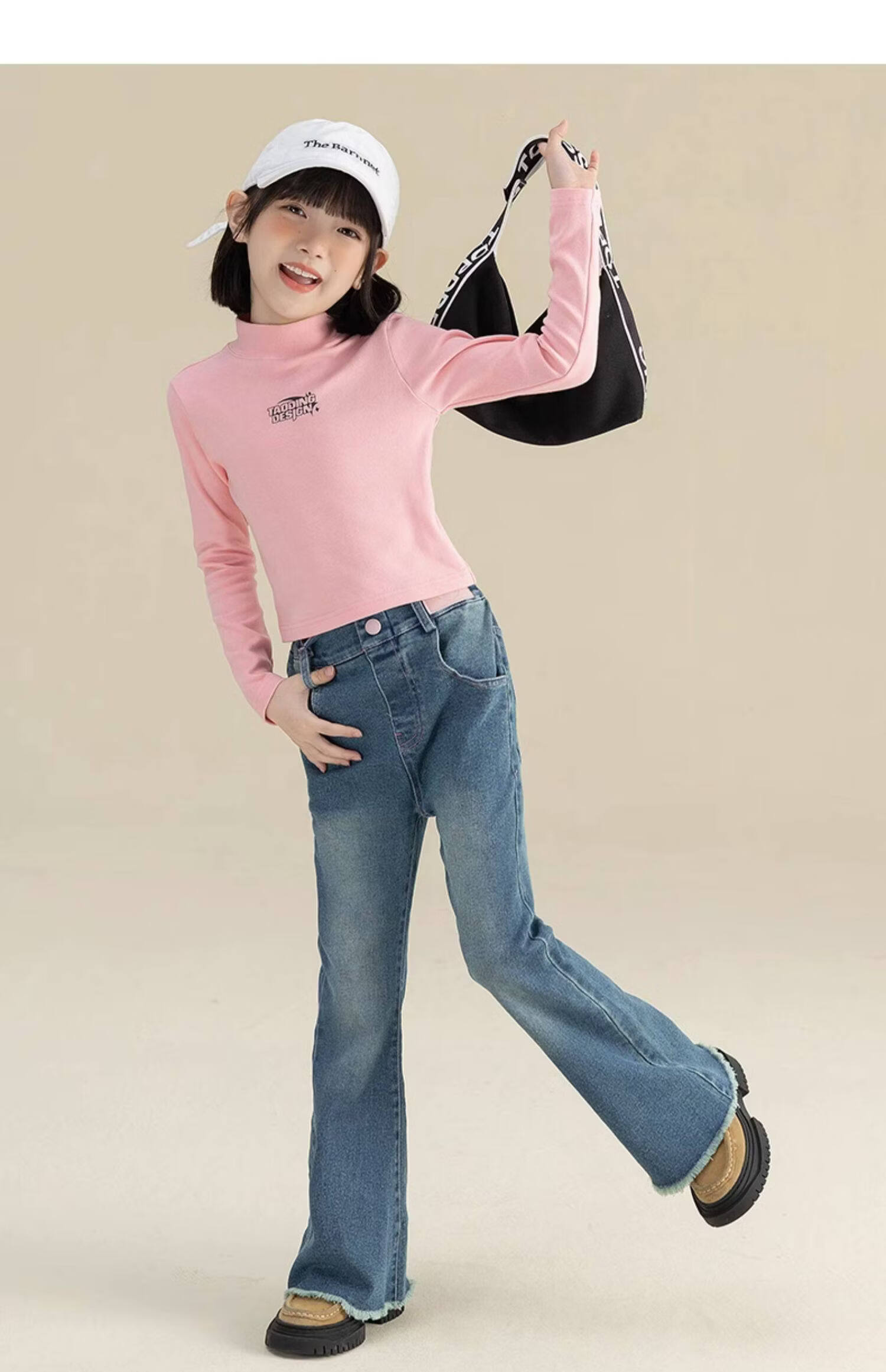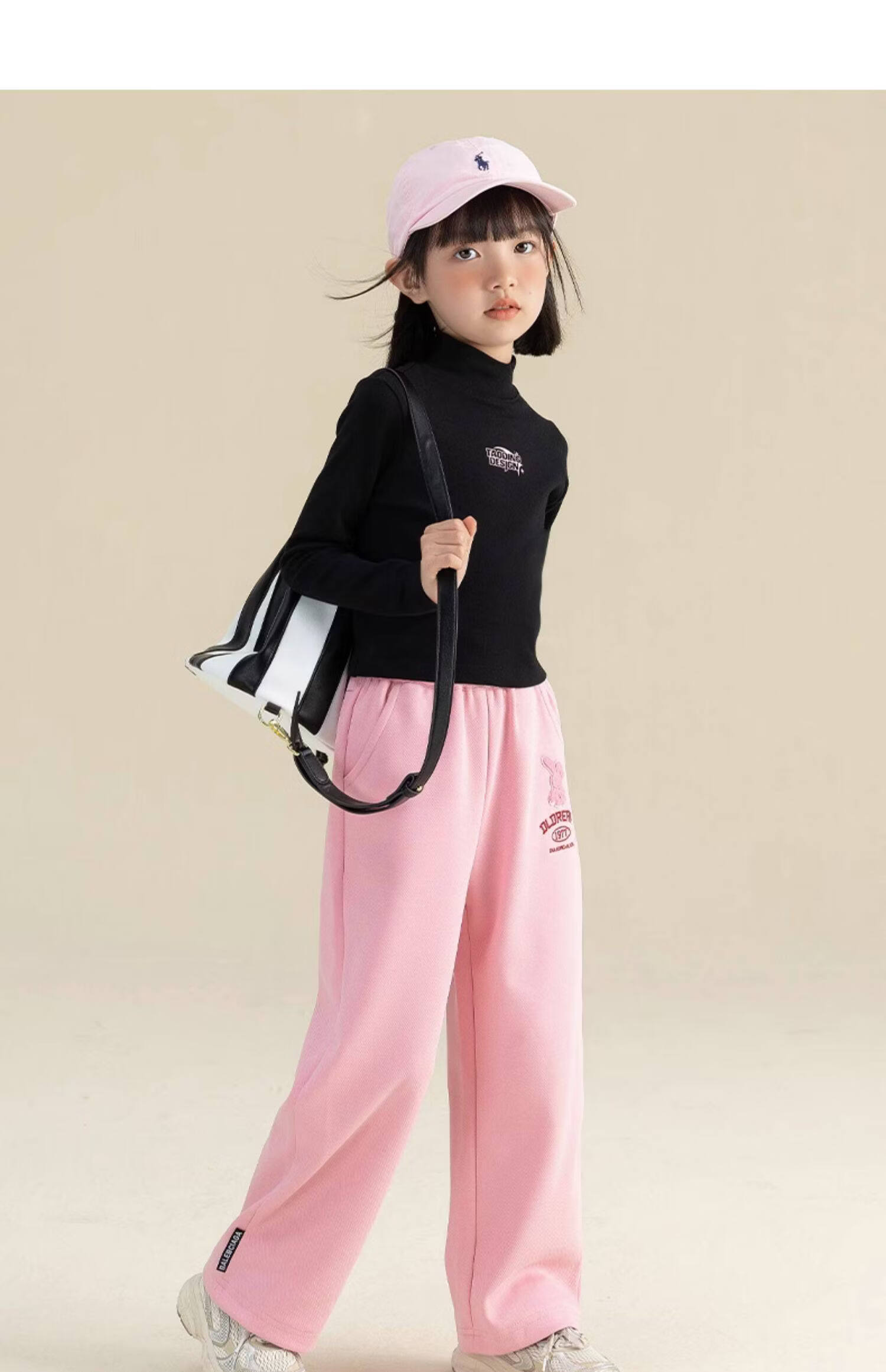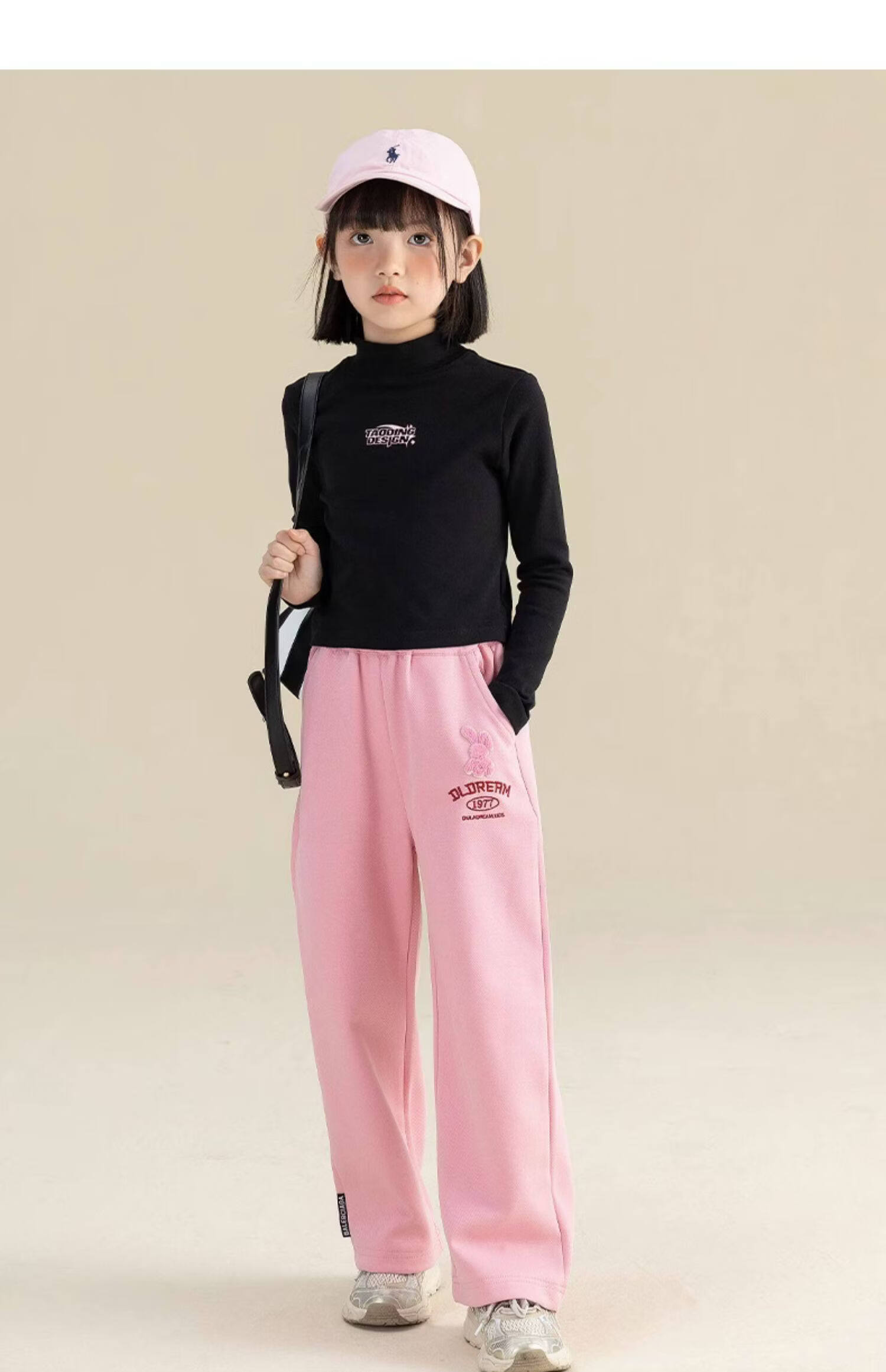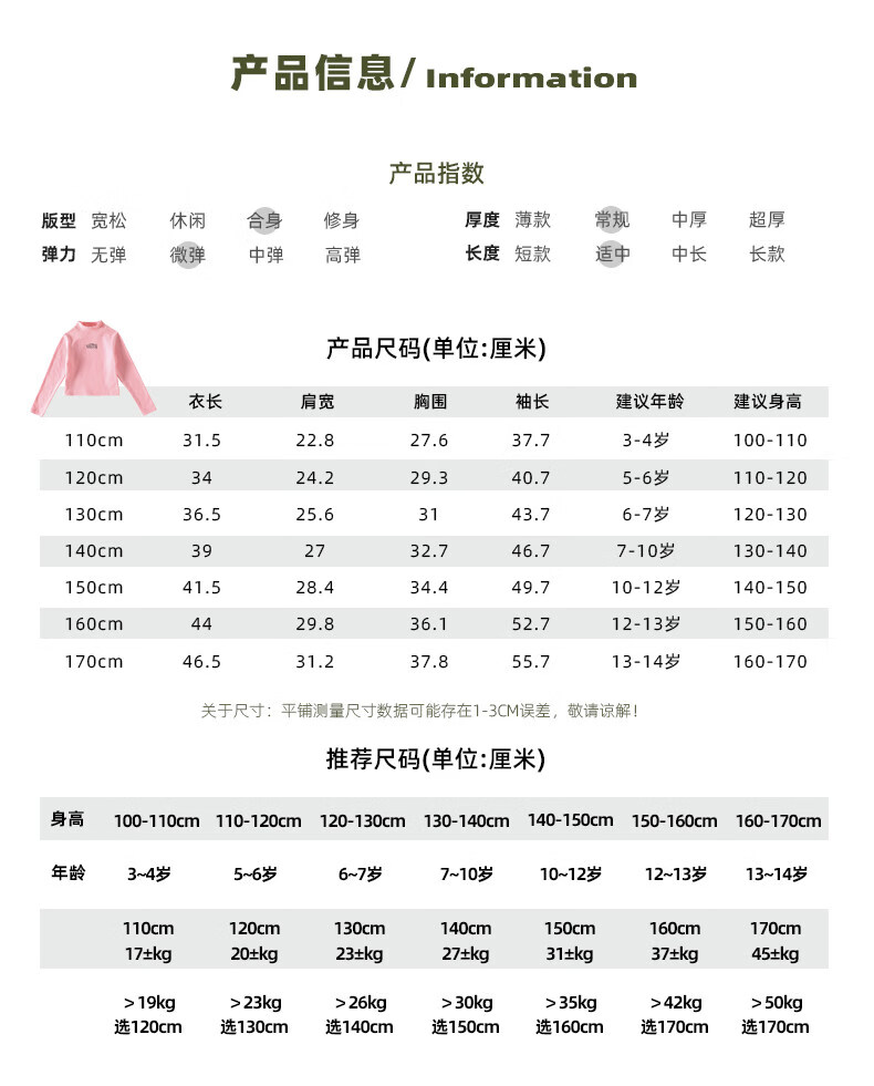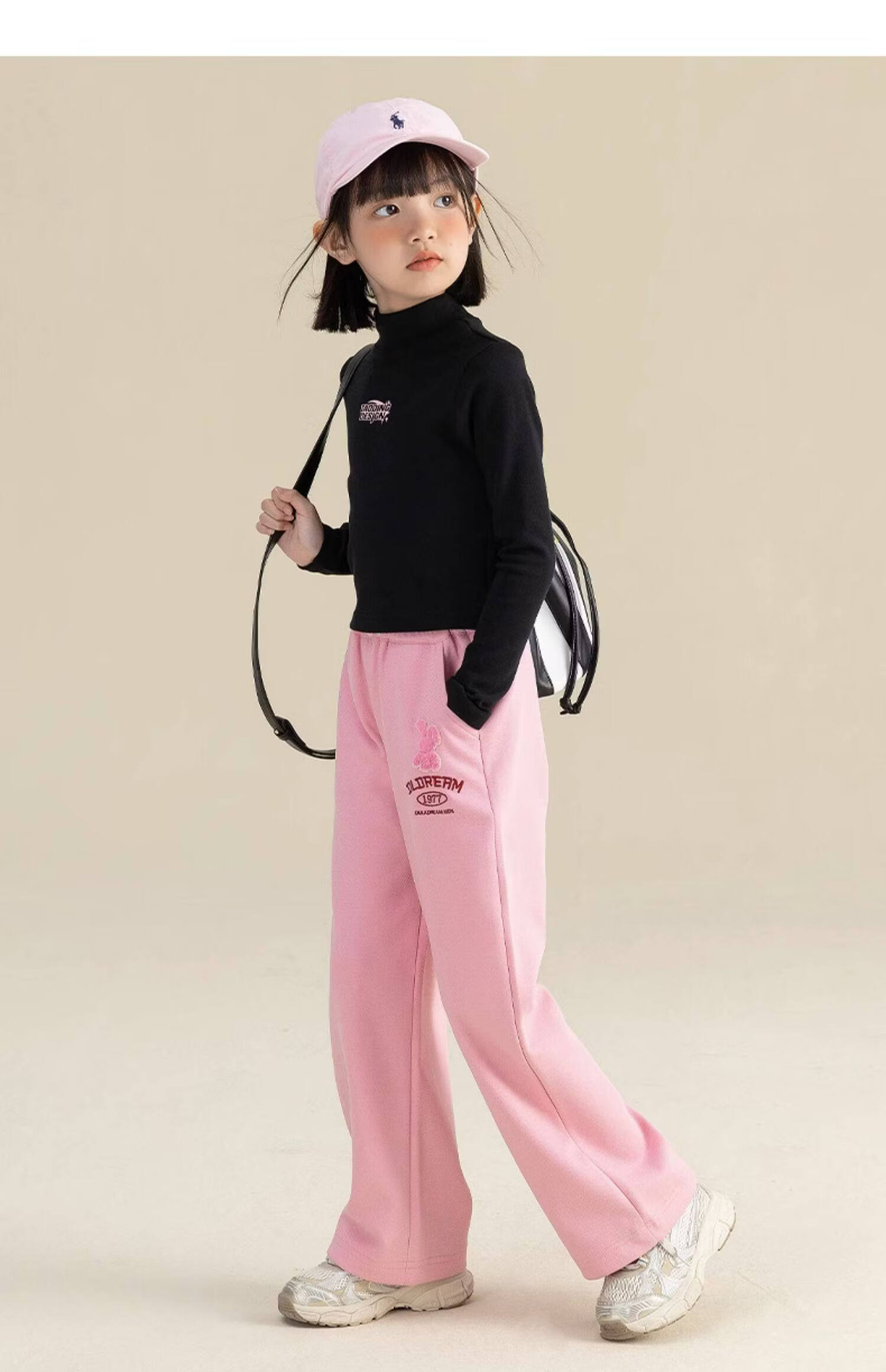 淘町淘町女童长袖t恤春秋季新款中大童复古百搭高领韩版休闲打底衫 粉色 170