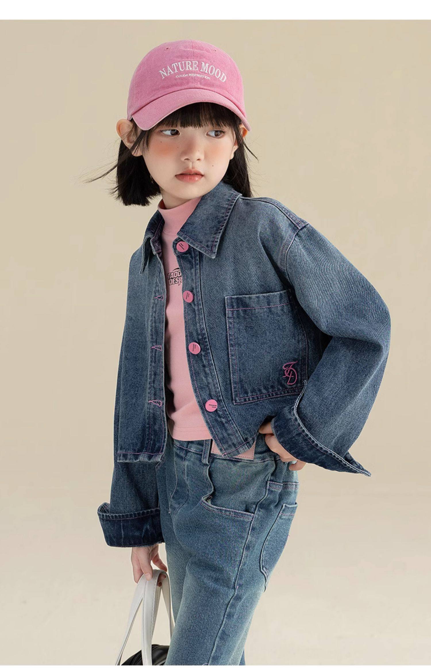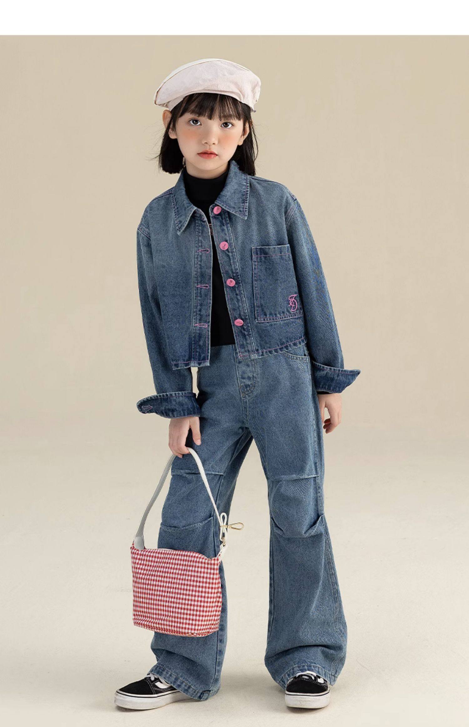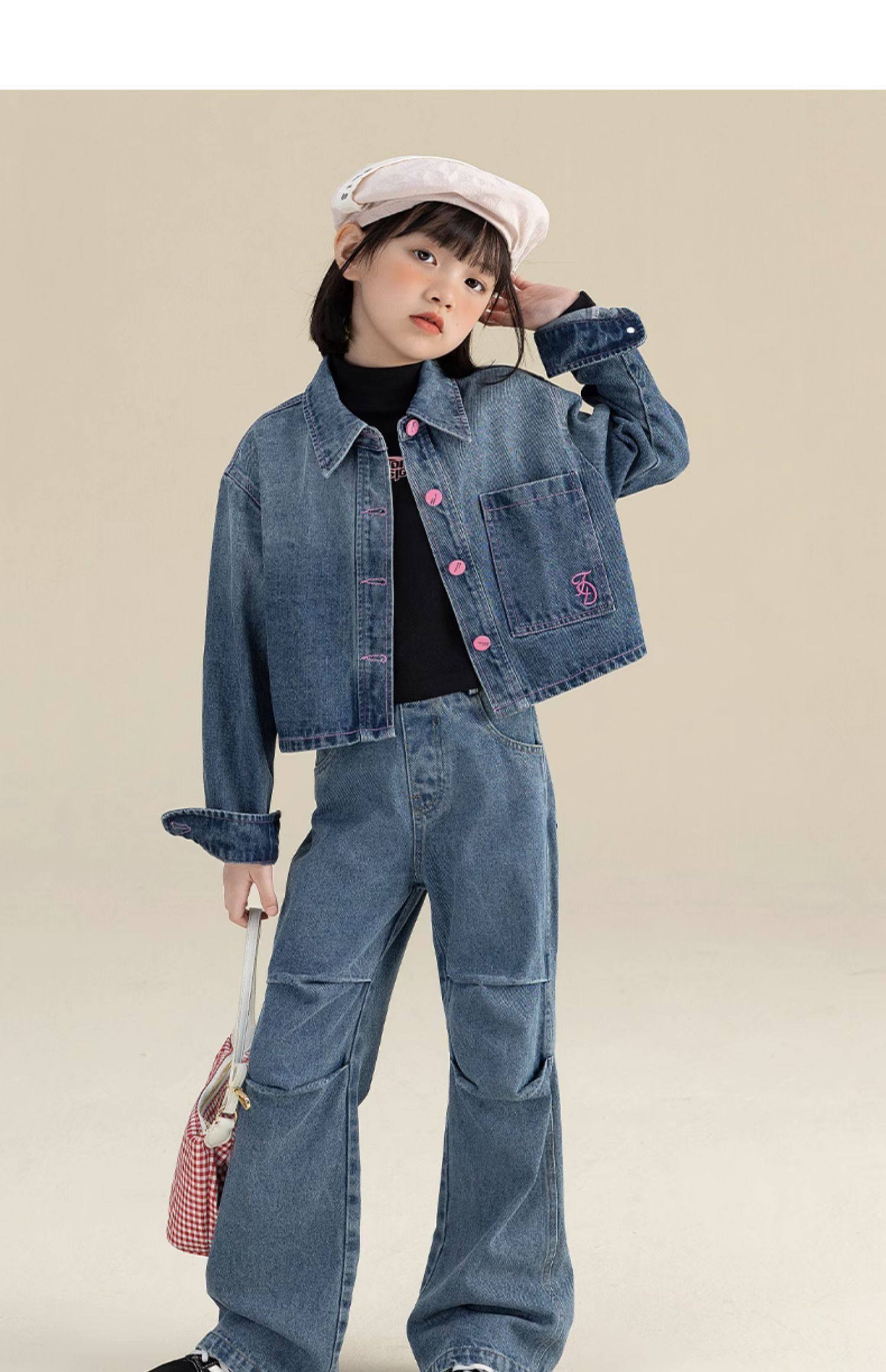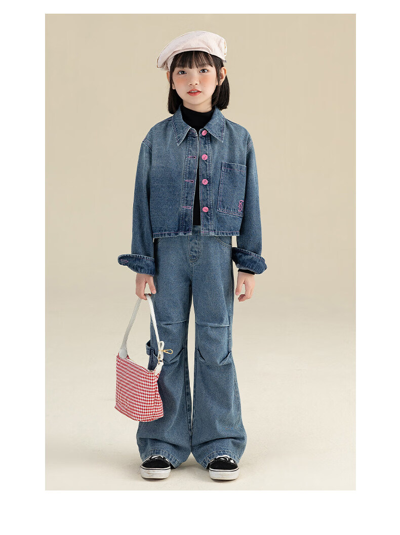 栀了成长记女童装新中式刺绣套装2026春季儿童新款国风撞色两件套 蓝色 两件套 110 cm
