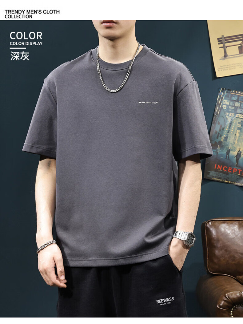 真维斯(Jeanswest)真维斯短袖男士T恤夏季2025新款宽松圆领潮流百搭上衣半袖体恤男 9986深灰 M 推荐100-120斤