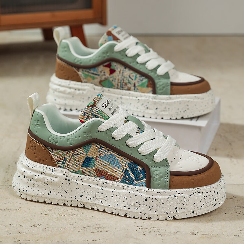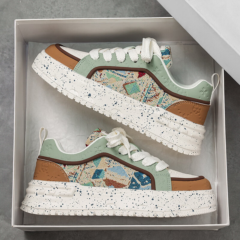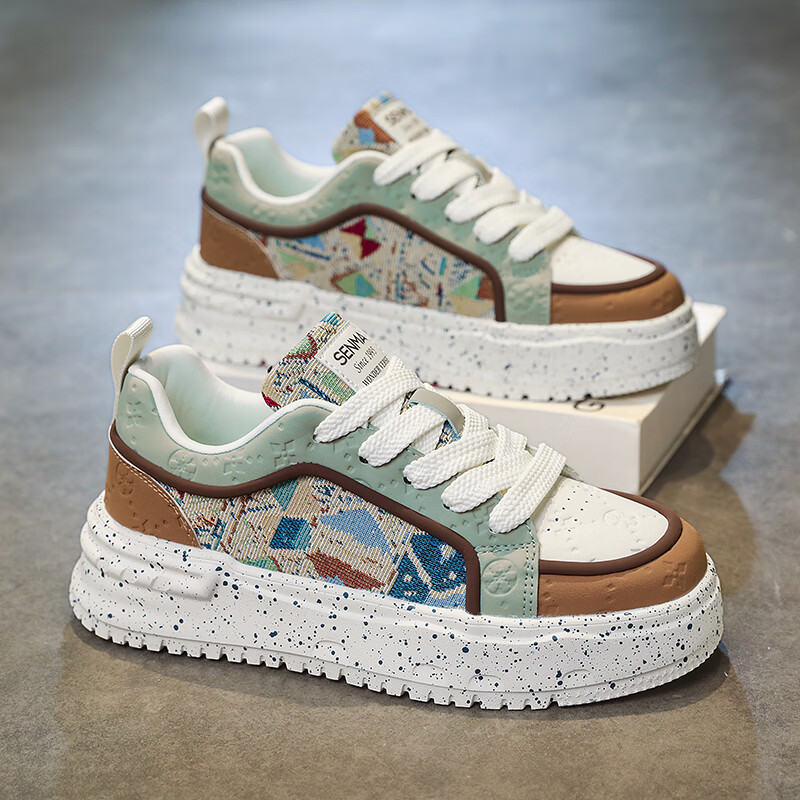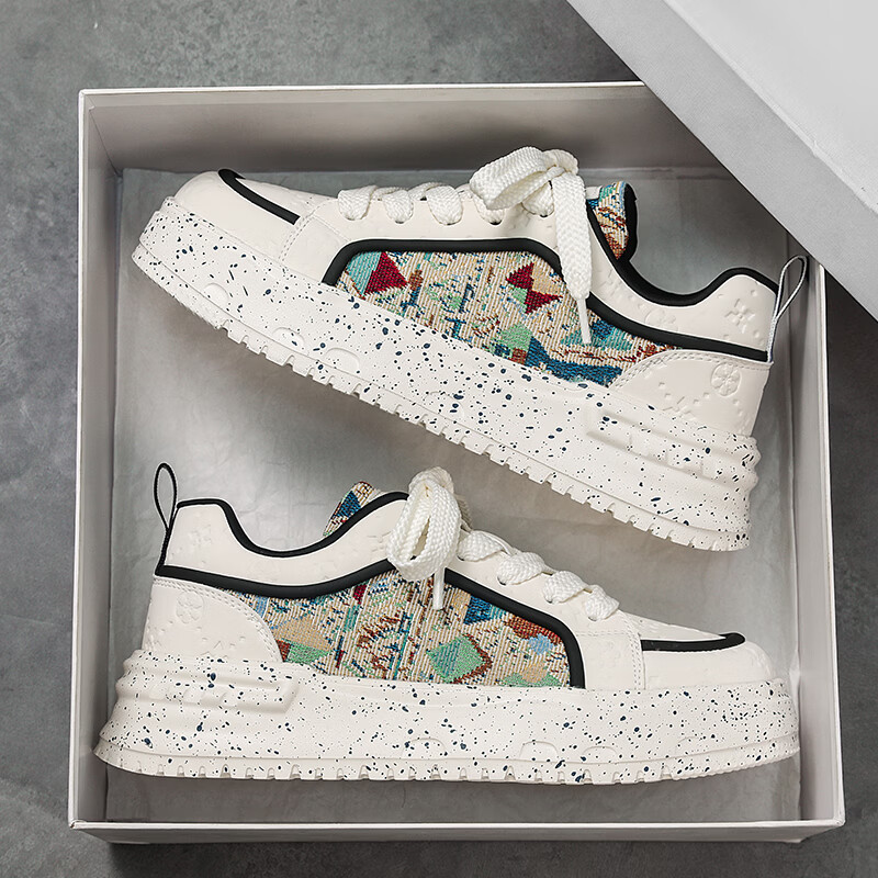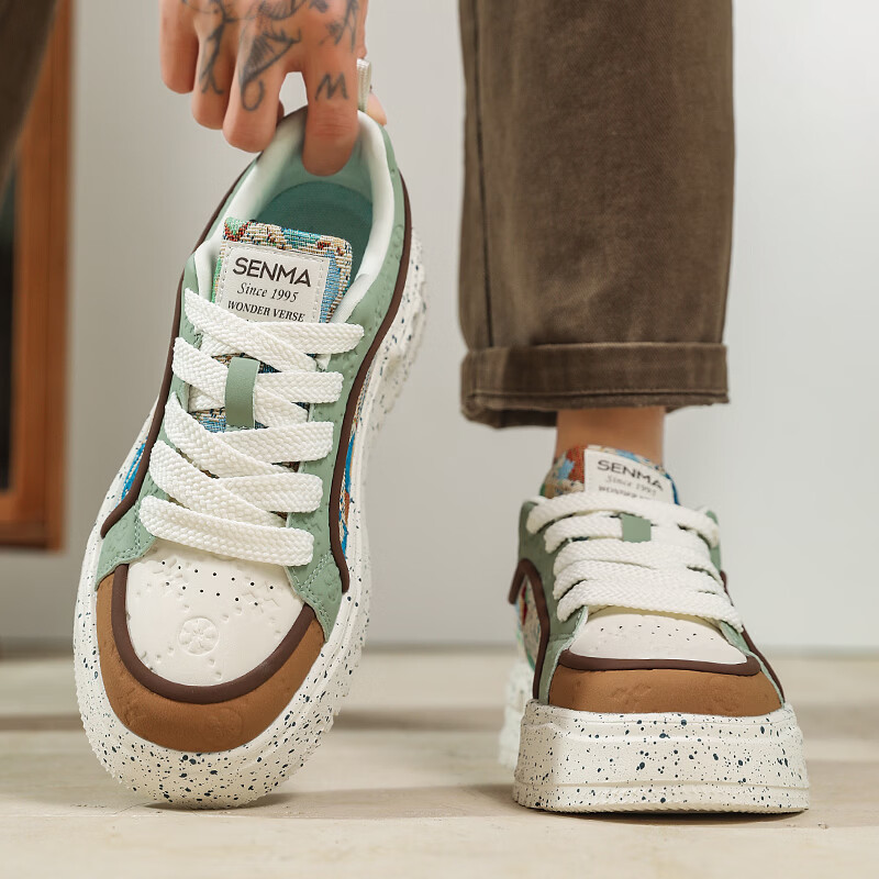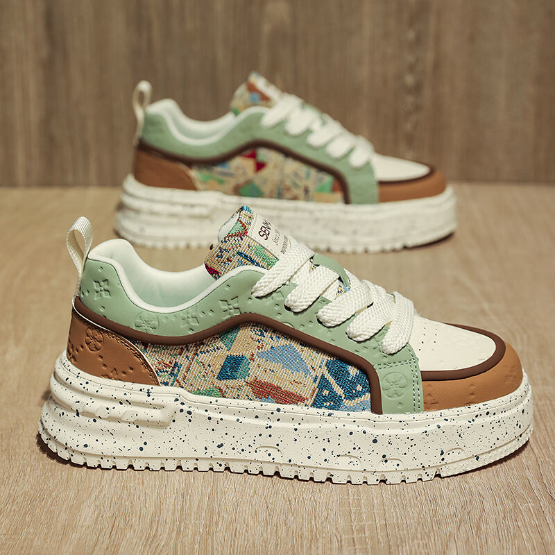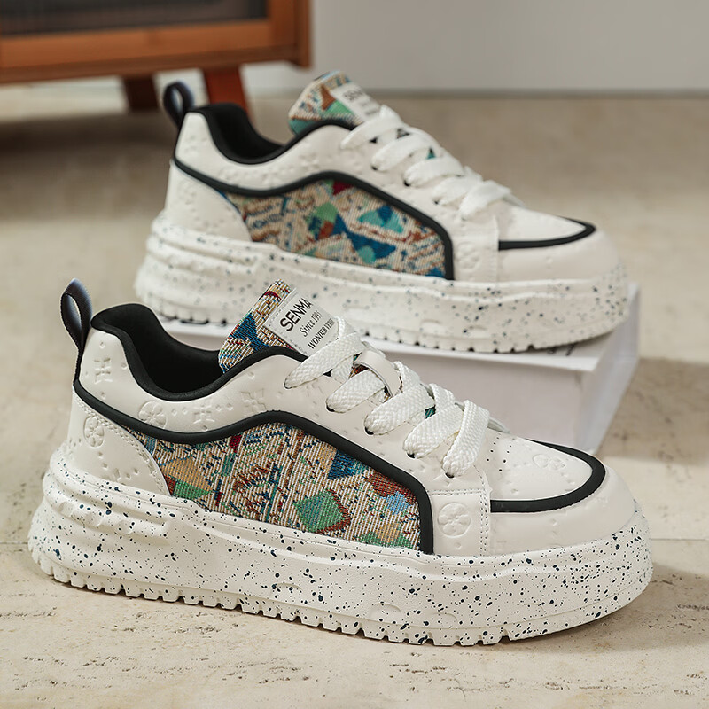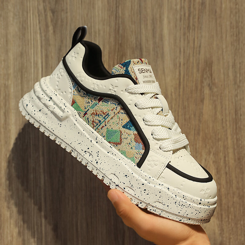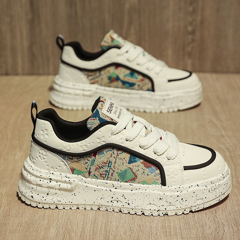 森馬男鞋2026新款春季潮流百搭休闲运动板鞋青少年厚底增高防滑小白鞋 卡其【基础款】 39 标准码数/现货秒发