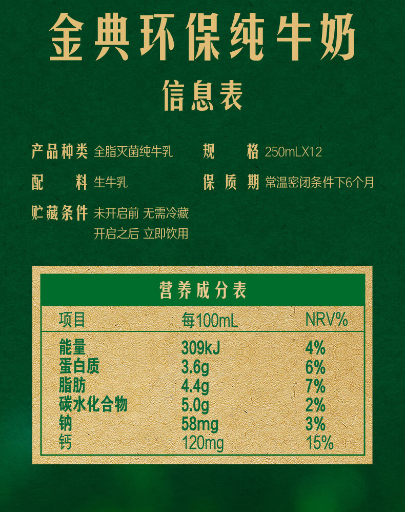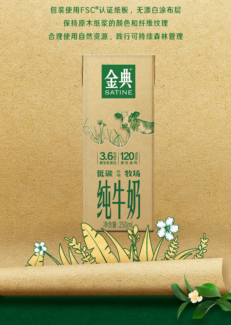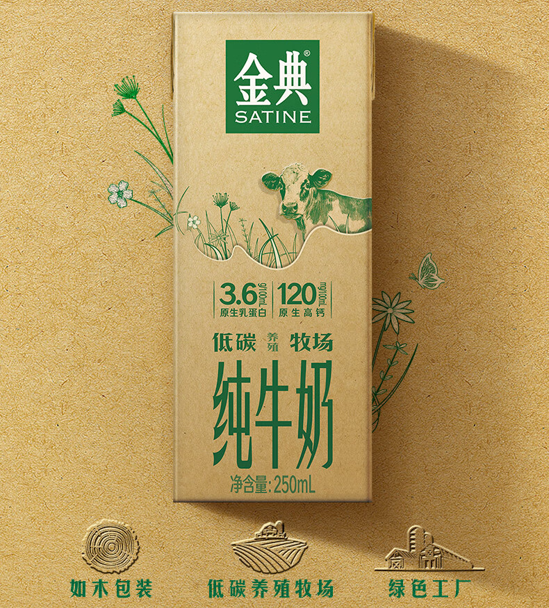 伊利金典纯牛奶250ml*12盒/箱 低碳包装3.6g优质乳蛋白年货礼盒 3.6g乳蛋白
