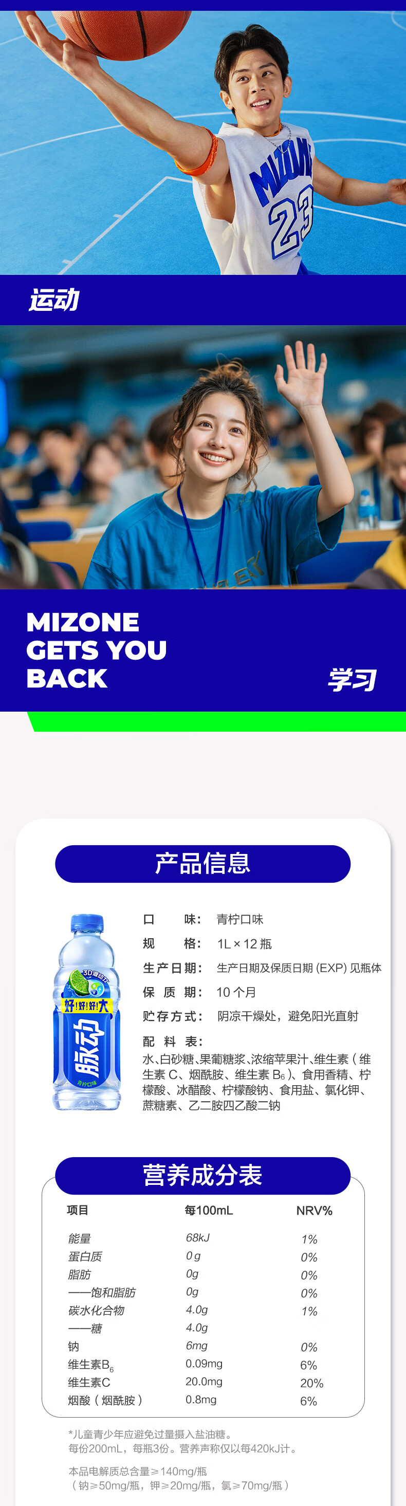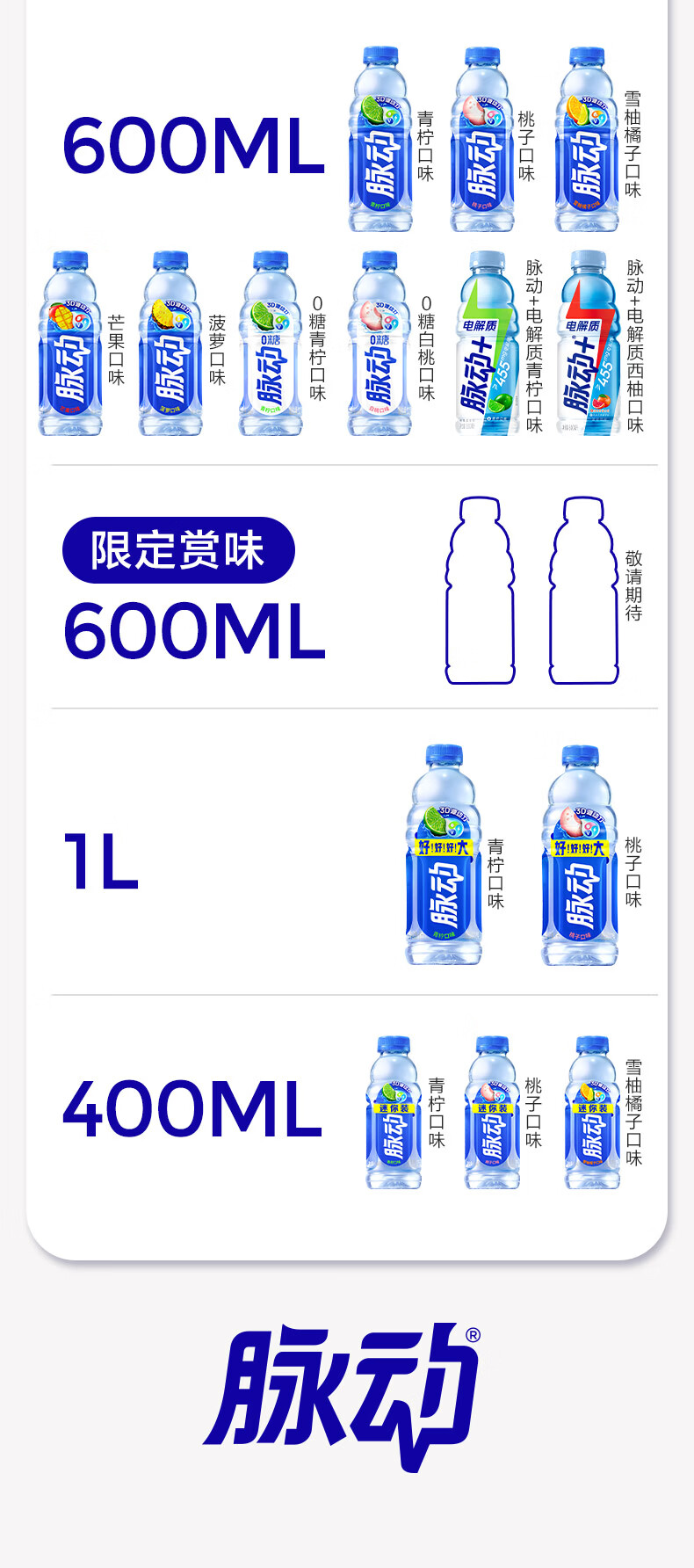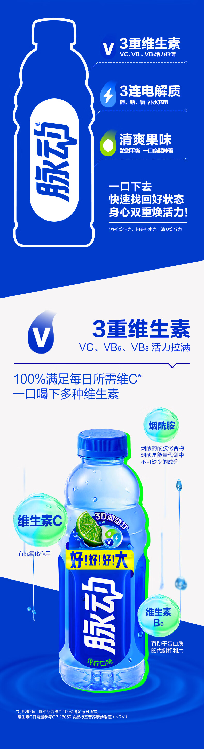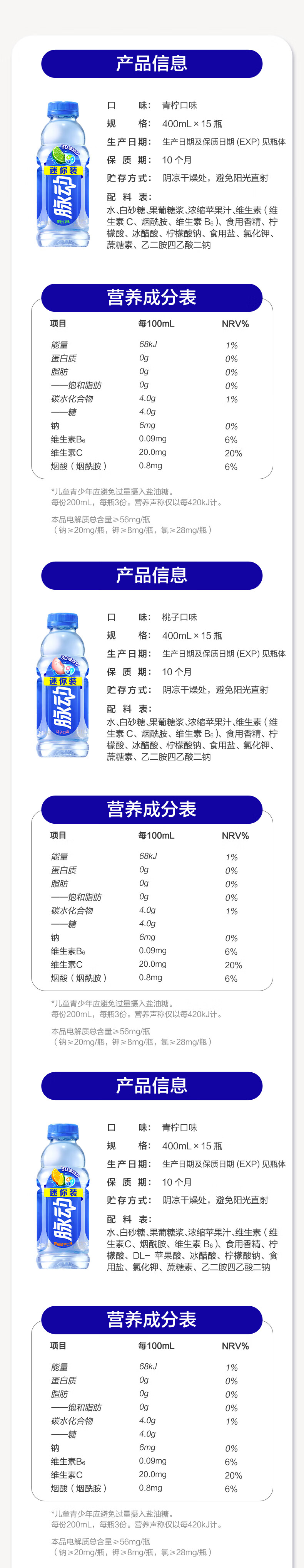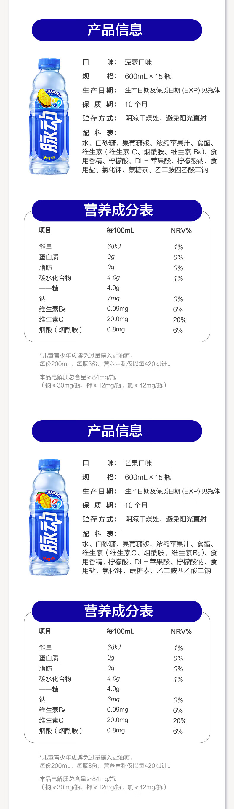脉动夏季饮品水果混合口味含维生素C低糖运动饮料家庭装便携装出游装 青柠600*6+蜜桃600*6