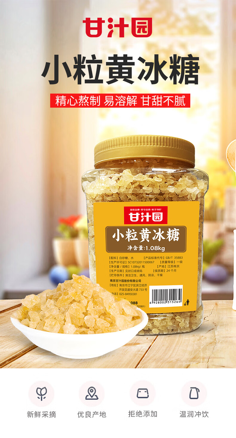 甘汁园 冰糖 小粒黄冰糖1.08kg 煲汤炖煮甜品