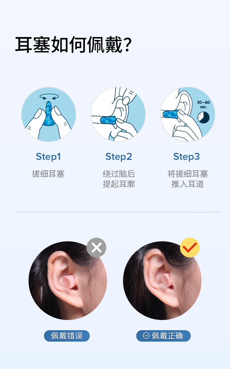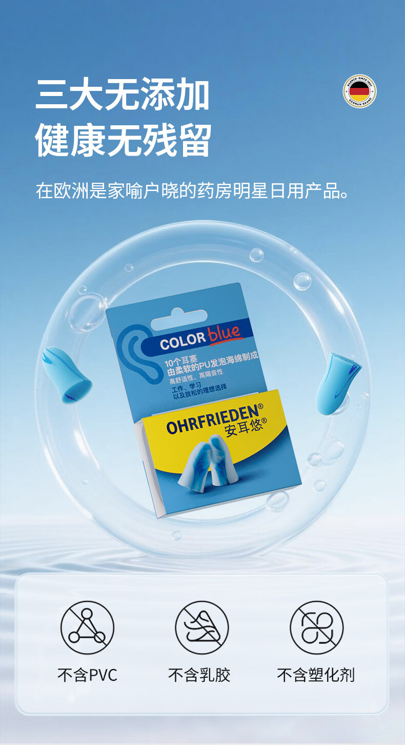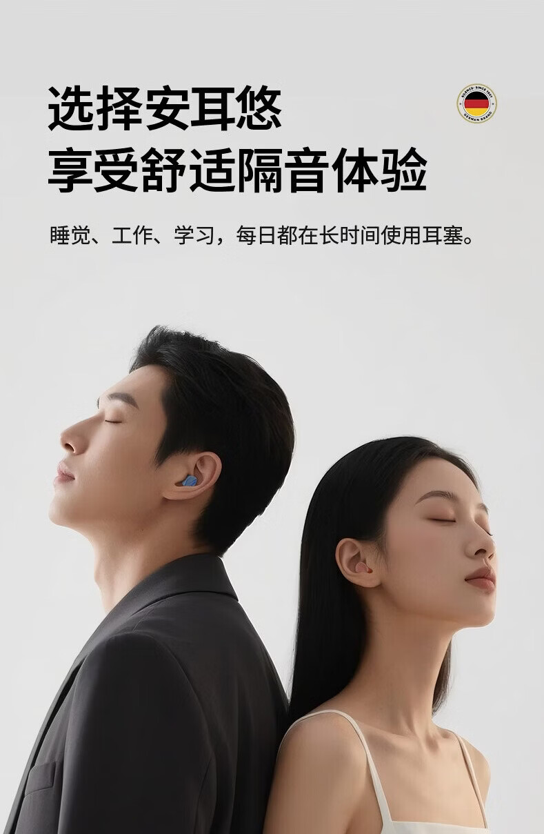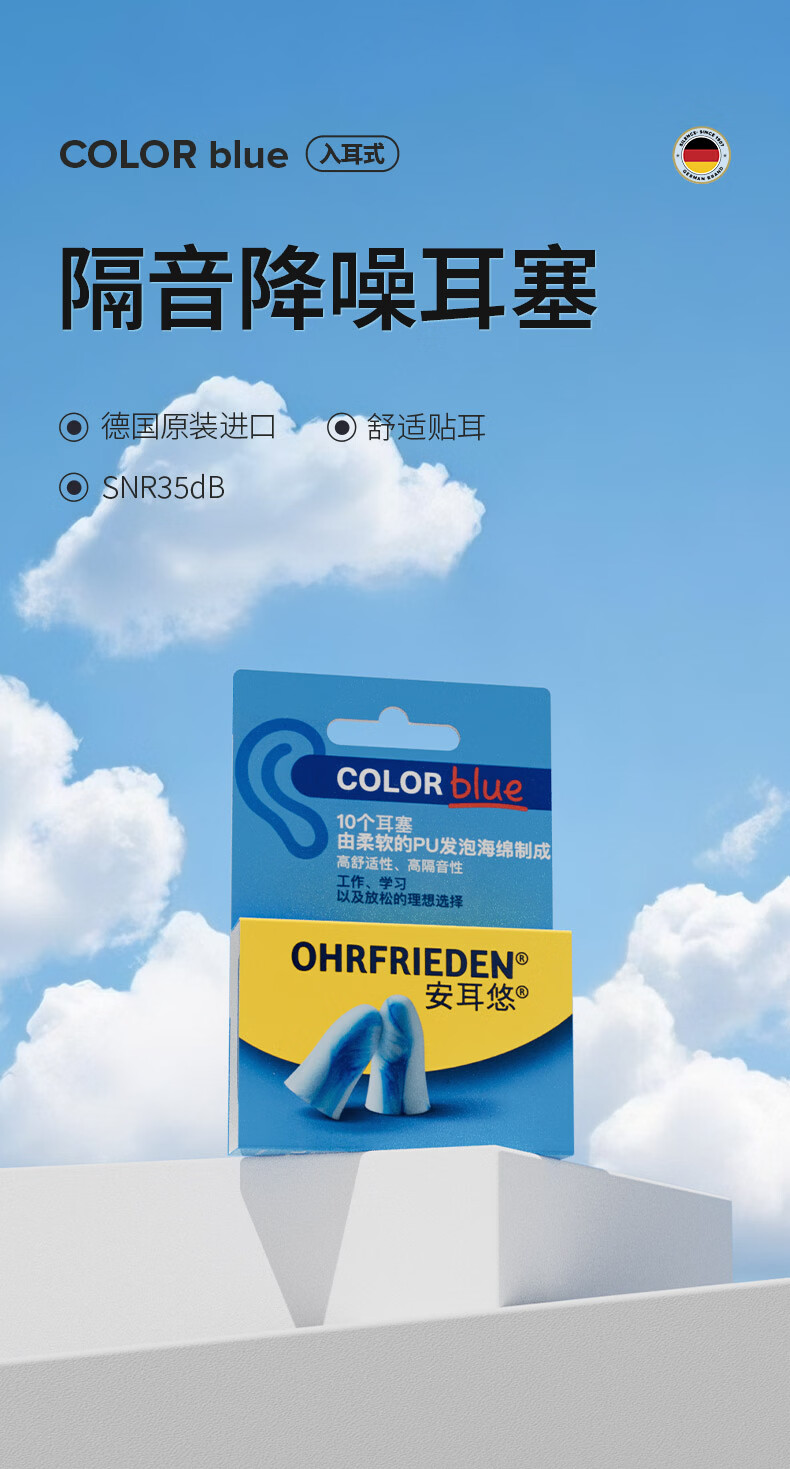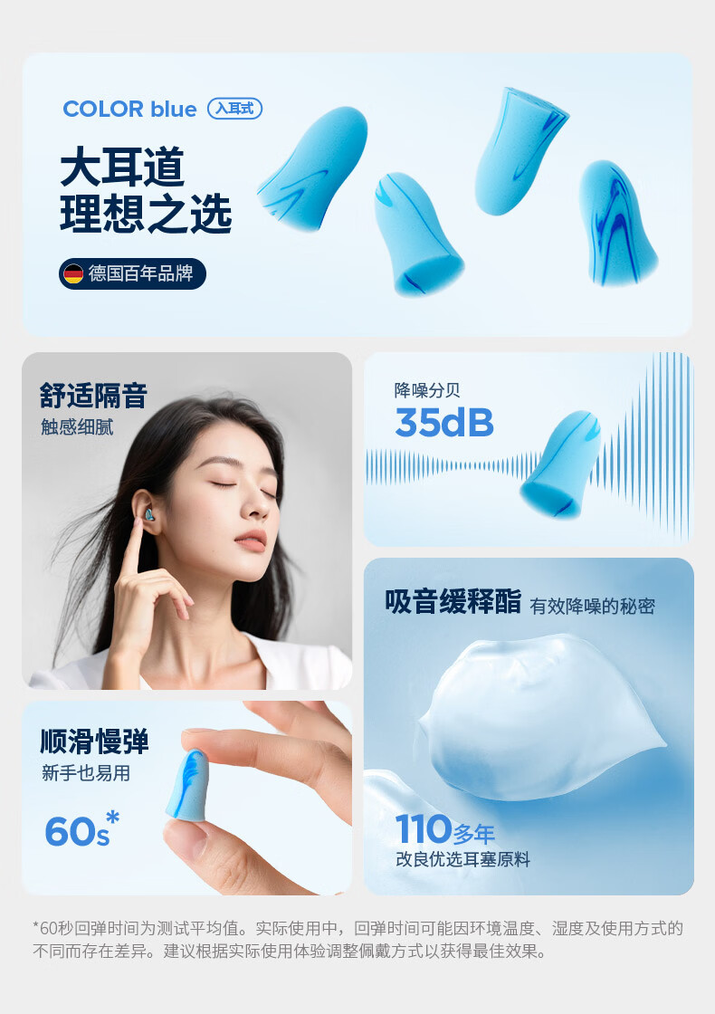 安耳悠 德国耳塞防噪音睡觉睡眠专用年货炮竹声降噪隔音耳塞 blue5副装