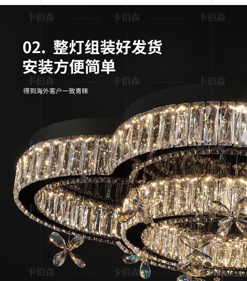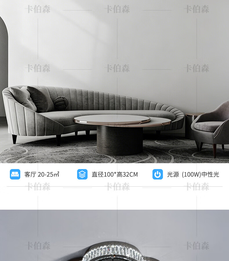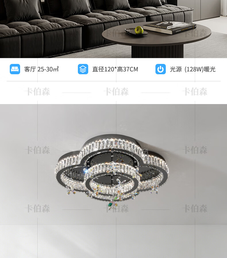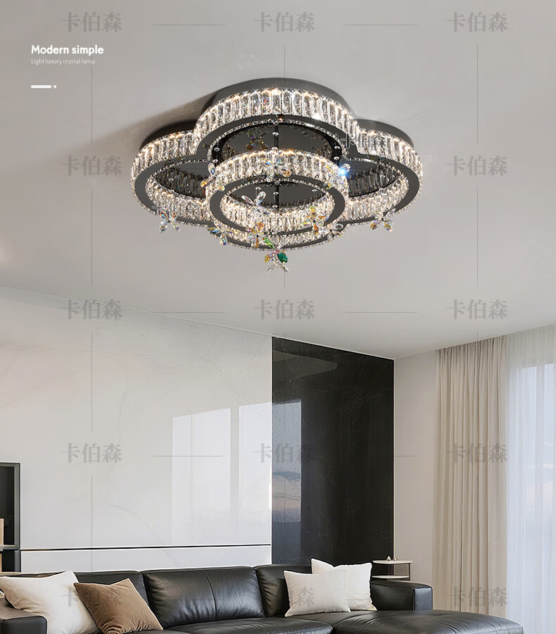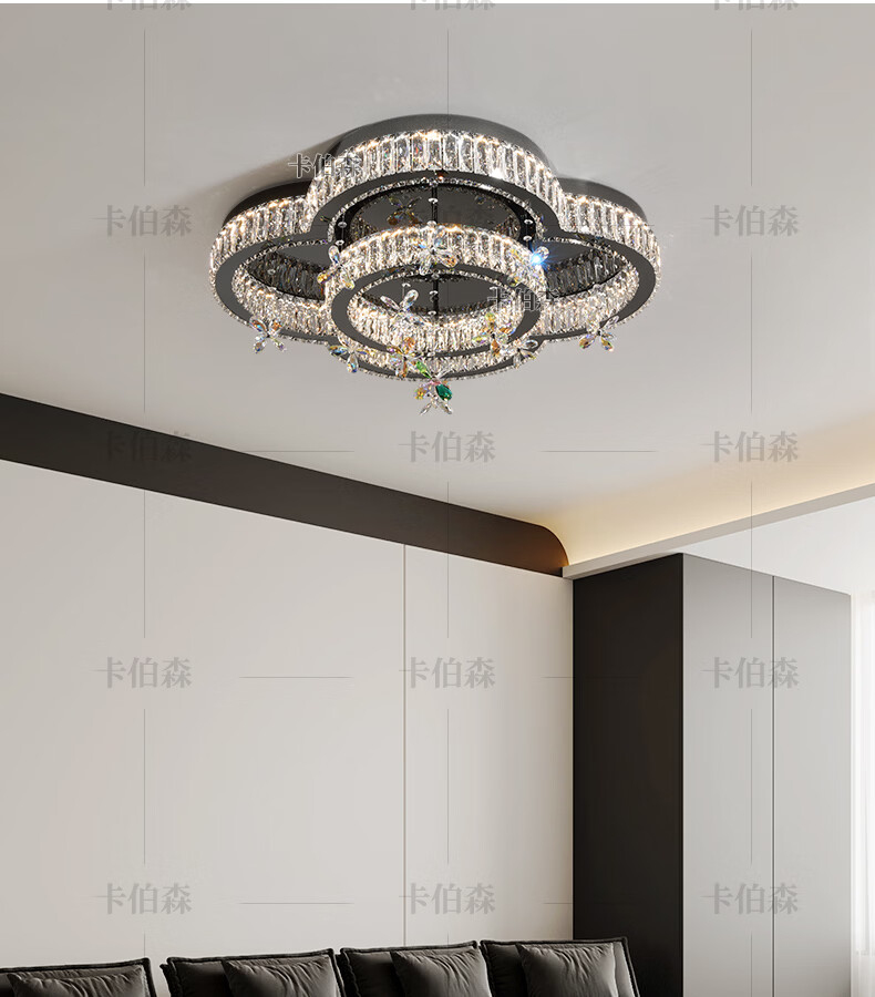 卡伯森意式极简客厅水晶吸顶灯2026新款现代轻奢大气高级感别墅客厅主灯 直径100*高32CM【无极+天猫精灵】【全光谱】