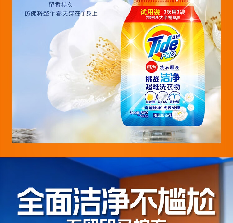 汰渍净渍洗衣原液雨后山茶花50g*4袋试用装旅行装 护色 持久留香