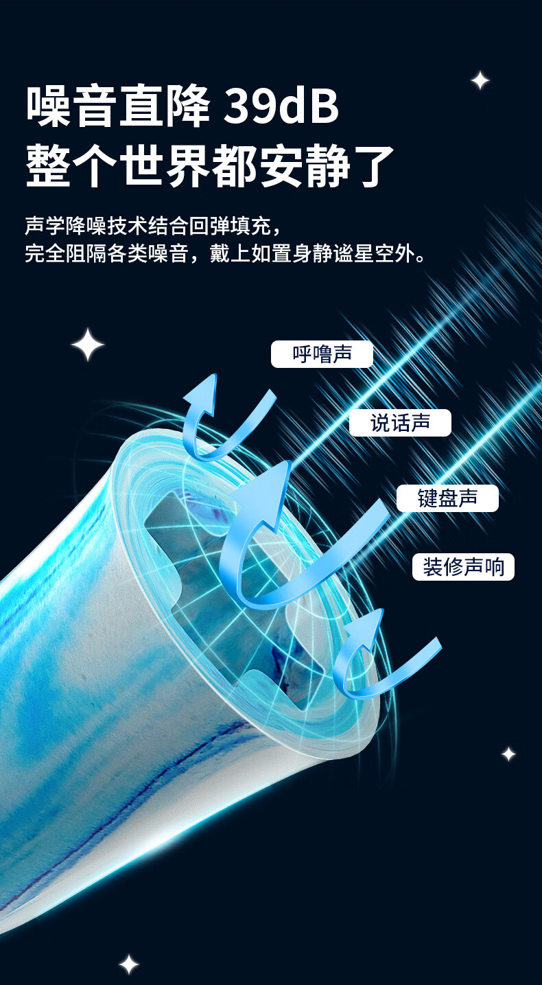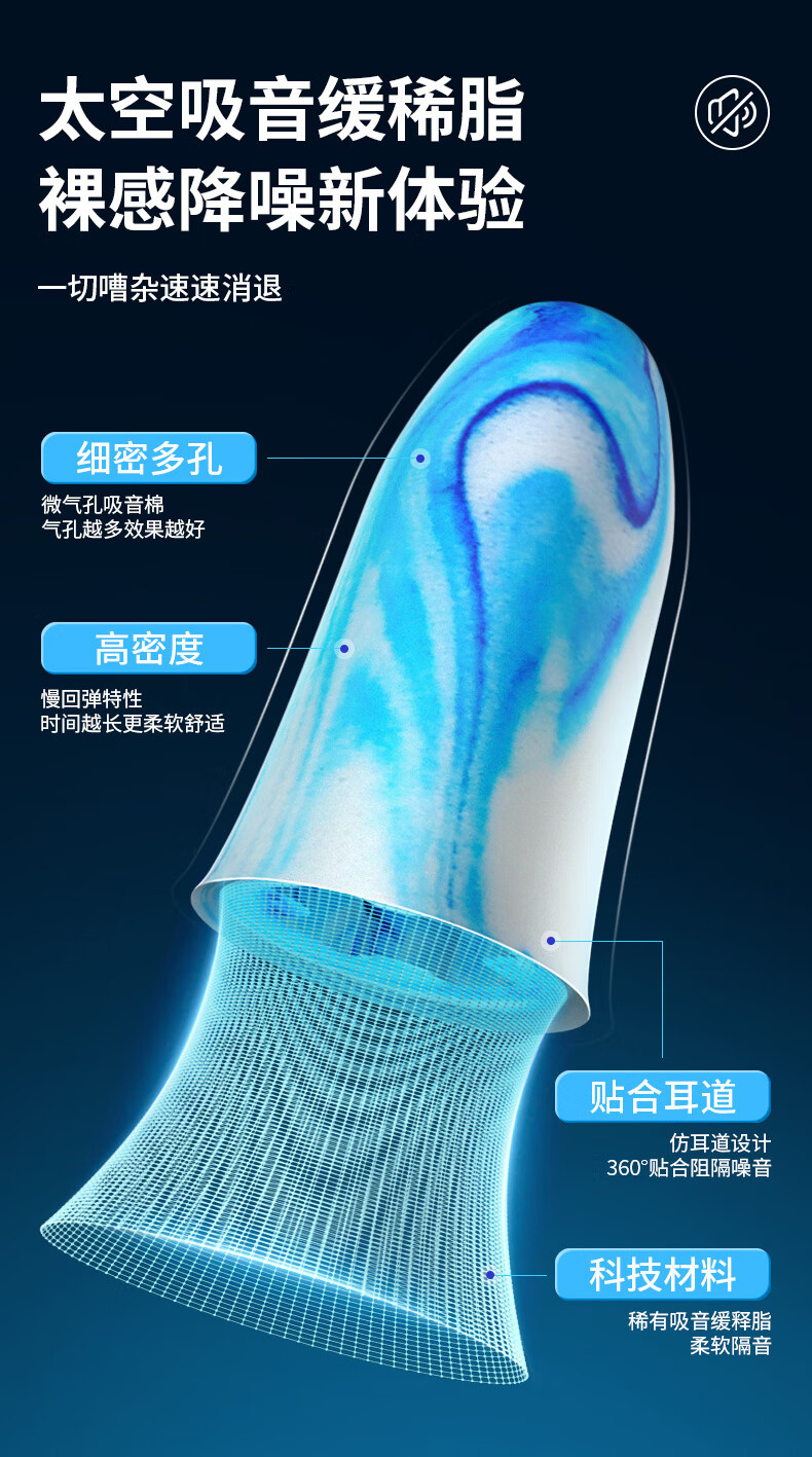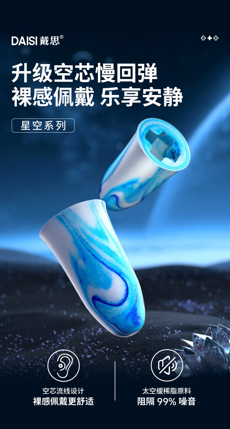 戴思(DAISI)星空系列空芯泡棉强劲隔音降噪耳塞助眠防噪音 蓝色M码10枚/盒