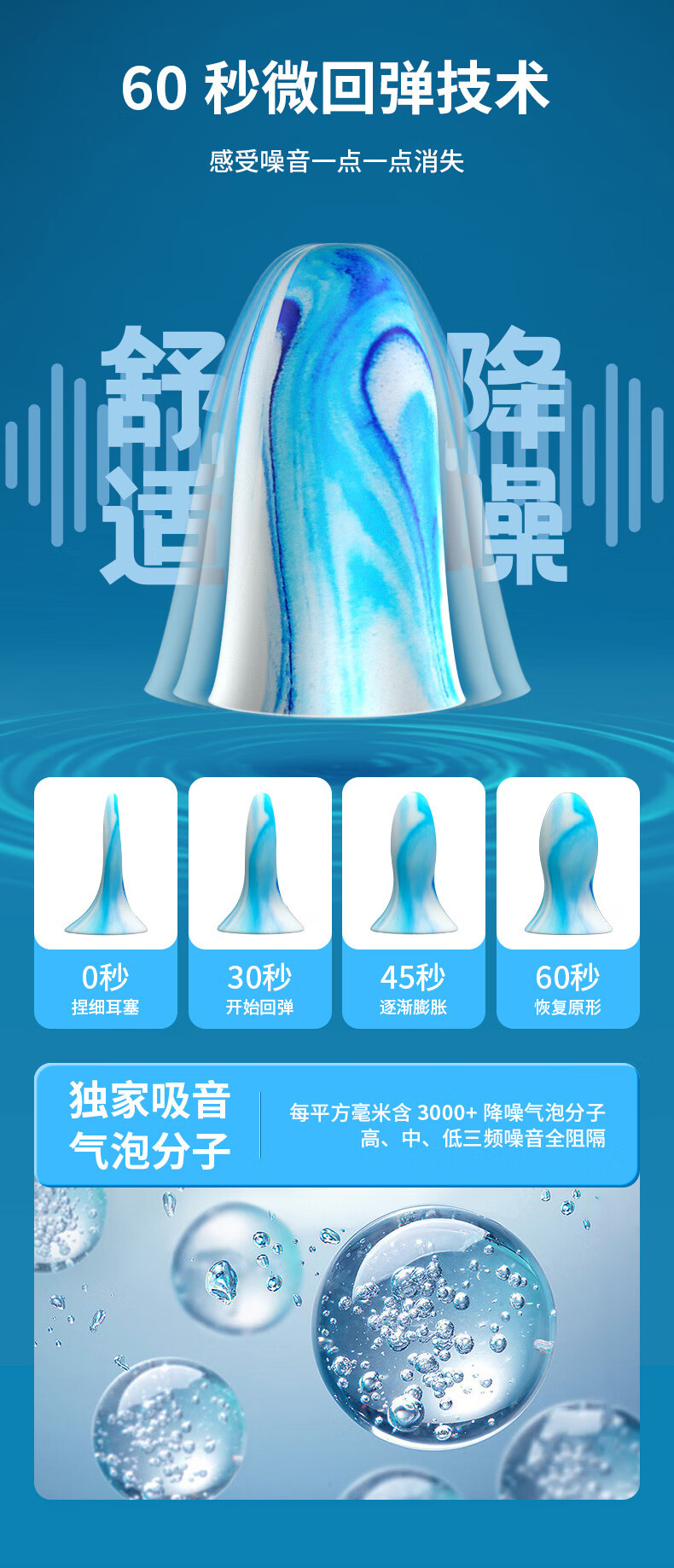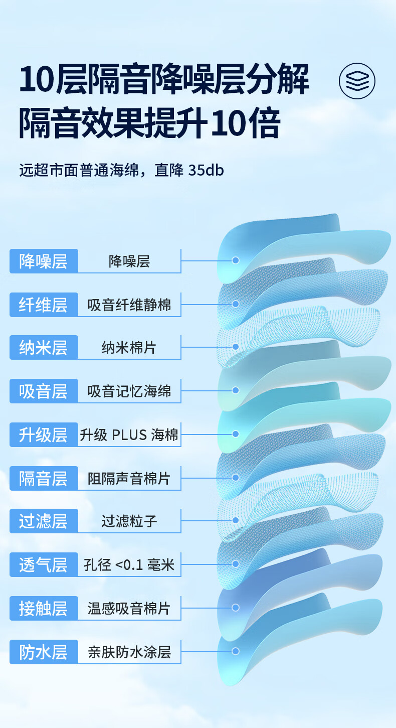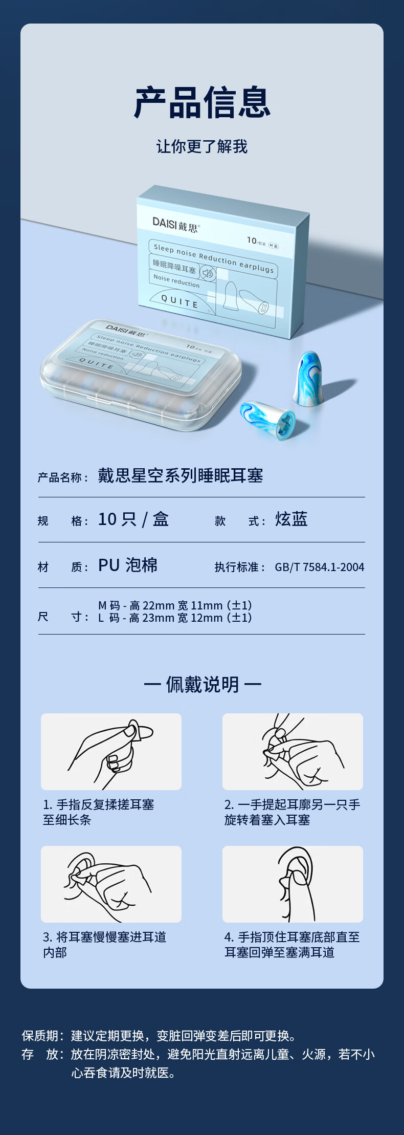 戴思(DAISI)星空系列空芯泡棉强劲隔音降噪耳塞助眠防噪音 蓝色M码10枚/盒