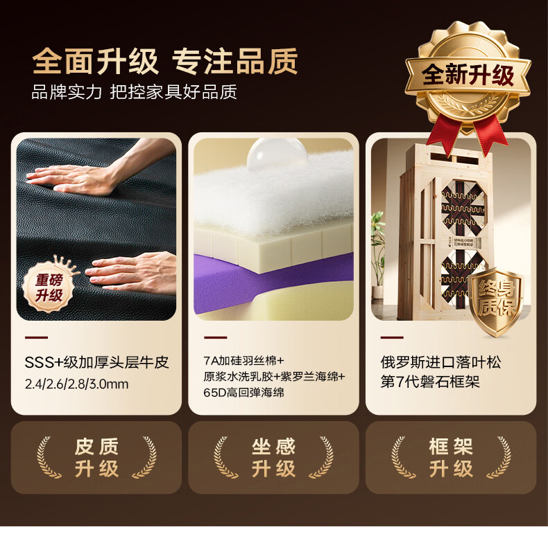 奥维伊琦国家补贴真皮沙发客厅2025新款大户型头层黄牛皮贵妃转角皮艺沙发 3.6米多人位【四件套】【全新升级框架-终身质保】 【豪华版(接触面)】2.4mm进口头层黄牛皮