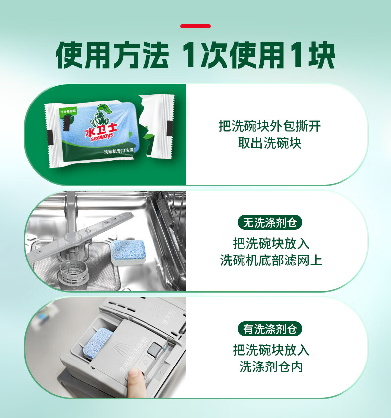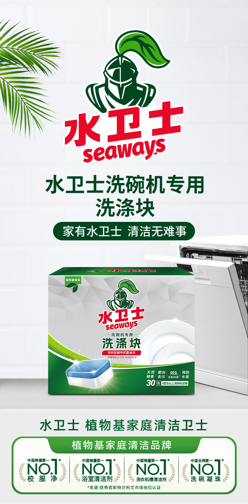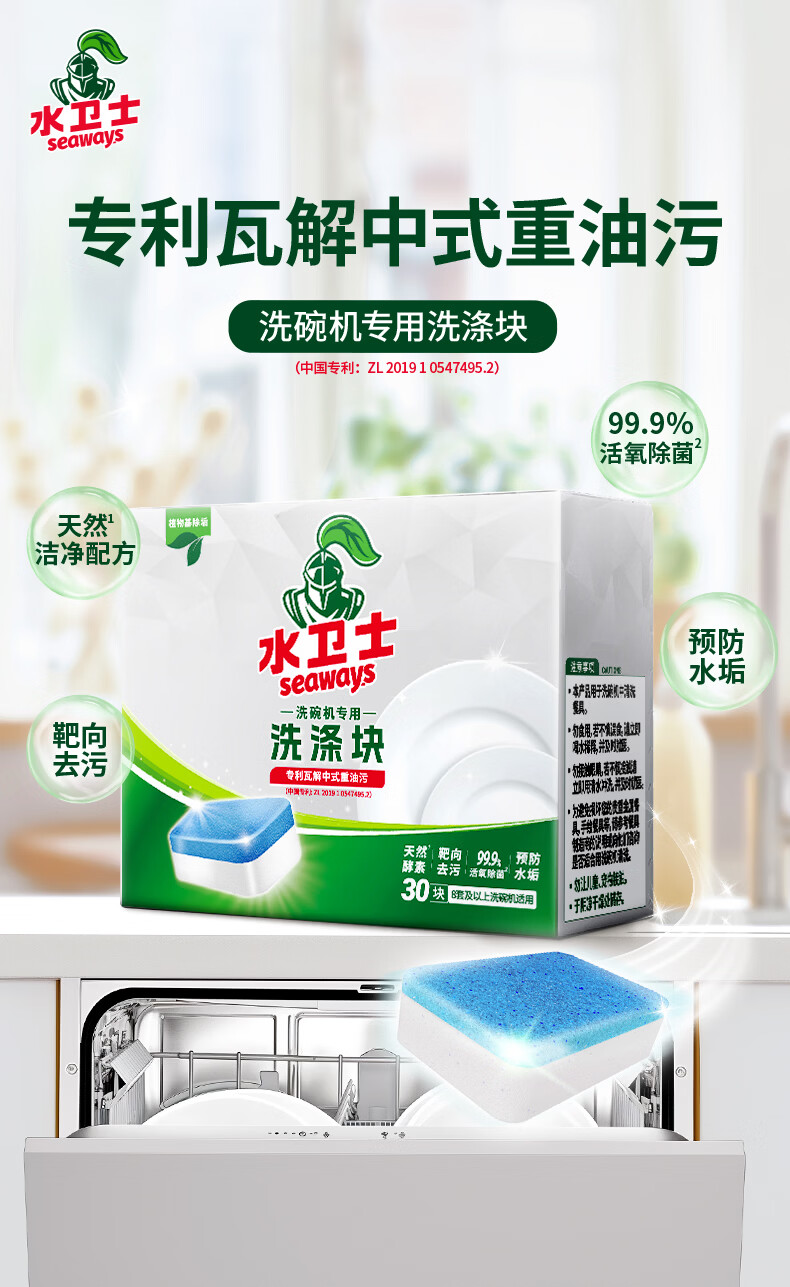 水卫士洗碗机专用洗碗块 洗碗机洗涤剂 溶油渍养护机体 3效合一洗水卫仕 【家庭囤货】240g*6袋
