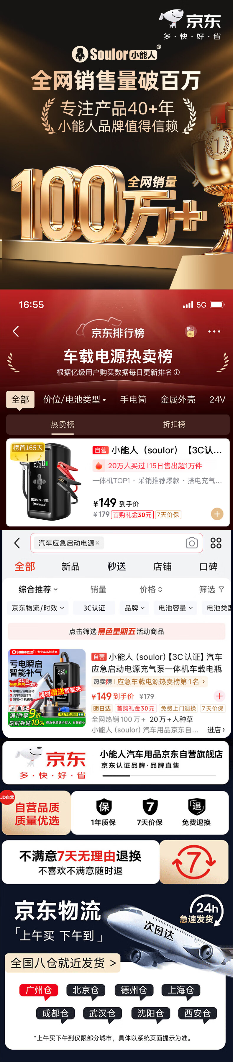 小能人(soulor)【3C认证】汽车应急启动电源12V搭电宝充气泵一体机强力启动电瓶充电器充电宝打火神器