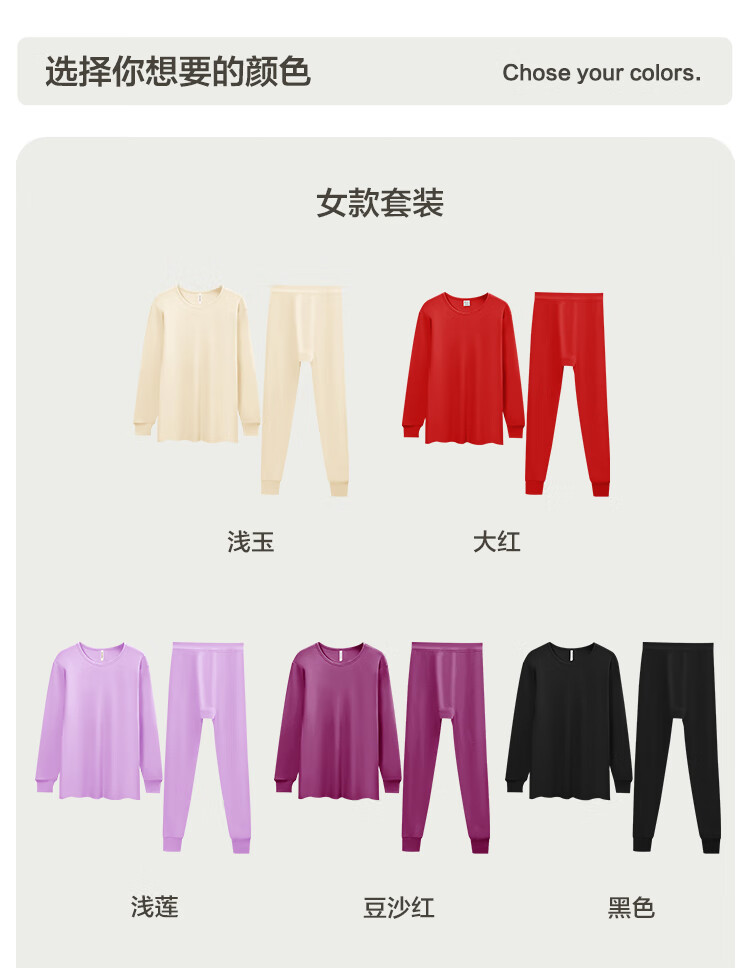 红豆内衣女7A抑菌升级纯棉大红本命年套装圆领薄款打底秋衣秋裤