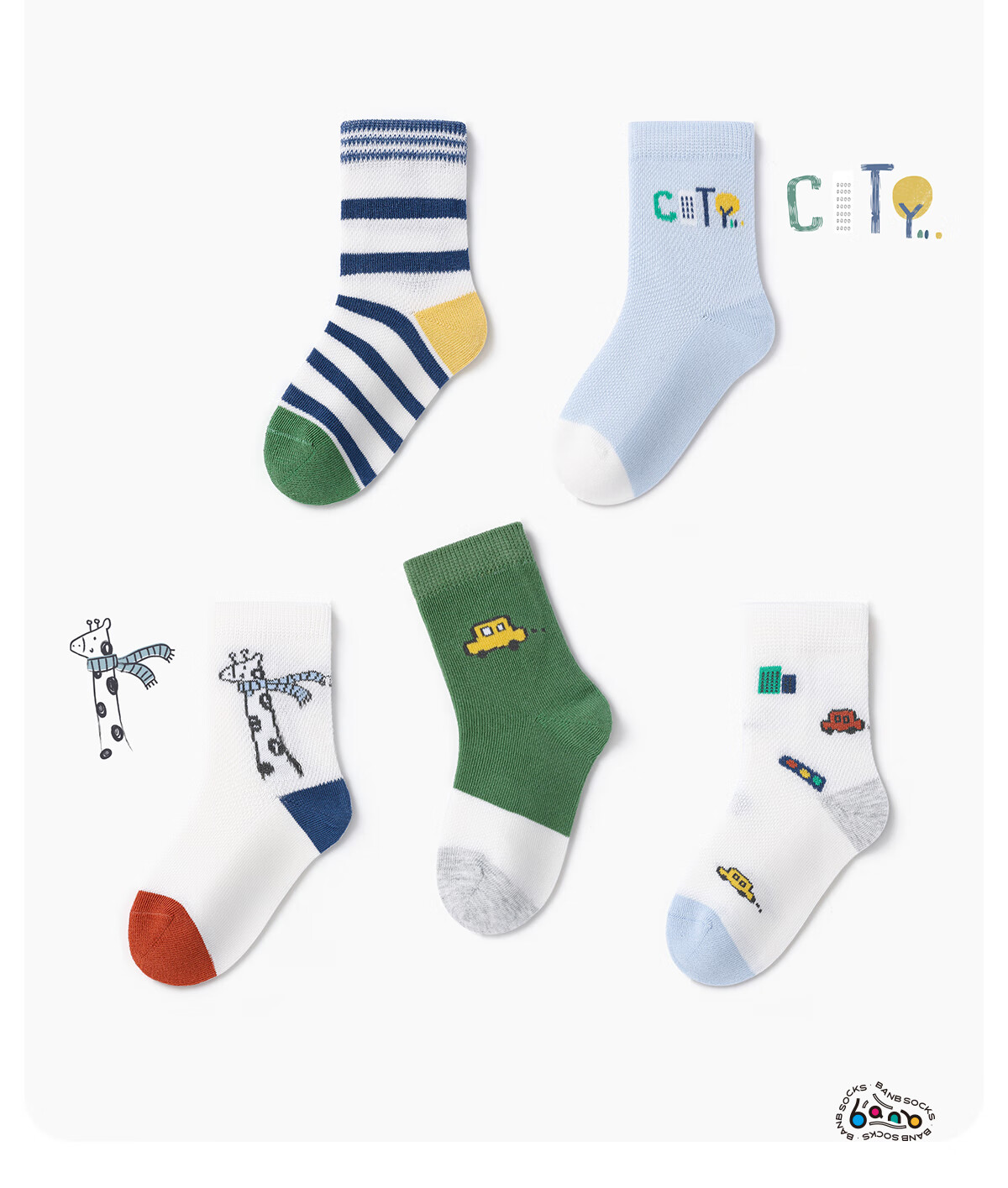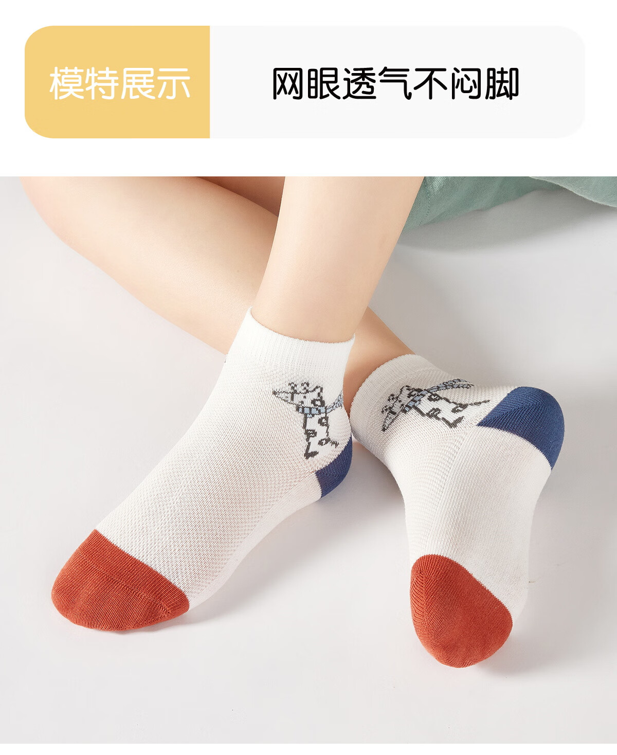 斑比儿童袜子男孩夏季薄款网眼中大童春秋无骨棉袜BB2308 18-20码