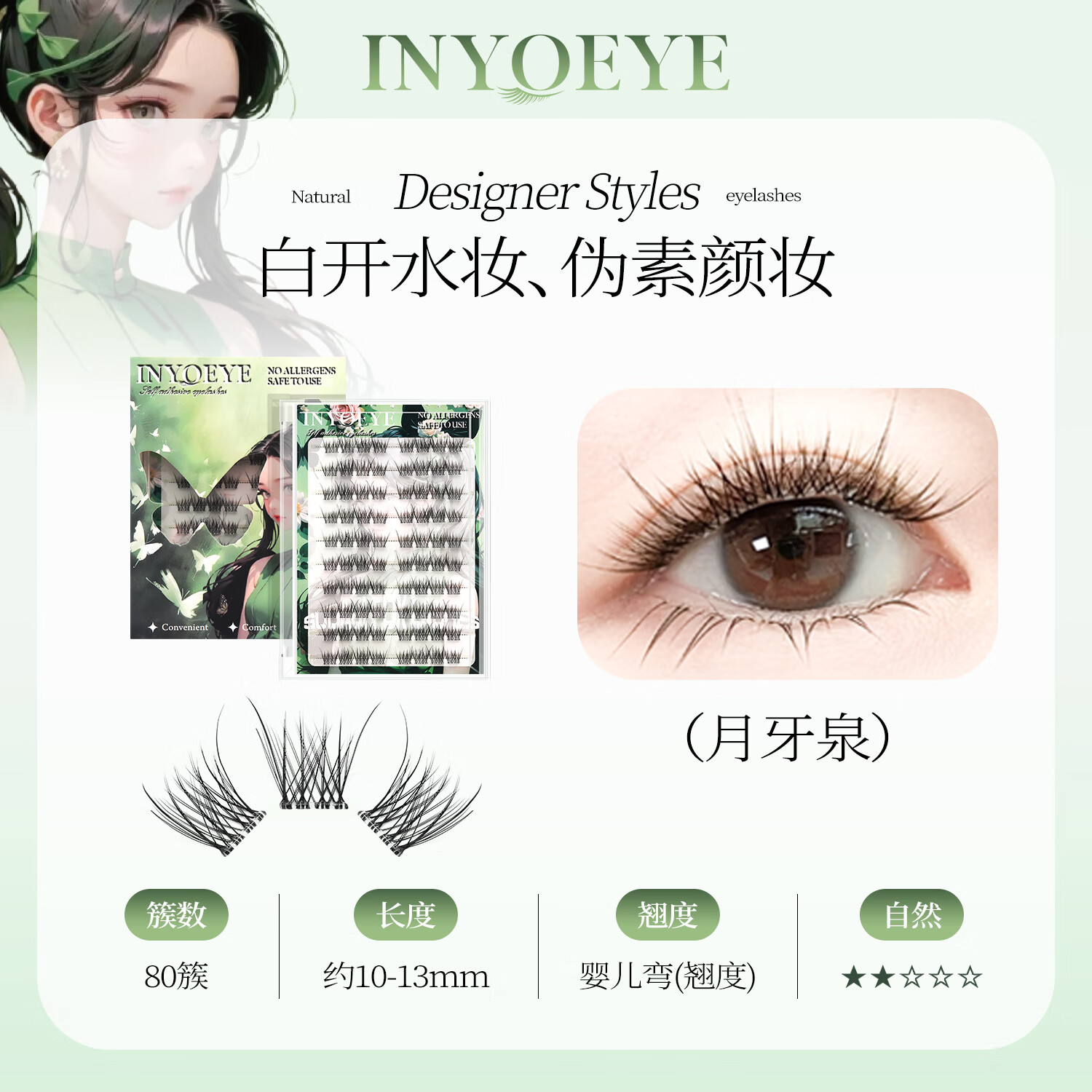 INYOEYE【明星同款】免胶 无梗假睫毛 自然日常款 圣诞节礼物送女友 免胶无梗假睫毛月牙泉80簇(1盒)